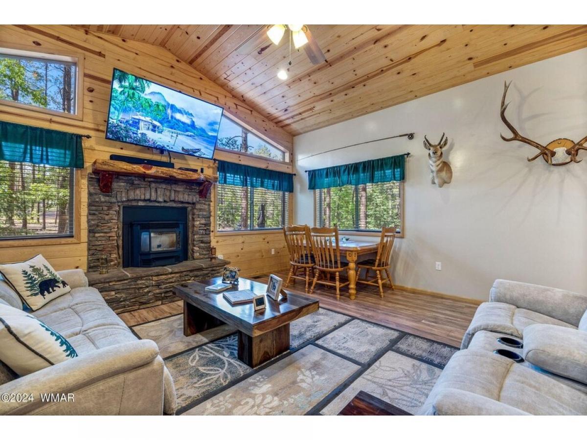COME TAKE ADVANTAGE OF THE OPPORTUNITY TO LIVE IN A BEAUTIFULLY APPOINTED, LOW MAINTENANCE CABIN LOCATED ON A CORNER LOT WITH A VARIETY OF TREES AND ONLY A COUPLE MINUTES FROM THE NATIONAL FOREST. AS YOU ENTER THE CABIN, TAKE IN THE T&G CATEDRAL CEILING AND LLOVELY FIREPLACE INSERT FOR THOSE CHILLY NIGHTS. KITCHEN BOASTS SOLID SURFACE COUNTER TOPS AND SS APPLIANCES. BOTH BEDROOMS HAVE T&G ACCENT WALLS, COVERED FRONT & BACK DECKS FOR ENJOYMENT OF NATURE. PLENTY OF ROOM FOR A GARAGE. MOST FURNINGS & SHED CONVEYS. *** PROFESSIONAL PHOTOS COMING SOON!
