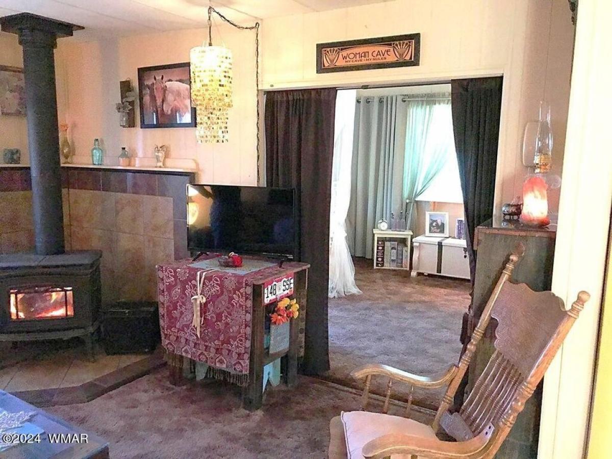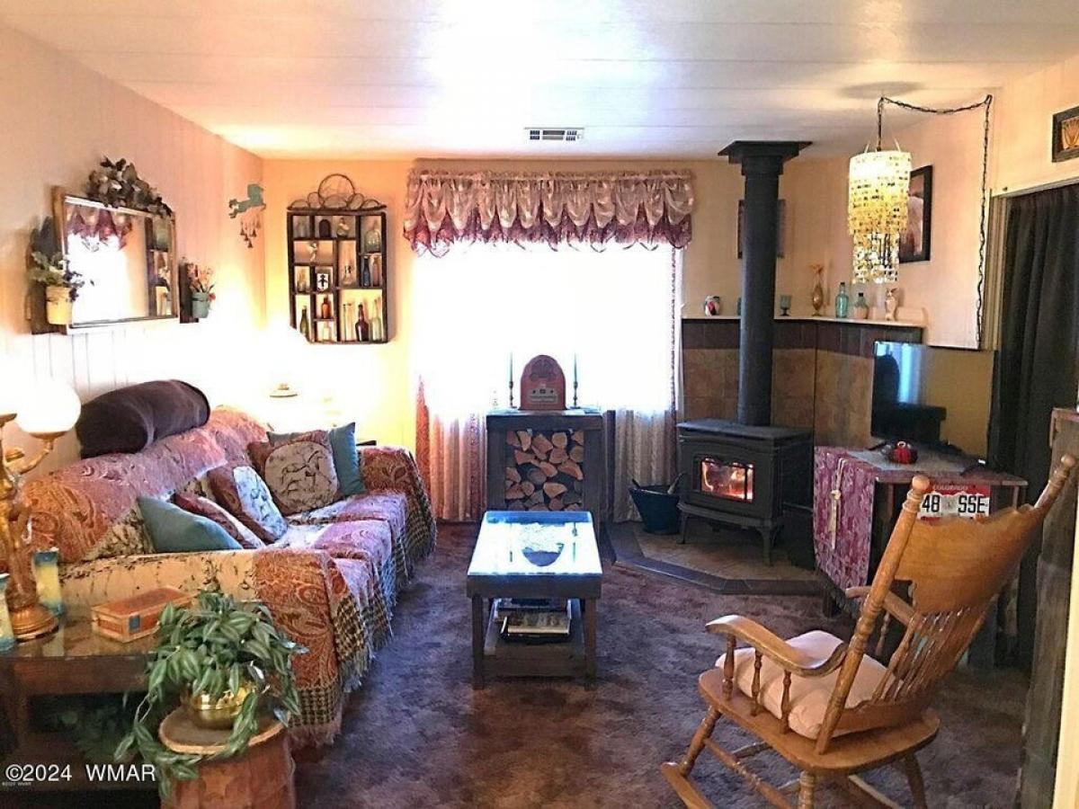 THIS CHARMING MOBILE WITH ADDITION, COMPLETE STRUCTURE ON STEMWALL AND WRAPPED IN REDWOOD SIDING, ALL ON A BEAUTIFULLY TIMBERED SPACIOUS LOT WITH GREAT VIEWS OF ESCUDILLA AND LUNA LAKE. 2-CAR CARPORT, THREE SHEDS, AND FENCED-IN RAISED GARDEN BEDS. ENTIRE LOT IS FENCED IN. THIS IS A MUST SEE! COME VIEW AND MAKE AN OFFER. WELL HAS OPTION OF HAND CRANK FOR USE WHEN WE EXPERIENCE POWER OUTAGES. PROPERTY HAS SEPTIC AND WELL, BUT ALPINE WATER/SEWER IS AT THE ROAD / DRIVEWAY. SHOWING BY APPOINTMENT ONLY!