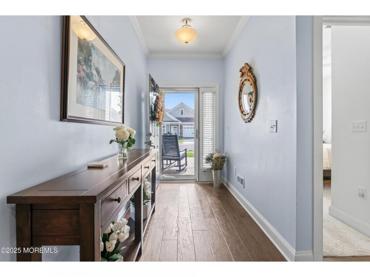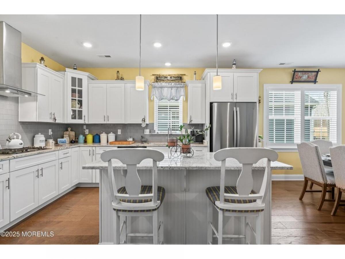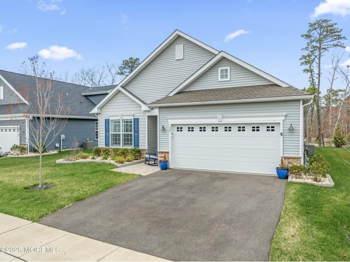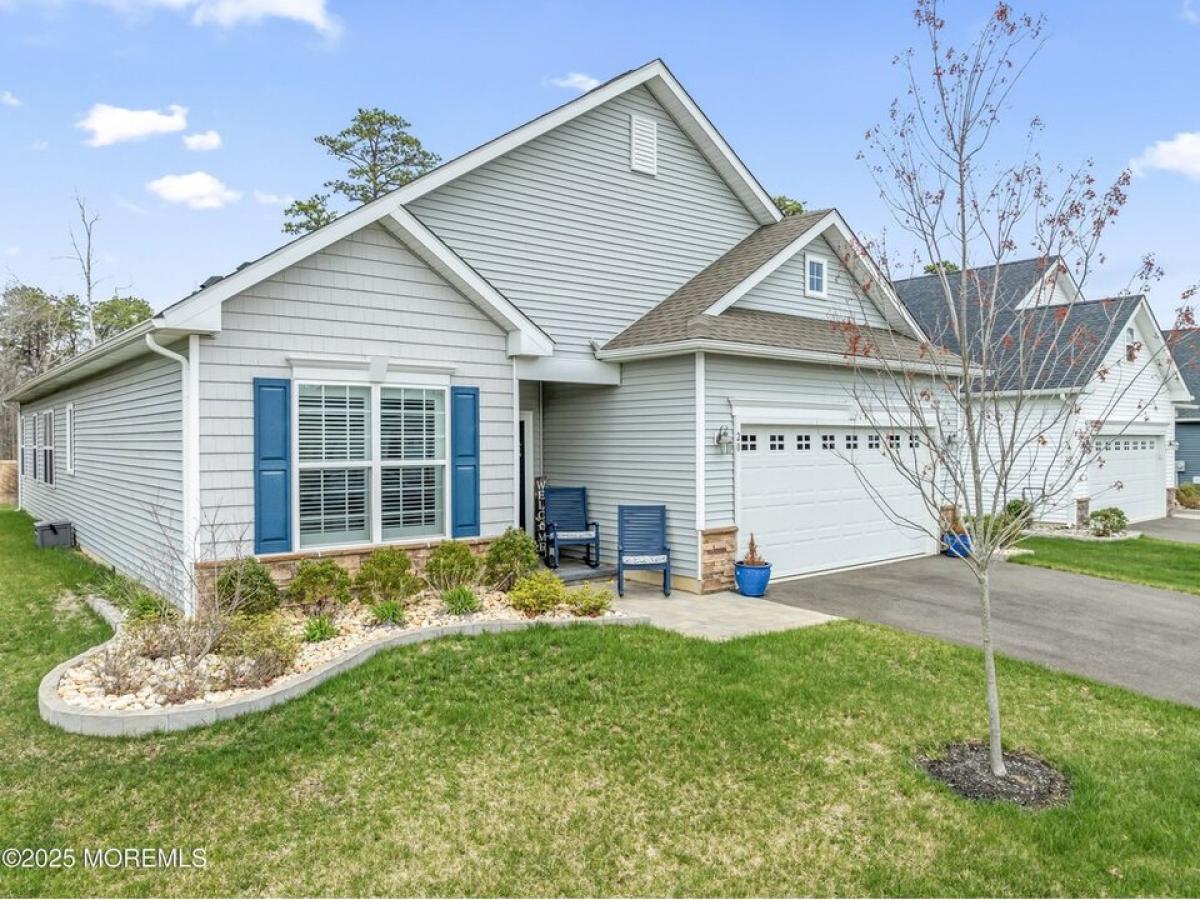 The Venue at Lighthouse Station!! Welcome to Barnegat#039;s award-winning active adult community! Don#039;t miss your chance to own the popular Chapel Hill floorplanmdash;an elegantly designed, single-level home offering 2 bedrooms, 2 full baths, and a versatile bonus room that can serve as a home office or third bedroom. With abundant closet space throughout, storage is never a concern. This home is ideally located on desirable Samuel Drive, backing up to open space for added privacy and serene views. The professionally landscaped exterior features sidewalks, irrigation, and a tree-lined backdrop that enhances the home#039;s curb appeal. Inside, the foyer welcomes you with engineered hardwood floors, crown molding, and both pantry and storage closets. The custom kitchen is a chef#039;s dream, complete with white shaker cabinets, a subway tile backsplash, GE stainless steel appliances including a double oven and cooktop, granite countertops, a large center island with seating, and a stylish corner glass cabinet inset. The open dining area comfortably seats eight and features engineered hardwood floors and plantation shutters. The spacious great room is designed for relaxation and entertaining, offering engineered hardwood flooring, a cozy gas fireplace, plantation shutters, and French door leading to the backyard. The primary suite includes wall-to-wall carpeting, a tray ceiling with recessed lighting, a ceiling fan, plantation shutters, and three walk-in closets. The en-suite primary bath features tile flooring, a double sink vanity with granite countertops, a walk-in tile shower with glass door, and a linen closet. The second bedroom includes wall-to-wall carpet, a ceiling fan, and plantation shutters, while the bonus den or third bedroom features engineered hardwood flooring, a closet, and plantation shutters. A second full bath offers tile flooring, a tub/shower with a tile surround, and a white shaker vanity. The mudroom includes direct entry, engineered hardwood flooring, a closet, and pull-down attic access for even more storage. The two-car garage offers a walk-up storage loft, perfect for seasonal items or extra space. This home is only a few years old, built in 2022 and is truly turn-key with beautiful upgrades. Enjoy everything Barnegat has to offer with elegant shops, stores, restaurants, fitness, and beauty all within a short distance from the community.