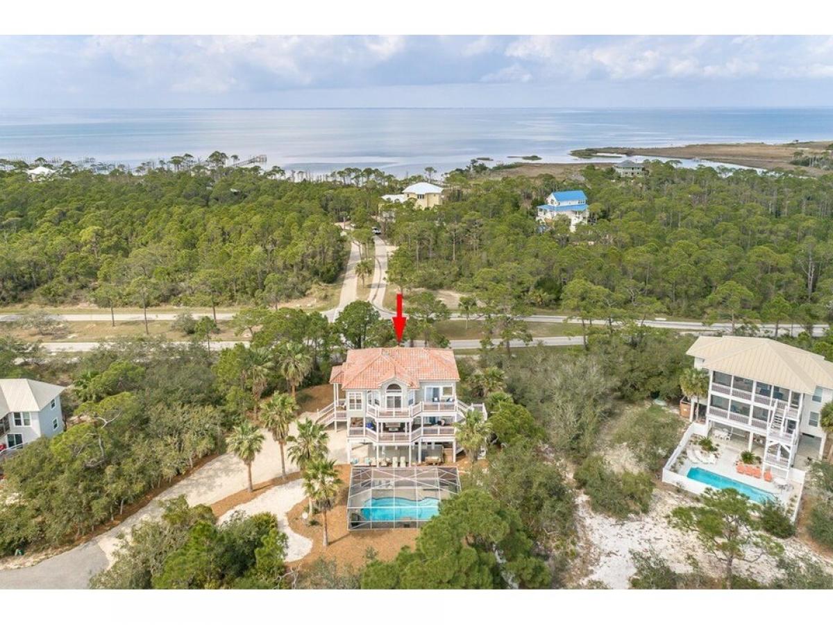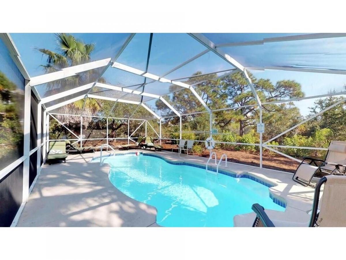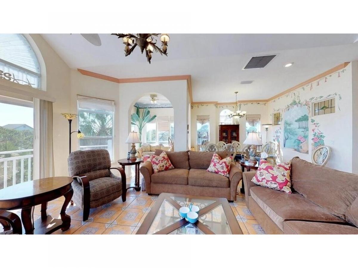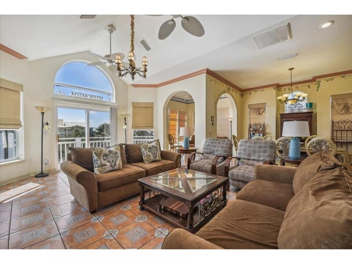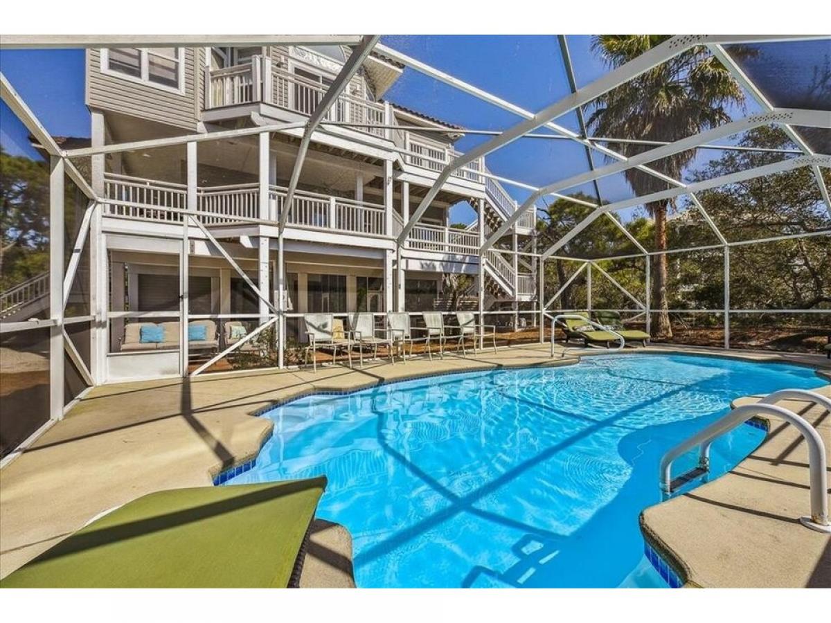 PRICE REDUCTION Enjoy your own Resort in this FURNISHED Mediterranean style home, they thought of everything, including coffee pots in every bedroom! Lots of outside areas to relax, screened in ground level area with ceramic tile floor , refrigerator and seating area.Heated, screened full size pool. The bedrooms have access to the decks with comfortable seating. The first floor has 3 bedrooms, 2 baths. The 2nd level has the open kitchen amp; livng room, dining area and extra sitting area with a full bath. The king master bedroom amp; bath are also on this 2nd level. Pathway to the Beach.50% new buyers fee to be paid at closing to the HOA.