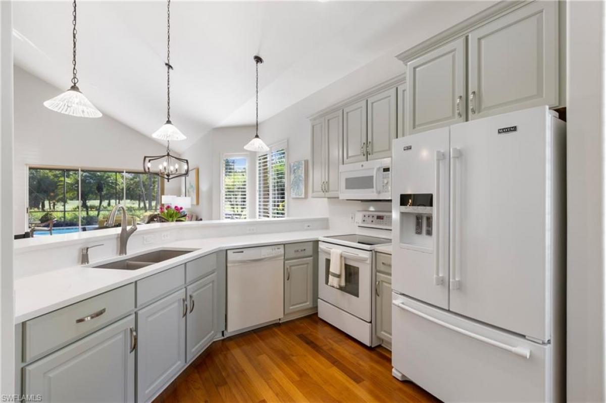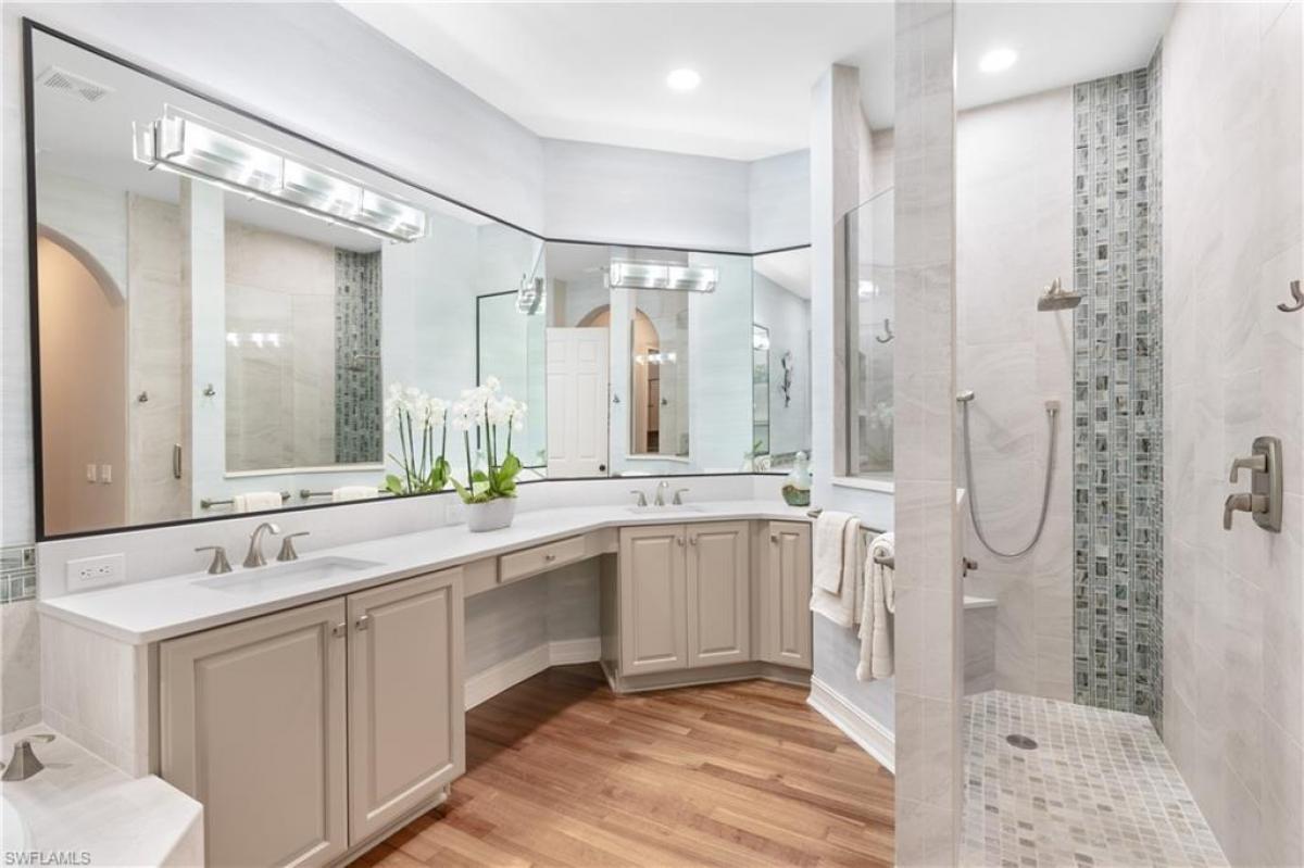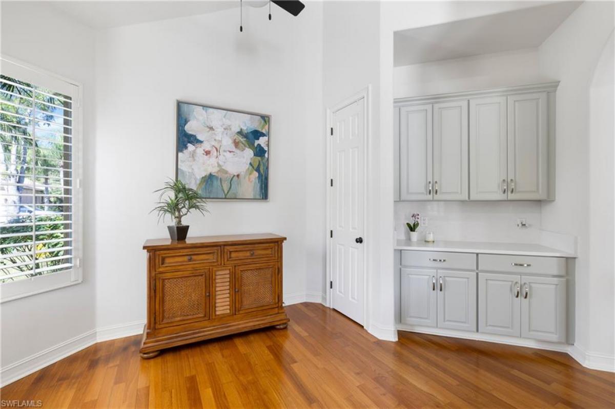 It has been over 4 years since the rarely available, & largest floor plan Villa in Grandezza’s Saraceno section such as this has been offered for sale. Enjoy over 2500 square feet of luxury with many highlights & features such as lovely golf & tropical views, a heated pool, attractive wood flooring throughout, desirable front entry w/etched glass door, plantation shutters, 3 Br + Loft/Den on 2nd floor + a 2nd floor suite w/balcony perfect for your guests, 3 full baths, ample storage including cabinets & racks in garage & custom closets in main bedroom, sunseen screening on lanai sliders & front door, + plenty of updated features : the kitchen has newer Quartz Counter tops & appliances including refrigerator (2024) , New A/C (2025), Water Heater (2022), Kevlar storm screens across lanai (2024) + clear custom fitted shutters , Pool resurfaced + equipment (2022) , Pool Heater (2022) and Roof (2019) + if bad storms come, Saraceno is on the same power grid as the Hertz Arena across the street from Grandezza, thus power rarely goes off. The community has year-round, active social activities , a 53,000 sq. ft. clubhouse, championship golf not mandatory to join, & is in one of SW Florida’s prime locations near malls, shopping centers, FGCU, hotels, Restaurants, the airport & more to come!