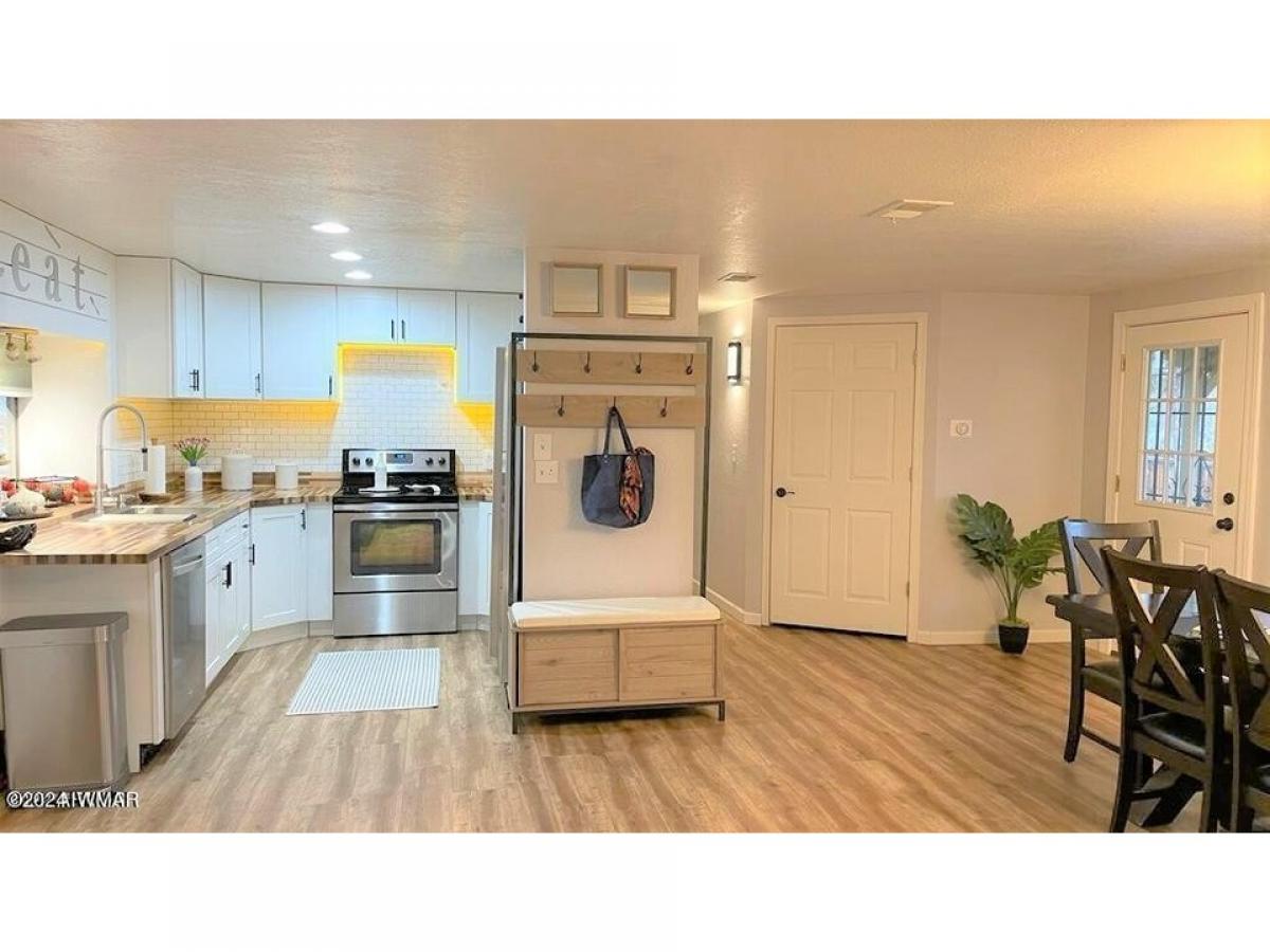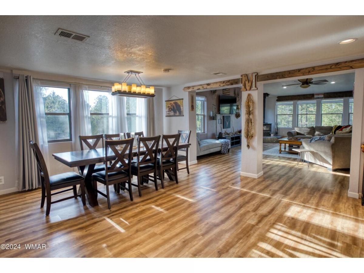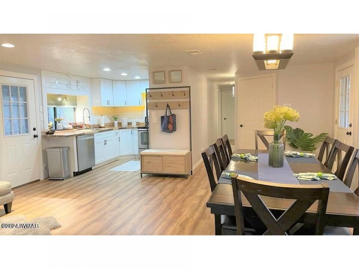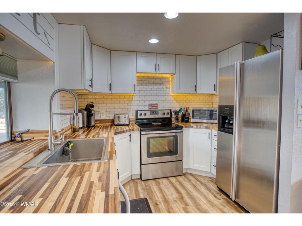 Price Improvement!! Gorgeously updated 4 bed 2 bath home on 1 fully fenced acre, nestled in the tall, cool pines! Don't let the year fool you, the list of new features throughout include: flooring, cabinets, butcher block countertops, stainless steel appliances, subway tile backsplash, sink and fixtures, window treatments, vanities & fixtures in the bathrooms, custom tile shower surrounds, and washer & dryer. This is a wonderfully spacious light and open, split bedroom floorpan! The home property has a workshop/storage building ,three decks, a covered patio and gazebo area. Fun for all ages! This property has a swing and a zip-line! Mostly Furnished!!2500 gal water tank with water delivery. Cash only sale, the original manufactured home is 1140 sq ft with a 864 sq add on.