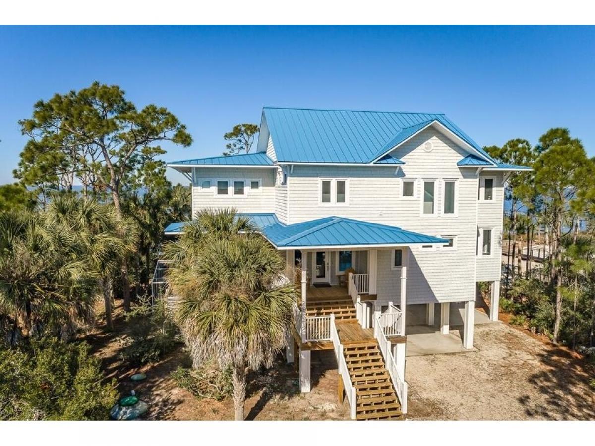 Authentic open porch-style living with a flare of old-Florida. The view of Apalachicola Bay from this home are unmatched! Year-round resort living is included in this wonderful family friendly 5 bedroom, 4 bath, BAYFRONT home on St. George Island. Located in the Plantation community, this incredible home absolutely has it all ndash; high ceilings, a great open-concept floor plan, expansive screened/covered decks, spacious guest bedrooms, tons of storage, separate owner#039;s suite, and a wall of windows with stunning panoramic views of Apalachicola Bay! Adding to the fun is a large screen-enclosed/heated swimming pool. There is even a private sandy beach for the kids. Do not miss the 500 ft. private deep(er) water dock with its own boat lift ndash; truly a recreational fishing paradise! This thoughtfully designed and well-maintained property is not a vacation rental. The property also features oversized covered parking for boat/RV/cars, an outside private shower, a fish cleaning station, and a ground-floor utility/storage room for all your tools and toys. The home is situated on a 1-acre lot surrounded by easy-to-maintain natural landscaping. This house is pure fun - come see!