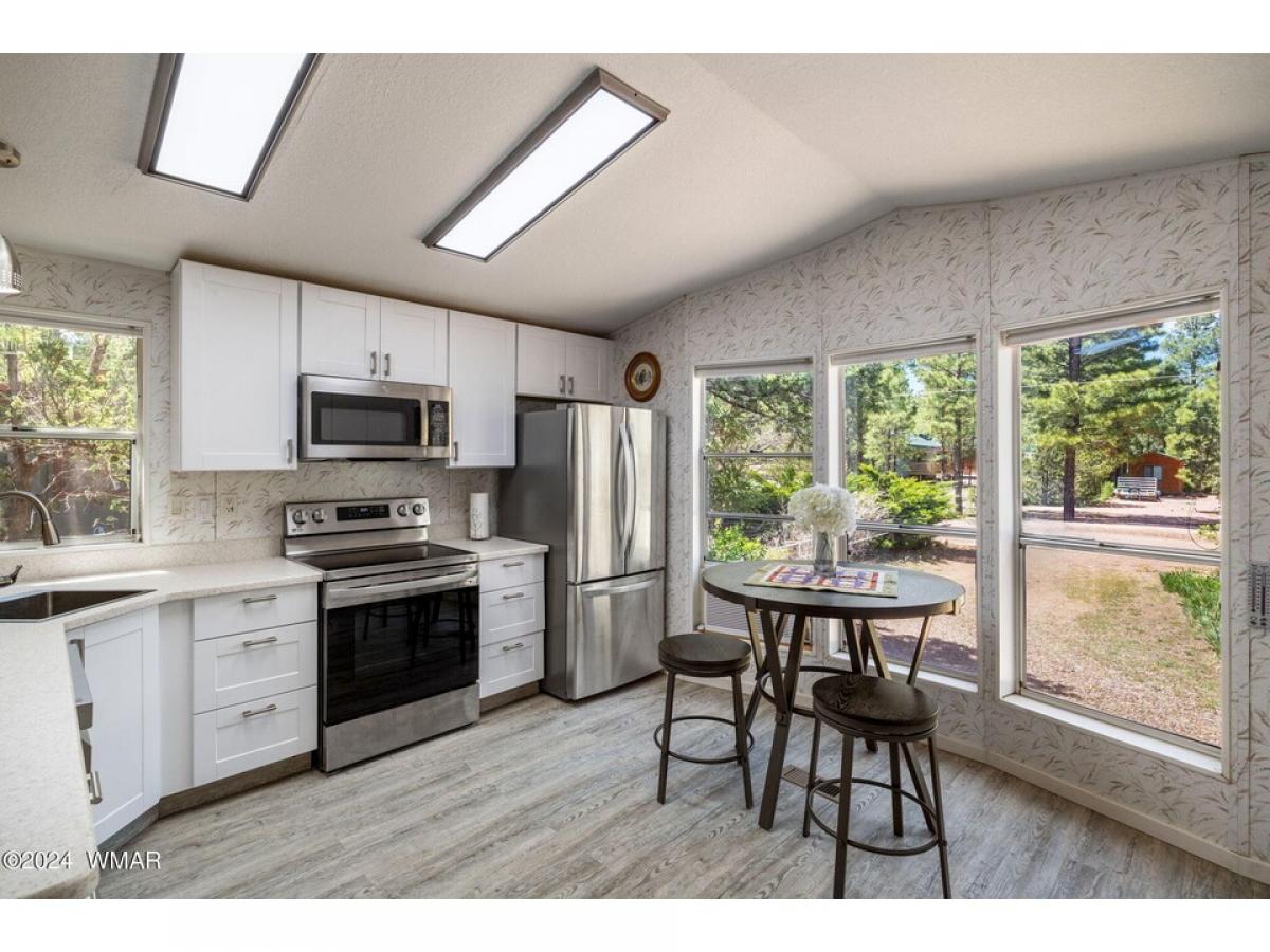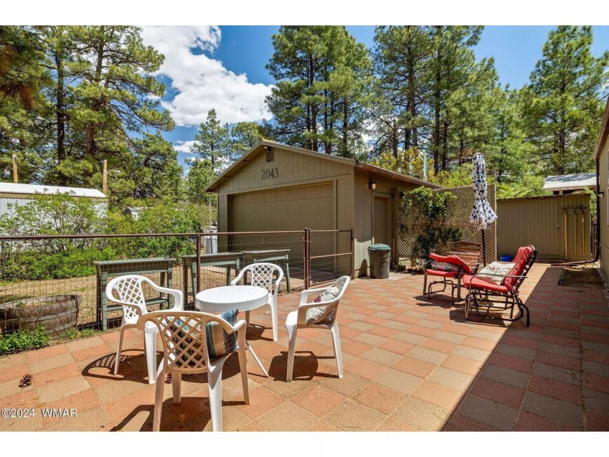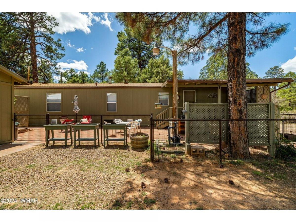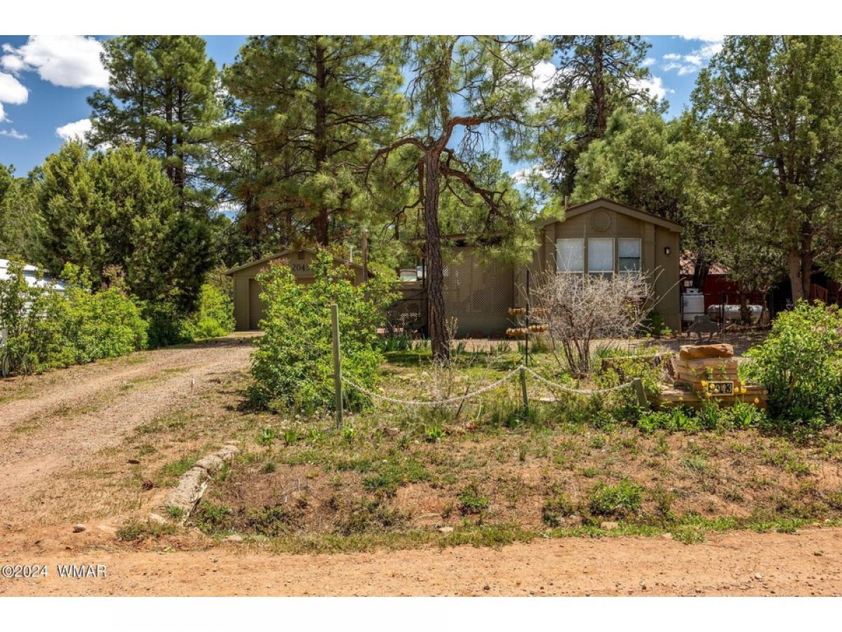 Nestled among tall pines on a county-maintained dirt road, this fully furnished retreat is a blend of modern comfort and rustic charm. Recently remodeled, the home features a kitchen adorned with white shaker cabinetry and stainless-steel appliances, perfect for culinary endeavors. Laminate wood flooring in the living area adds warmth, while plush carpeting in the two bedrooms ensures restful nights. Both bathrooms offer convenience, with a walk-in shower in the master suite and a tub shower in the hall. Outside, a detached two-car garage provides ample storage, and a covered deck offers a peaceful spot to enjoy the natural surroundings. The landscape is adorned with tall pines and meticulously landscaped areas, creating a serene atmosphere. Centrally located yet secluded, the home etc...