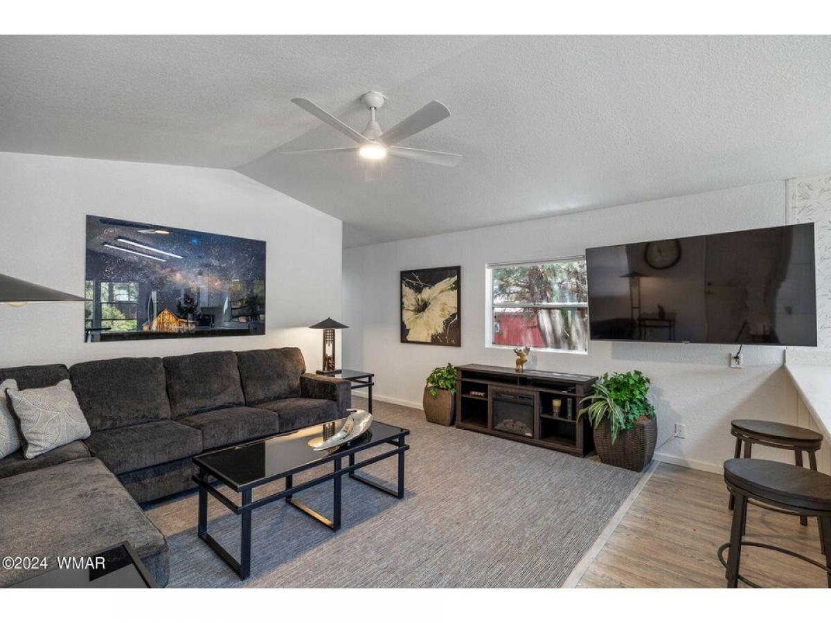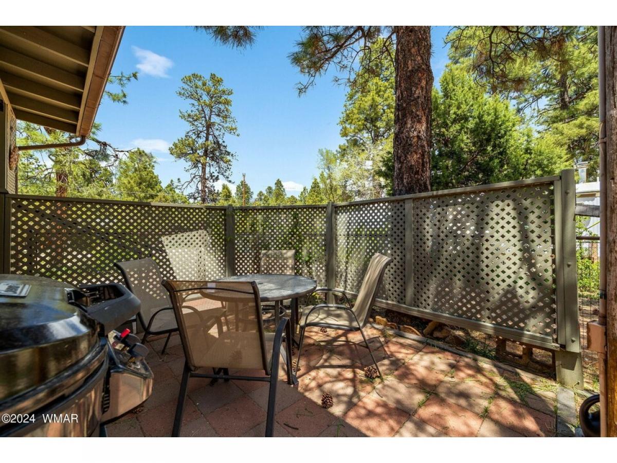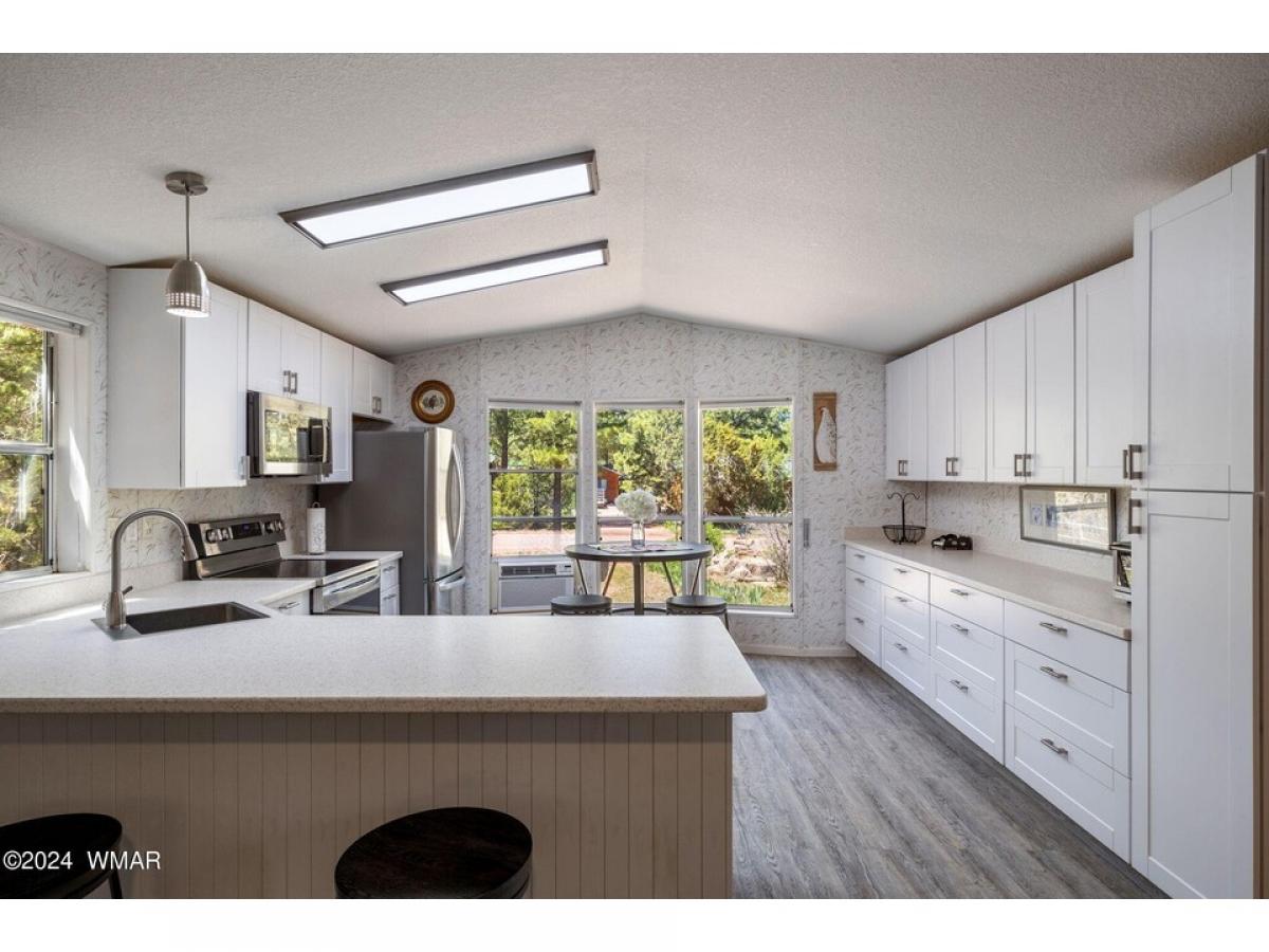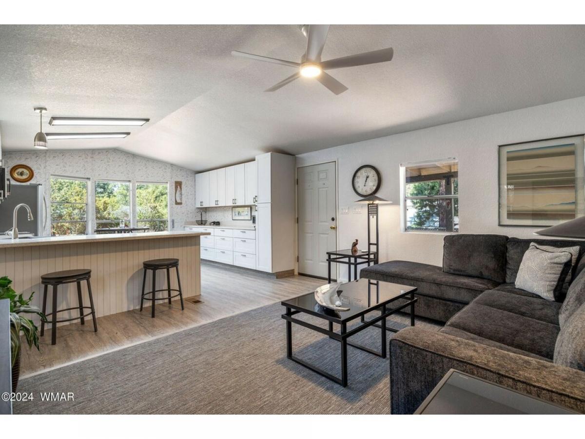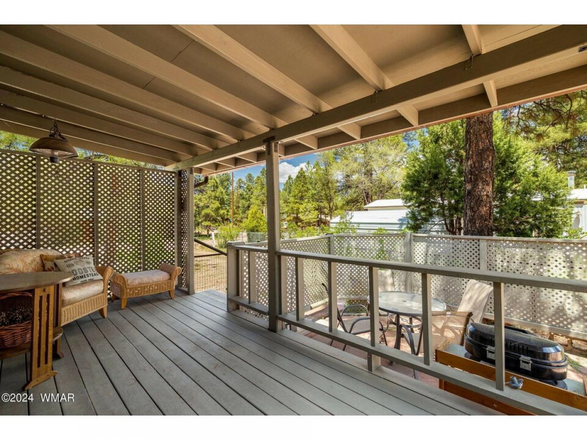 Nestled among tall pines on a county-maintained dirt road, this fully furnished retreat is a blend of modern comfort and rustic charm. Recently remodeled, the home features a kitchen adorned with white shaker cabinetry and stainless-steel appliances, perfect for culinary endeavors. Laminate wood flooring in the living area adds warmth, while plush carpeting in the two bedrooms ensures restful nights. Both bathrooms offer convenience, with a walk-in shower in the master suite and a tub shower in the hall. Outside, a detached two-car garage provides ample storage, and a covered deck offers a peaceful spot to enjoy the natural surroundings. The landscape is adorned with tall pines and meticulously landscaped areas, creating a serene atmosphere. Centrally located yet secluded, the home etc...