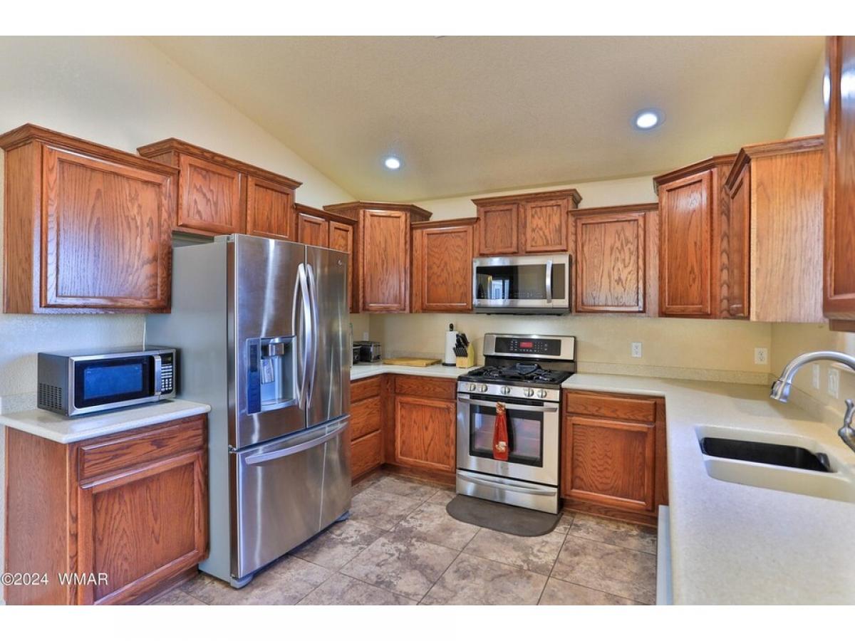 Beautiful home located in Winslow's Iron Horse Subdivision. Great Room floor plan, with a formal dining room that has french doors to Trex deck. Cherry color Kitchen cabinets with Corian countertops. SS convection range & matching SS dishwasher. Primary bedroom with bath. Second bedroom is actually 2 rooms converted into a bedroom/office combo but could be put back into separate bedrooms. AZ room off living room. Seller owned solar and backup generator.