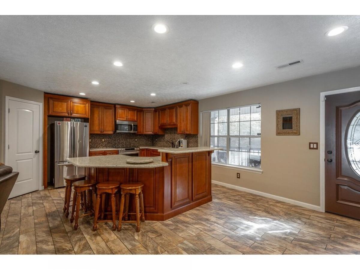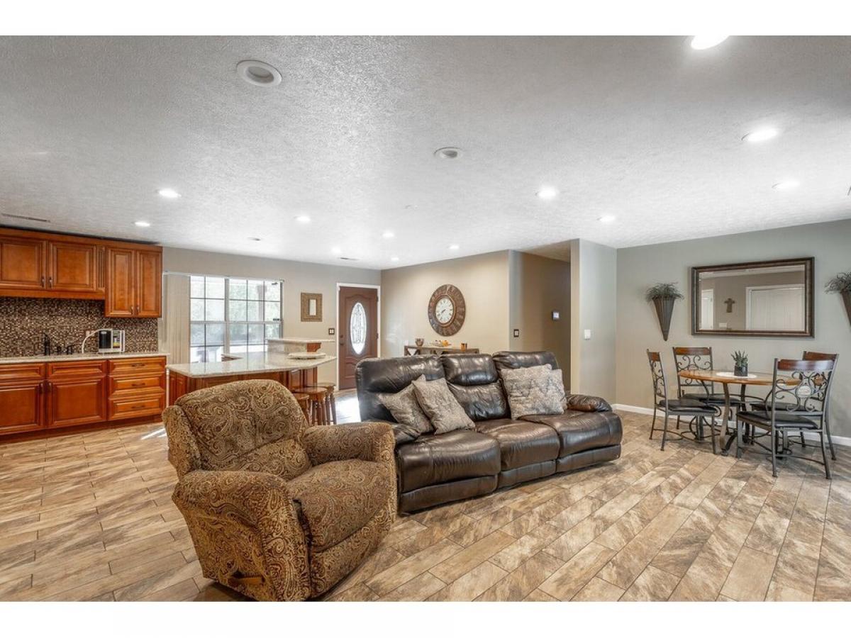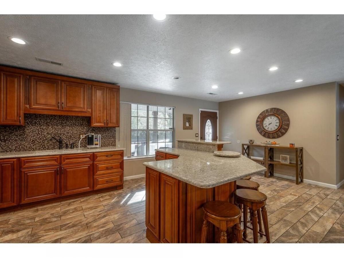 Beautiful home with rocking chair front porch, open floor plan and stylish upgrades. Enter into a spacious foyer, living room, dining room and kitchen area that is great for entertaining many family members and friends. The kitchen has custom cabinetry with plenty of storage, solid counter tops accented with a tiled backsplash. All appliances are stainless steel. The kitchen island provides room for prepping meals and seating for casual dining. The primary bedroom suite is large with wood built-in closet organizer. The primary bath has a soaking tub with shower and 36#039;#039; quartz vanity . The other two bedrooms share a hall bathroom. The backyard is a paradise setting with additional trex decking overlooking the concrete patio and above ground pool. Larrge utility building for storing lawn and pool equipment. This home is well cared for and will be such a fun place to gather. Make your appointment today to see for yourself all this home offers.