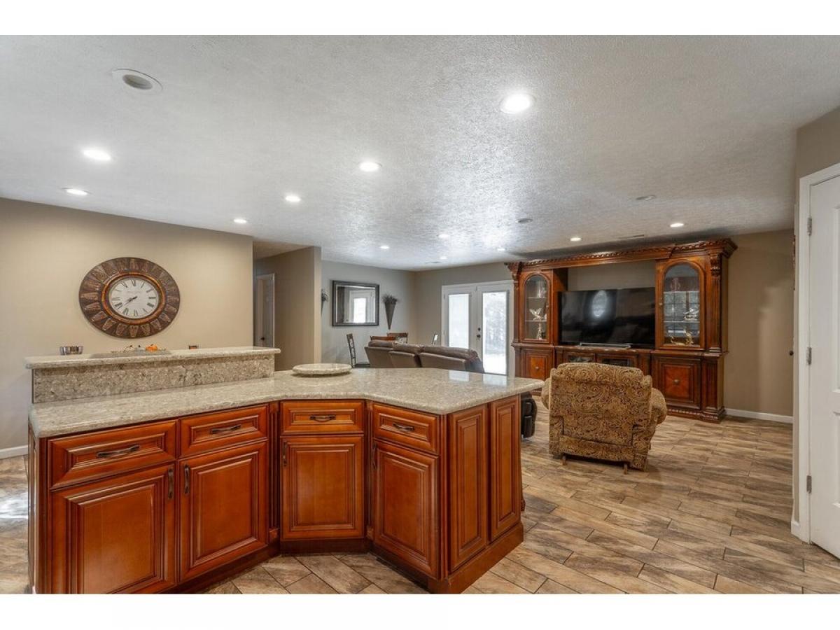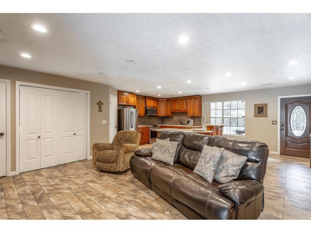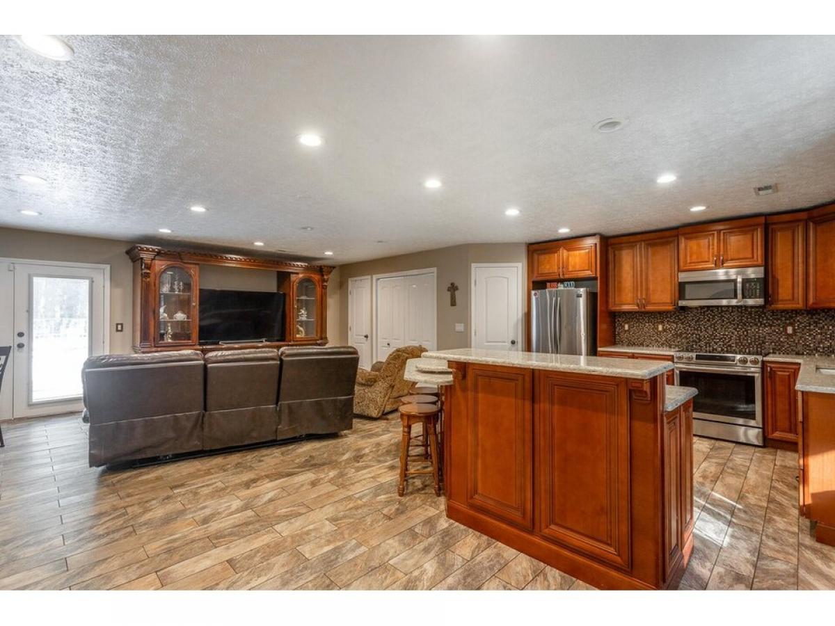 Beautiful home with rocking chair front porch, open floor plan and stylish upgrades. Enter into a spacious foyer, living room, dining room and kitchen area that is great for entertaining many family members and friends. The kitchen has custom cabinetry with plenty of storage, solid counter tops accented with a tiled backsplash. All appliances are stainless steel. The kitchen island provides room for prepping meals and seating for casual dining. The primary bedroom suite is large with wood built-in closet organizer. The primary bath has a soaking tub with shower and 36#039;#039; quartz vanity . The other two bedrooms share a hall bathroom. The backyard is a paradise setting with additional trex decking overlooking the concrete patio and above ground pool. Larrge utility building for storing lawn and pool equipment. This home is well cared for and will be such a fun place to gather. Make your appointment today to see for yourself all this home offers.