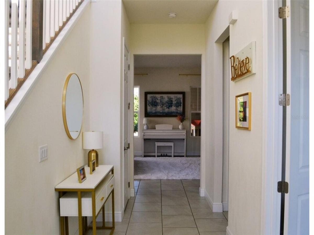 Welcome to this exceptional home in Island Village, Celebrationrsquo;s newest and most sought-after community! This spacious residence offers 4 bedrooms, a large loft, and an oversized office that can easily convert into a 5th bedroom, providing flexibility for your needs. Step inside to a bright and airy first floor, where natural light floods the vaulted-ceiling entrance through the great room. The gourmet kitchen is a chefrsquo;s dream, featuring quartz countertops with a waterfall island, an upgraded backsplash, a sleek single pull-down faucet, a 5-burner gas range, a drawer-style microwave, a double oven, and a spacious walk-in pantry. Upstairs, a versatile loft offers the perfect space for entertainment, while the primary suite boasts oversized windows, a tray ceiling, a walk-in closet, and a luxurious en-suite bath with dual sinks and an upgraded tile-ceiling walk-in shower. Three additional bedrooms, all with generous closet space, share a second bathroom with dual sinks. Outside, enjoy your mornings on the charming front porch with lush landscaping or unwind in the expansive lanai overlooking a serene conservation area. Home is also equipped with water purification and reverse osmosis system. Located just steps away from shops, restaurants, the Island Village Clubhouse (with a gym, zero-entry pool, and rec room), Celebration Pointe shopping center, and miles of scenic nature trails, this home is in the heart of it all. Plus, yoursquo;re only 10 minutes from Disney and 10 minutes from Advent Health Hospital. Donrsquo;t miss this incredible opportunity to experience the best of Celebration livingmdash;schedule your private tour today!