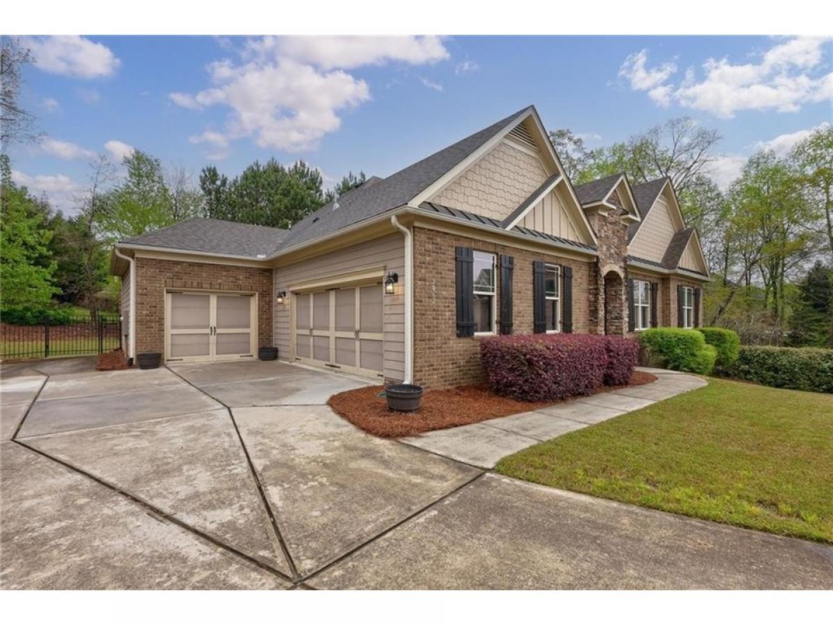 Welcome to Alcovy Trail, in the well sought after neighborhood of Riversprings. This meticulously maintained brick front, ranch style home, built in 2014, offers 4 bedrooms, 2.5 bathrooms, and spans 2,594 square feet. Step inside to discover an open floor plan seamlessly blending style and functionality. The chef's kitchen boasts stainless steel appliances, gas cooktop, double oven, two-tier granite counters, and plenty of storage space. Enjoy the proximity of the eat-in kitchen. The living area features vaulted ceilings and a gas fireplace, for those relaxing evenings. A separate dining room off the kitchen seats 8 or more, perfect for entertaining. Hardwood floors flow throughout the main living area, leading to a generously sized office space. Retreat to the master suite with a luxurious bath and spacious walk-in closet. The full, unfinished basement is already stubbed for an additional bath and offers full customization potential. Enjoy this fully fenced back yard. Conveniently equipped with an additional parking pad adjacent to the garage. Residents enjoy resort-style amenities including a clubhouse, pool with slide, 4 tennis courts and playground. Experience luxury living at its finest. Schedule your tour today!