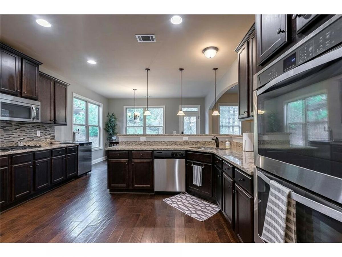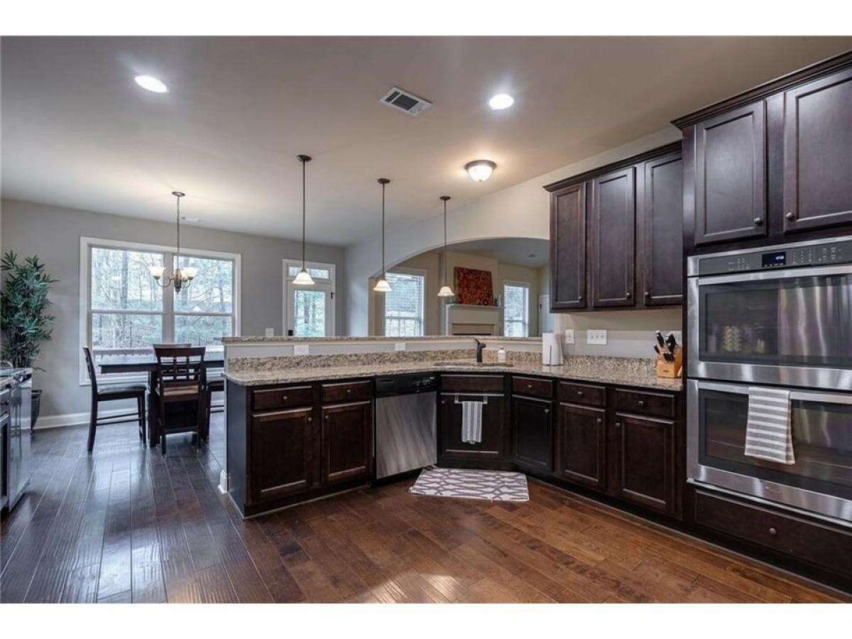 Welcome to Alcovy Trail, in the well sought after neighborhood of Riversprings. This meticulously maintained brick front, ranch style home, built in 2014, offers 4 bedrooms, 2.5 bathrooms, and spans 2,594 square feet. Step inside to discover an open floor plan seamlessly blending style and functionality. The chef's kitchen boasts stainless steel appliances, gas cooktop, double oven, two-tier granite counters, and plenty of storage space. Enjoy the proximity of the eat-in kitchen. The living area features vaulted ceilings and a gas fireplace, for those relaxing evenings. A separate dining room off the kitchen seats 8 or more, perfect for entertaining. Hardwood floors flow throughout the main living area, leading to a generously sized office space. Retreat to the master suite with a luxurious bath and spacious walk-in closet. The full, unfinished basement is already stubbed for an additional bath and offers full customization potential. Enjoy this fully fenced back yard. Conveniently equipped with an additional parking pad adjacent to the garage. Residents enjoy resort-style amenities including a clubhouse, pool with slide, 4 tennis courts and playground. Experience luxury living at its finest. Schedule your tour today!
