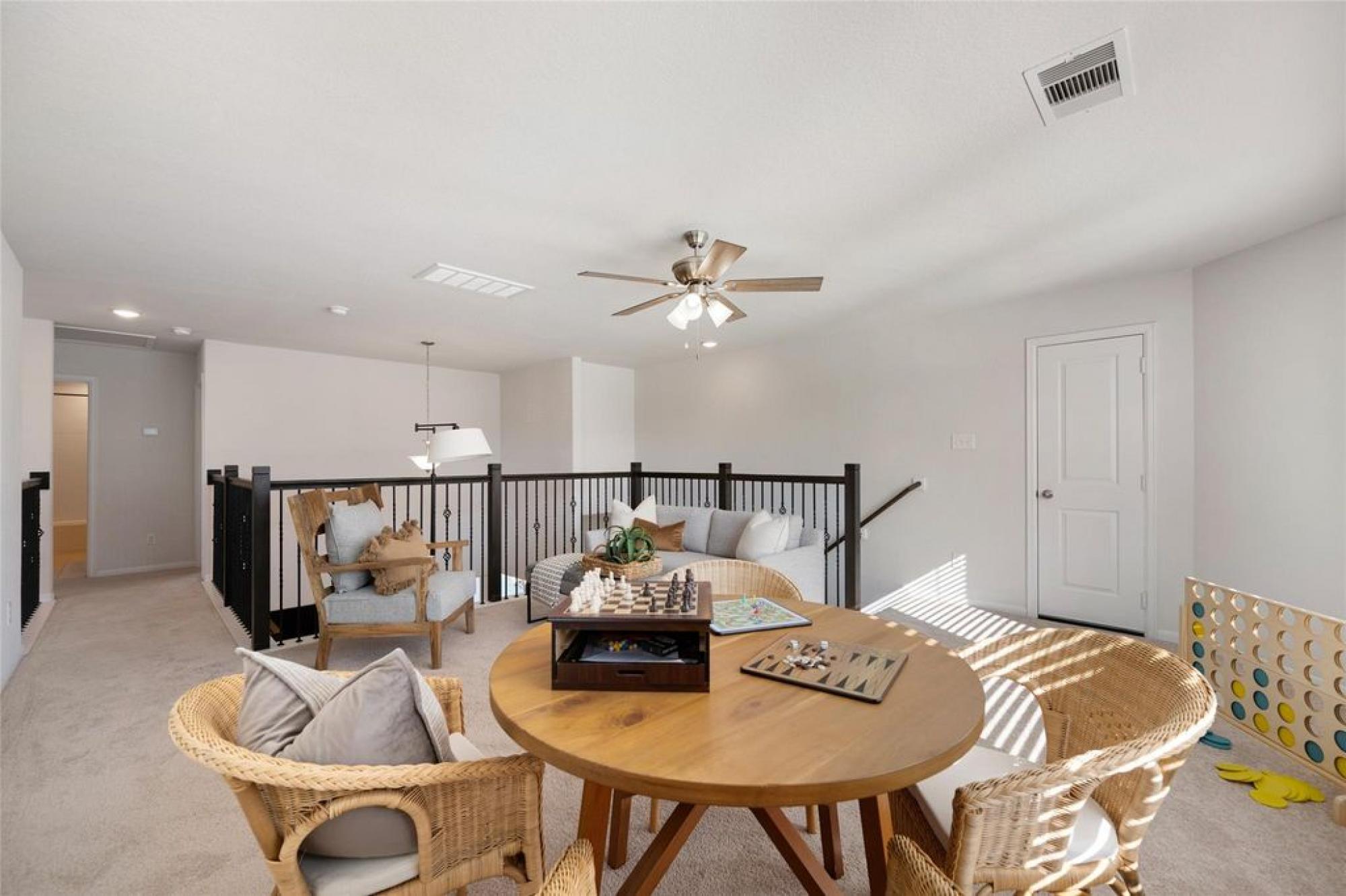 This well-designed two-story home sits on a desirable corner lot with no back neighbors and green space along one side, offering added privacy and an open feel. The flexible floorplan includes four bedrooms and three full bathrooms, with the primary suite located on the main level along with an additional bedroom and full bathroom as well as a versatile flex room ideal for a home office or playroom. Upstairs, you’ll find a spacious game room along with two additional bedrooms and a full bathroom. Open-concept living areas are perfect for entertaining. Featuring high ceilings, abundant natural light and a thoughtfully designed kitchen with a large island, ample countertop space and generous cabinetry. Community amenities include walking trails, parks and access to Calvit Lake with a neighborhood boathouse. Conveniently located with easy access to TX-288, shopping and schools, this home offers both comfort and functionality in a sought-after setting. Schedule a showing today!