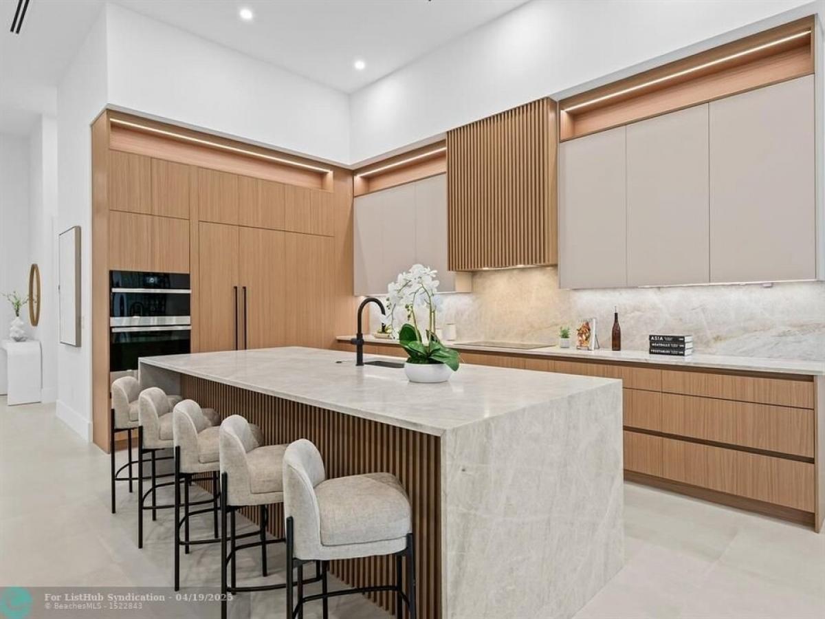 COMPLETED NEW CONSTRUCTION |STEPS TO WILTON DR | 13rsquo; CEILINGS THRU OUT | 3,588 TOTAL SQ FT. Built by MSK Homes, featuring curated designer finishes amp; an expansive luminous open concept flr plan. Custom culinary kitchen, enormous walk-in hidden pantry, 12#039;+ center island. The lrg covered loggia boasts an outdoor summer kitchen with marine-grade Lioher cabinetry amp; luxurious counter tops. Endless flr to ceiling walls of glass showcase amp; open onto the pool/spa amp; waterfall framed by tropical landscaping. The Primary suite offers an oversized WIC, glass LED island amp; spa inspired bathrm with Kohler Anthem system. Sleek Glass walled office, cabana bath, laundry rm, architectural LED tray ceilings, Italian porcelain flooring, speaker system, high mount garage, no flood zone. Sq ft from architect.