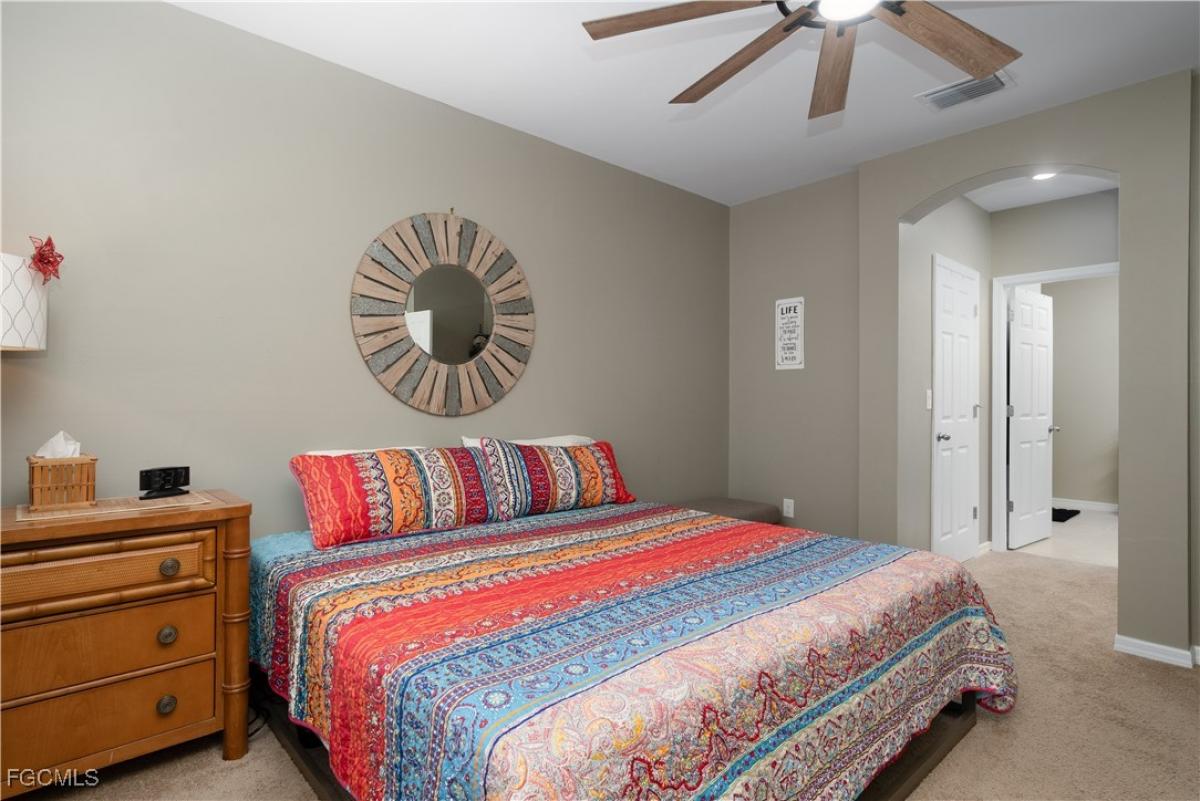 Welcome to Magnolia Landing, a premier gated community in North Fort Myers with a guard at the entrance, offering peace of mind and resort-style living. This beautifully maintained attached villa blends comfort, convenience, and elegance—perfect for year-round living or a seasonal retreat. Step inside through the inviting side-entry foyer and discover an open layout. The home features 2 bedrooms plus a den with French doors, and 2 full baths, providing flexible space for guests, a home office, or hobbies. The main suite offers two walk-in closets, and a spacious ensuite bath with dual sinks and a walk-in shower. The guest bedroom is paired with a full bath featuring a tub/shower combo, ensuring comfort for visitors. The heart of the home is the open great room concept, seamlessly connecting the kitchen, dining, and living areas. The kitchen is equipped with quartz countertops, pantry, and breakfast bar—perfect for entertaining. Enjoy Florida living at its finest in the screened lanai with brick pavers and a fenced yard. It’s the ideal spot for morning coffee or evening relaxation. Living in Magnolia Landing means enjoying a vibrant, active lifestyle right outside your door. The HOA covers roof and building maintenance/repair, giving you peace of mind and more time to enjoy the amenities. You’ll have access to two pools, a resort-style pool and a lap pool, a well-equipped fitness center, and endless activities including pickleball, bocce ball, shuffleboard, and social clubs. Golf enthusiasts will appreciate the 18-hole championship course designed by Gordon Lewis, with optional membership or convenient Pay-As-You-Play access. The 10,000 sq. ft. clubhouse offers a restaurant/grill, pro shop, and locker rooms, while The Grill, the community’s on-site dining spot, is perfect for meeting friends and unwinding. Ideally located near the amenity center, this villa offers easy access to everything Magnolia Landing has to offer. Plus, you’re just a short drive to Fort Myers, Cape Coral, and Punta Gorda, making shopping, dining, and beaches all within reach.