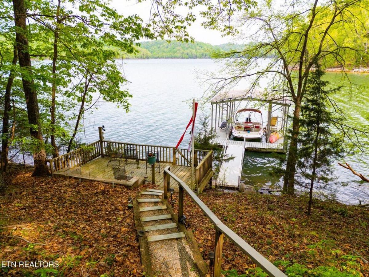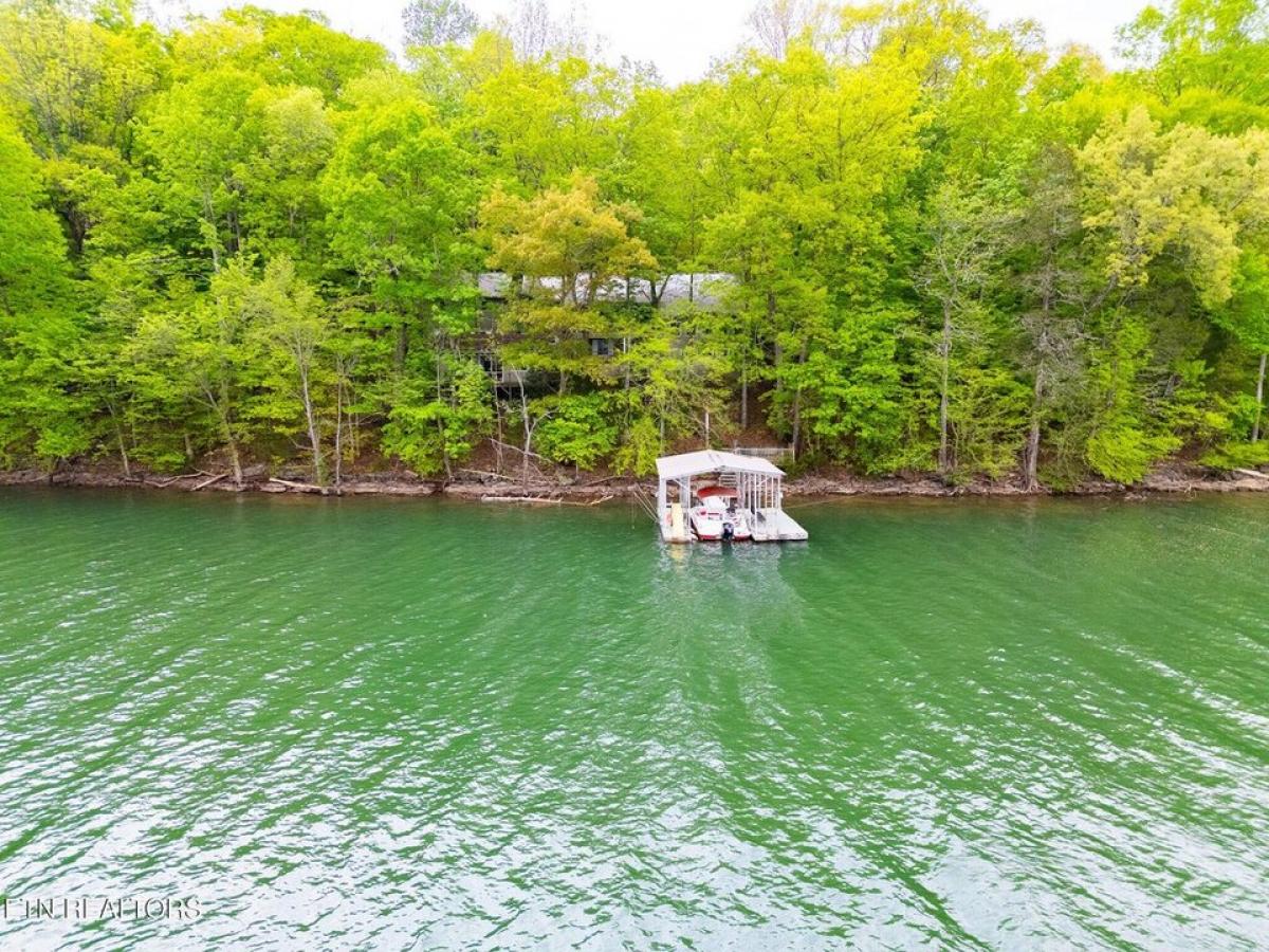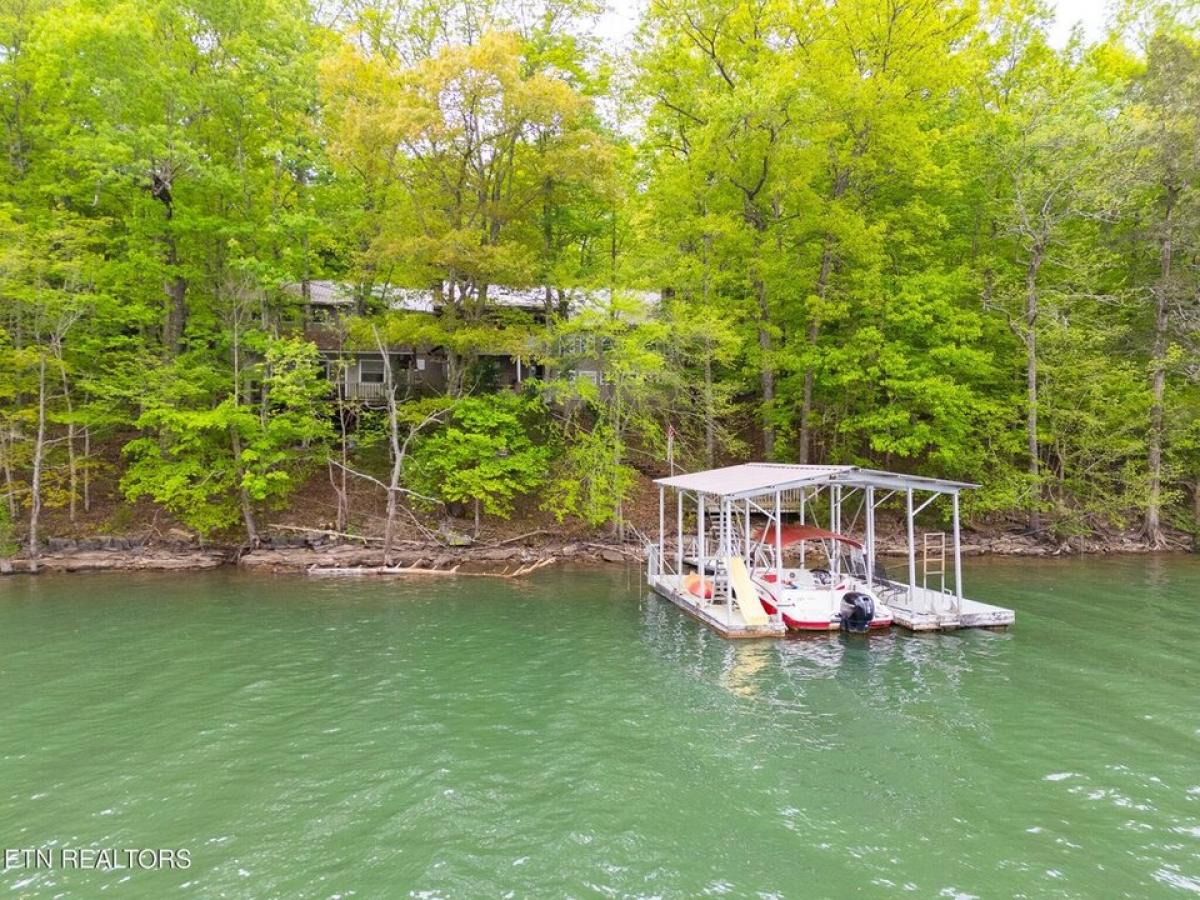Lakefront Paradise: Waterfront Estate with Private Cove, 220 feet of Norris Lake shoreline. Unrestricted property, TVA permitted Floating Dock, 10 miles off I-75 Norris Exit. Welcome to this extraordinary lakefront property featuring approximately 3,500 square feet of living space situated on a private one-acre lot with 220 feet of pristine shoreline. This 1960s gem combines vintage charm with modern updates to create the perfect waterfront retreat. This exceptional property boasts a private cove with 220 feet of shoreline and no TVA restrictions, giving you the freedom to trim trees and landscape as desired. The TVA-approved dock, grandfathered in and built in 2005, offers year-round 15-foot water depth and prime location on the main channel. TVA Permit in Docs. Step inside to discover a soaring 13-foot ceiling with a gabled living room enhanced with skylights and new recessed lighting. The home showcases original beautifully refinished cherry wood floors with thin planking and preserved 1960 woodwork throughout. Premium interior finishes include maple walls, knotty pine, and oak floors. The stunning wood-burning fireplace insert with custom marble hearth serves as the centerpiece of the living room, while the primary bedroom features its own fireplace. The kitchen impresses with quartz countertops and premium appliances including KitchenAid dishwasher, LG refrigerator, and gas stove. Cedar closets provide natural protection for seasonal items. A custom built-in office desk and shelving with lake views offers an inspiring workspace. With 3 bedrooms, 2 full bathrooms including a shower with cultured marble walls and floor, and charming pocket doors in select rooms, this home combines functionality with character. The multi-level design creates interesting transitions throughout the various spaces. Pella windows showcase the lakeview and the home has been updated with a tin roof installed in 2020, completely updated wiring and plumbing in 2002, and a heat pump from 2008 complemented by an extra LG air conditioner from 2009. The water heater was replaced in 2017. The property is served by public water, though the original well remains on site but is not operational. The home uses a septic sewer system and currently operates on propane, with natural gas available at the road. Enjoy a workshop space also in the basement, and an upstairs craft room perfect for creative pursuits.This rare lakefront estate offers the perfect blend of historic character, modern amenities, and unbeatable waterfront living. Schedule your showing today!