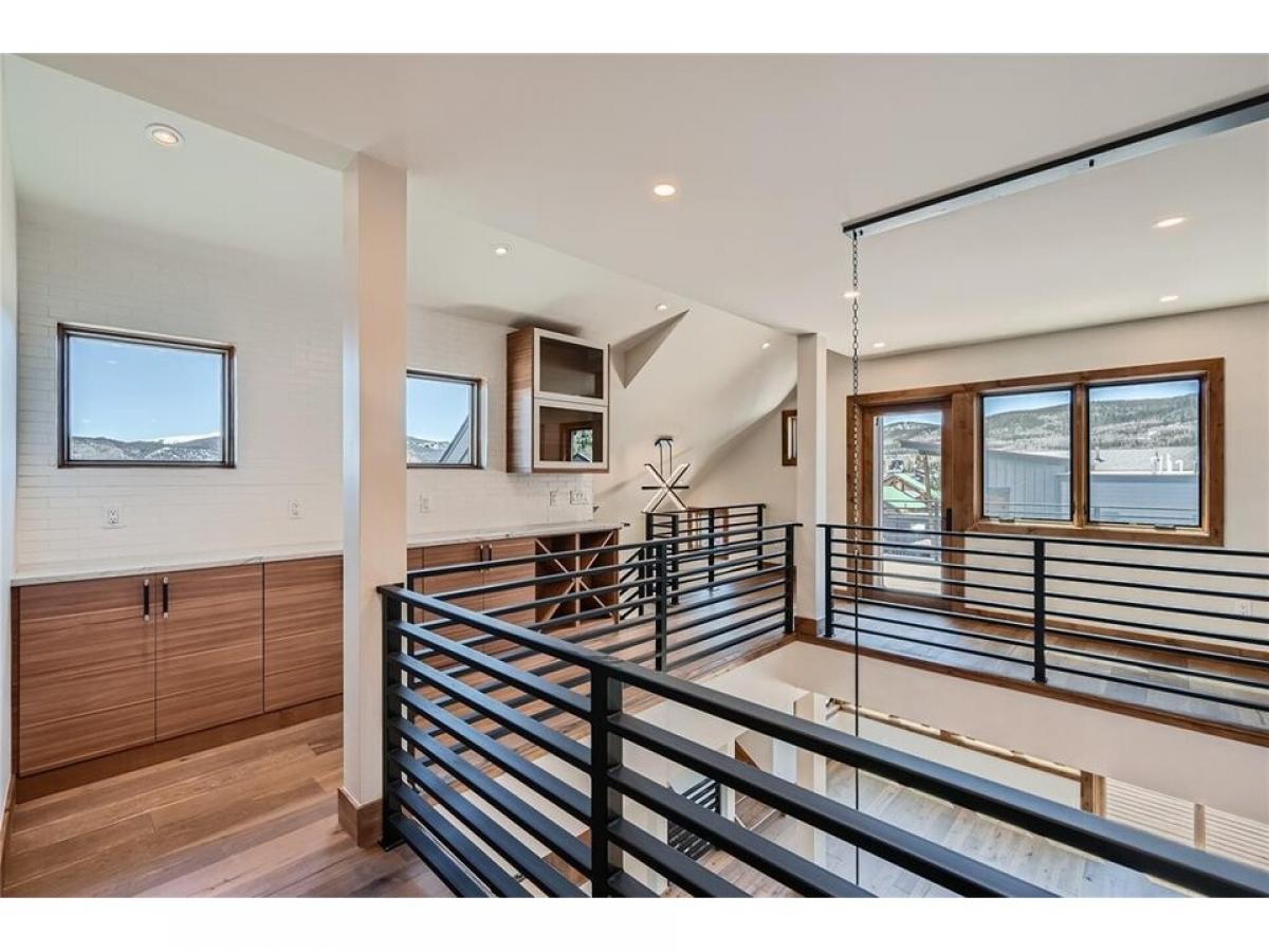 Beautiful Luxury Townhome. MUST SEE! INCREDIBLE VIEWS FROM ALL 5 DECKS! SOUTH FACING NEW CONSTRUCTION IN FRISCO. 1/2 BLOCK OFF MAIN STREET! DONE Ready to Move In. Mountain modern finishes. Barn door will be installed for privacy. Home features quartz counter tops, two fireplaces, one stone and one metal, wood floors throughout, 5 decks, one structurally supportive for a hot tub, huge main floor deck and roof top deck for entertaining guests. Large open great room with gas fireplace, accent stone wall in entry, pantry, 1/2 bath, and main level primary bedroom . 2nd family room/flex space on entry level, with barn door for privacy. All bedrooms en-suite. 2nd Primary bedroom on its own private floor with metal gas fireplace. Bar counter near hot tub deck. Huge living space with double level vaulted ceilings with open catwalk exposed railings above! Viking appliances. Oversized two car garage with an additional carport for two more cars. Power in garage ready for electric car charger. Panoramic views of Mt. Royal, Peak One, Buffalo Mt, and Continental Divide. Centrally located in the charming town of Frisco Colorado surrounded by 5 world class ski areas, only minutes away. Free bus to ski in the winter, and bike and hike during the summer. Numerous hiking trails and bike paths right out your door. Walking distance to Frisco Marina on Lake Dillon for all your water actives, paddle boarding, canoeing, kayaking, sailing, and fishing. Main Street one block away to enjoy all the restaurants, shops and festivals. Minutes away from Ten Mile Creek, Walter Byron and Historic Park. ONE OF THE BEST LOCATIONS IN FRISCO! HERs Home Energy Ratings, ZERH Zero Energy Ready Homes. 1 year builder's warranty. 1 1/2 hours to DIA Airport and Eagle Airport. Floor plans available in attachments. LOW HOA DUES include exterior maintenance, siding, roof, snow plowing, shoveling to your door & landscape.