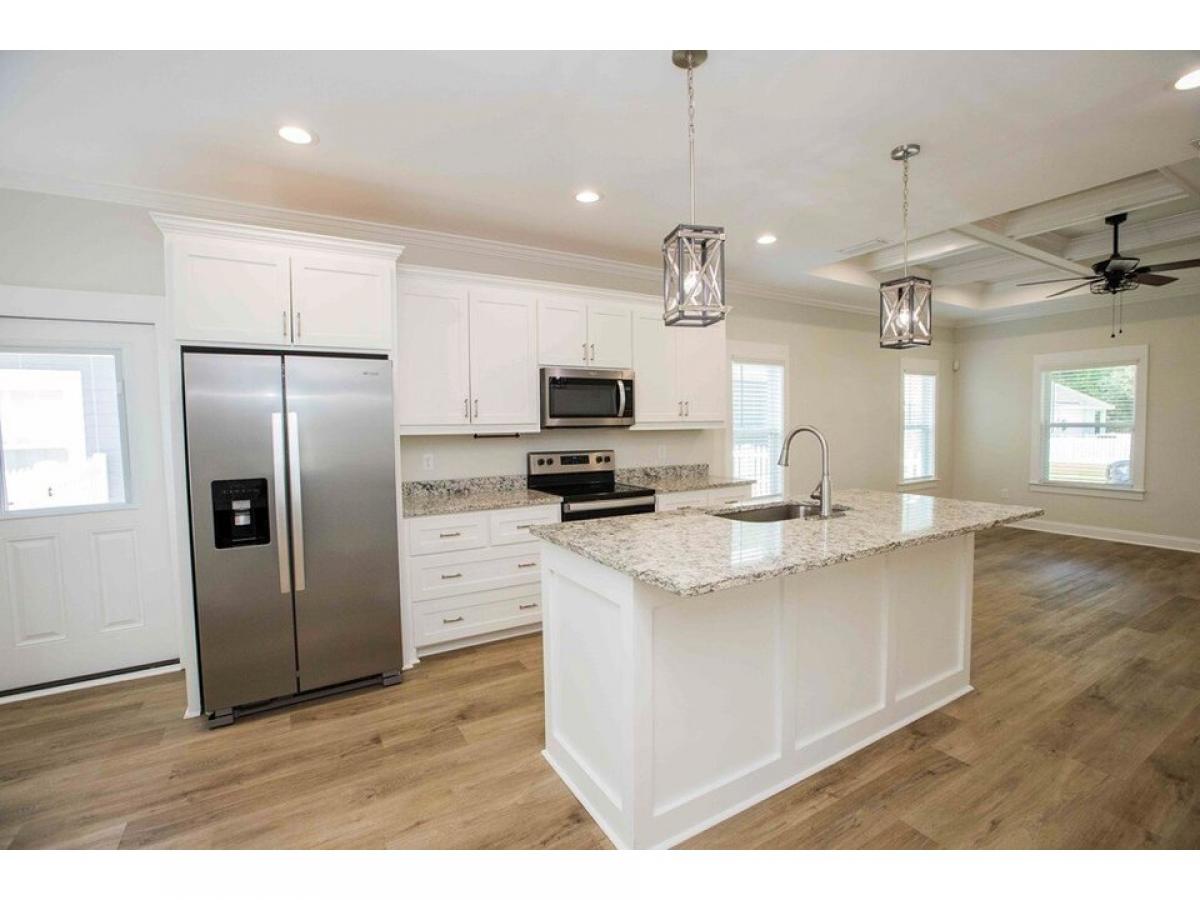 Welcome home to Madison Grove! This property is a must see! As you enter you will start to see all of the updates that you have been looking for. This home offers a split floor plan that is open and airy with each spare bedroom being adequate in size and offering plenty of storage. The living room is spacious and has updated coffered ceilings to really add to the WOW factor of the molding package. The kitchen is the centerpiece of the property offering a center bar for extra seating, granite countertops and pantry. There is also an extra dining area, just off of the kitchen. The entire home features updated crown molding, LVP flooring, granite counter tops and a tankless hot water heater. The master suite offers higher trey ceilings, a large closet and a Luxury shower in the master bath. The yard maintenance is included in the HOA fee, so no worries there. Beside your parking pad, you have extra exterior storage. Living in Madison Grove means you also get to enjoy the Madison Grove clubhouse that features a pool, clubhouse, game room, and work out facility. Call today to schedule your private tour!!