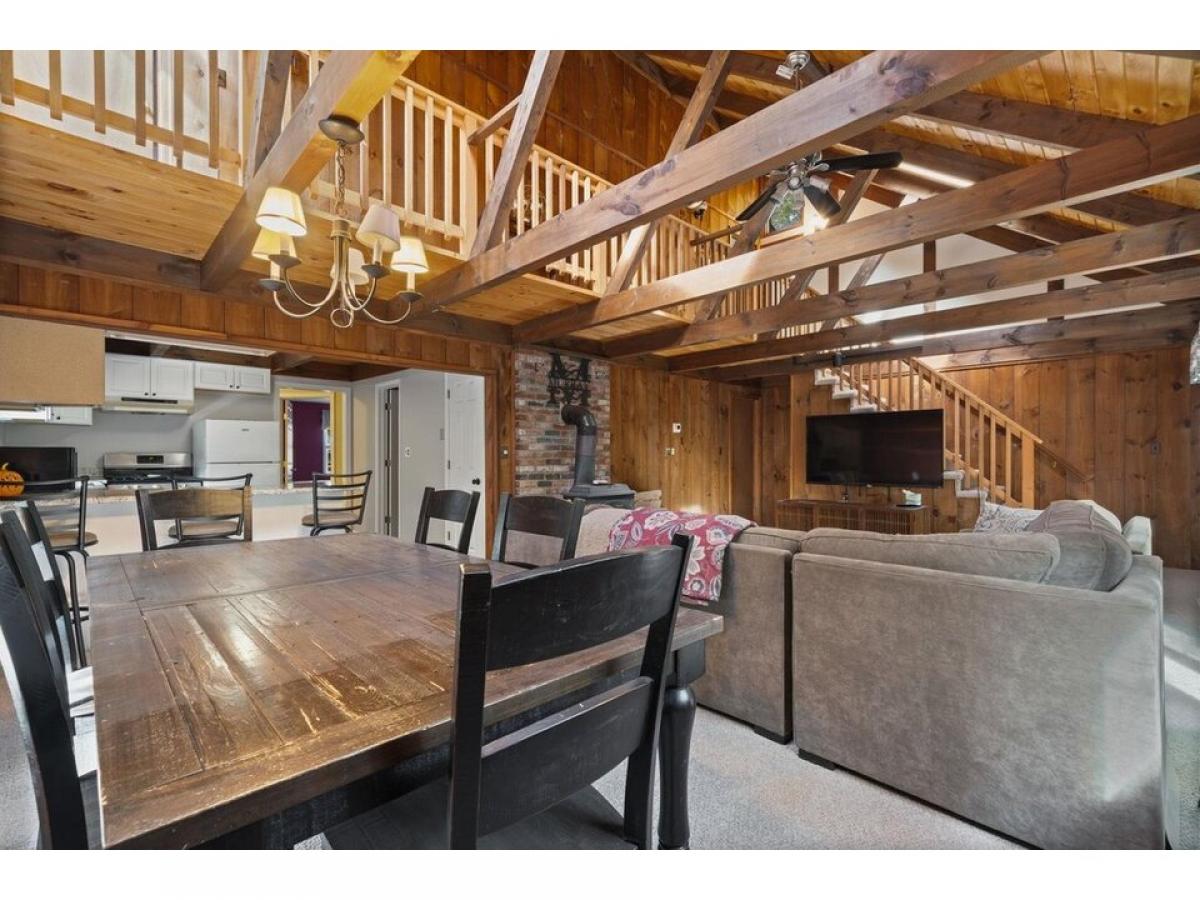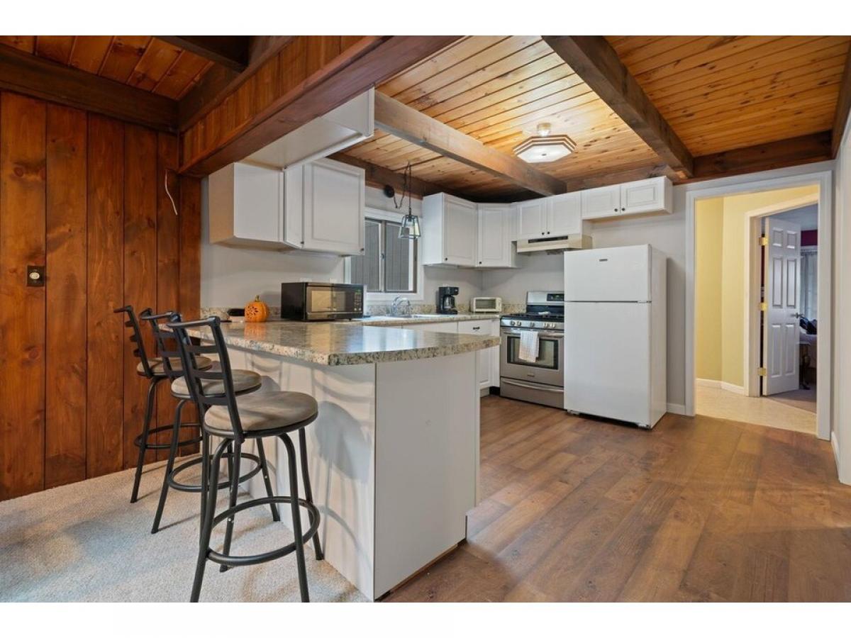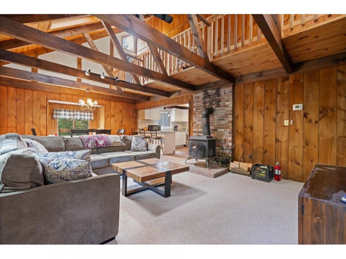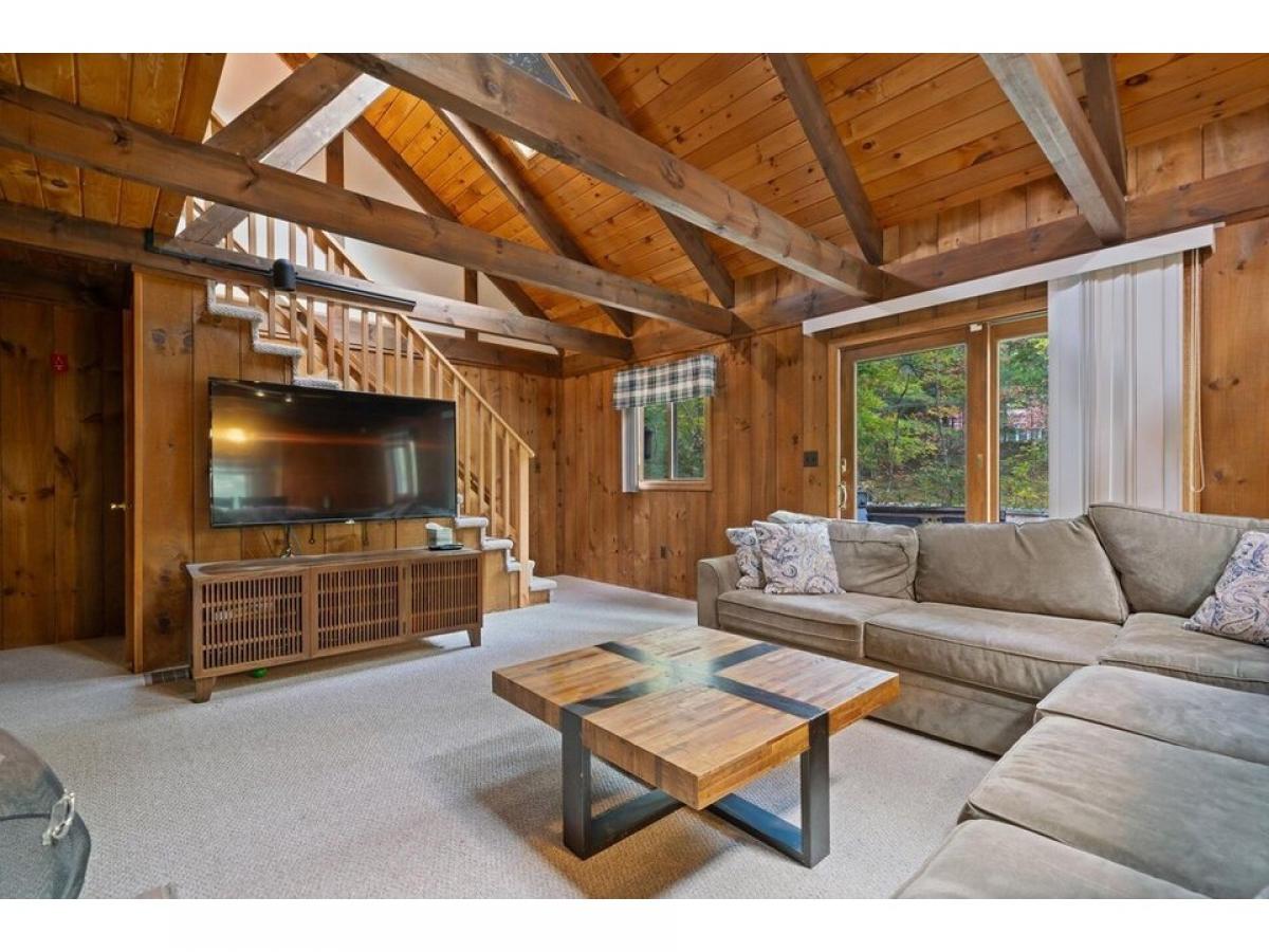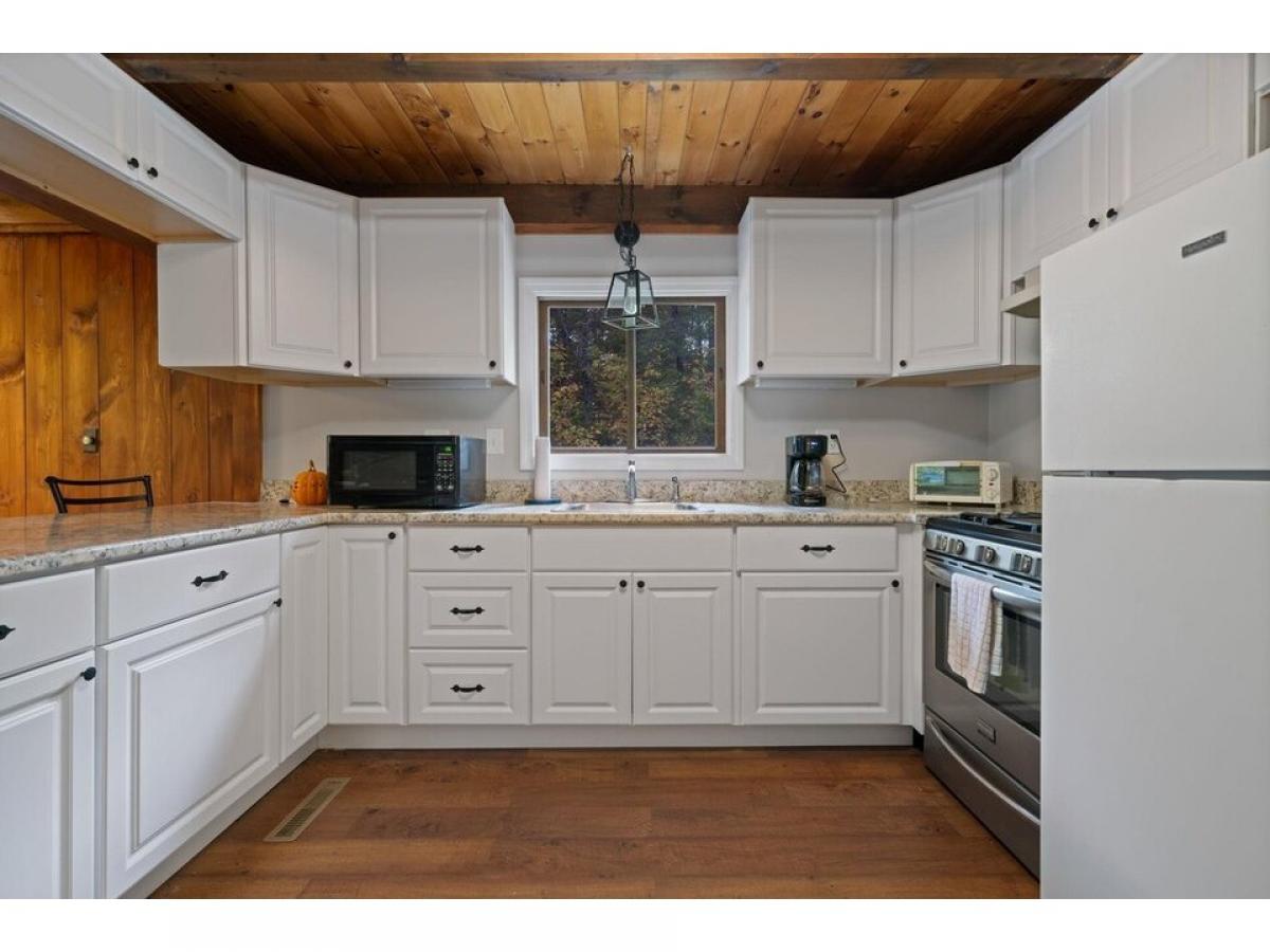 Lake Ossipee Village. Discover your dream retreat in this contemporary home, featuring 4 bedrooms, 3 full baths, 2 living rooms, mudroom, office, laundry and a newer detached two-car garage. Enjoy access to a beautiful sandy beach on Broad Bay, Ossipee Lake! Expanded in 2002, this home boasts a luxurious primary suite with a private bath, jet tub, separate shower, double sink vanity, and walk-in closet. Relax on your private back deck, complete with a six-person hot tub. The first floor features an open layout, highlighted by a spacious living/dining area with a brick hearth and wood stove, cathedral beamed ceilings, and sliding glass doors leading to a private front deck. The new kitchen is a great place for gathering with a breakfast bar peninsula .A versatile second bedroom or office and a full bath complete the main level. Upstairs, find two additional bedrooms and a third full bath, all overlooking the airy living space below. The recently refinished lower level includes a finished family room, bonus room/office and a generous unfinished area for storage or a workshop. Recent updates include a newer metal roof, new water heater, new carpet and an updated septic system. This well-maintained home is move-in ready and perfect for creating lasting memories! Don#039;t miss out on this exceptional opportunity.