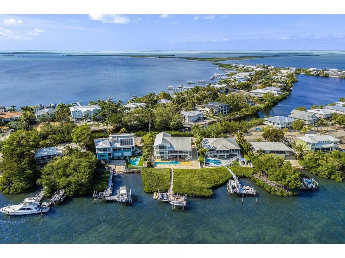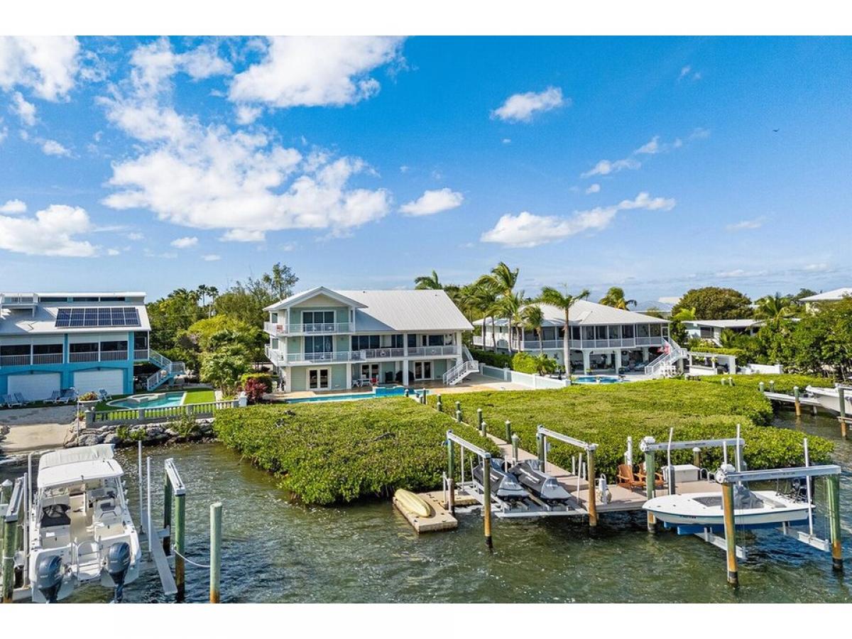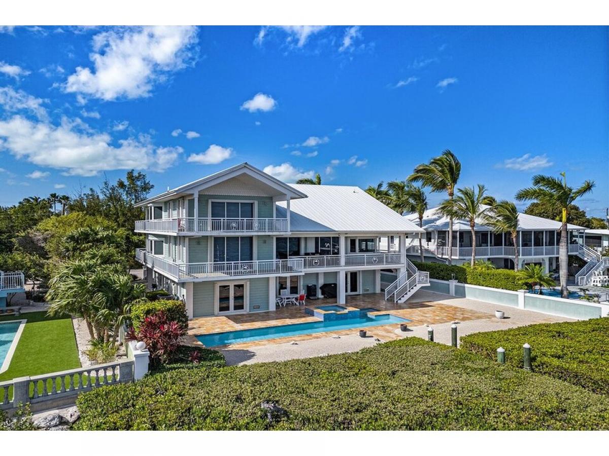 Enjoy this OPEN WATER luxury lifestyle in the coveted area of Buccaneer Point Estates in south Key Largo. Prepare to be captivated by this 5 bedroom, 4 bath extraordinary waterfront masterpiece that combines modern elegance and over 3,900 sq. ft of living space with a tropical paradise ambiance. Nestled on the shores of the bay, this custom-designed home has been thoughtfully crafted with discerning clients in mind. This rare offering promises a lifestyle beyond compare, where every moment is infused with the allure of the Florida Keys. As you step inside, ascend the interior stairs from the grand foyer to the main living level, where cathedral ceilings and an abundance of natural light create an inviting atmosphere. Revel in the breathtaking water views framed by expansive windows and doors, seamlessly blending the beauty of the outdoors with the comfort of your luxurious sanctuary. The heart of this residence lies within the great room, where a well-appointed double island creates the perfect setting for entertaining while the expansive porch areas beckon you to soak in the tranquil vistas. Designed to accommodate a large family or gathering of friends, this home boasts two master ensuites on each level, ensuring privacy and comfort for all. In addition, three guest bedrooms with adjoining bathrooms provide ample space for everyone to unwind and recharge. For water enthusiasts, this home is a dream come true with an inviting in-ground heated pool, surrounded by a custom paved deck area and lush privacy landscaping. The deep water pier dock features a boat lift and jet ski lift. The spacious four-car garage with dual doors, a second refrigerator, an ice maker, and the potential for a bar or summer kitchen makes it a versatile space for hosting unforgettable backyard gatherings.