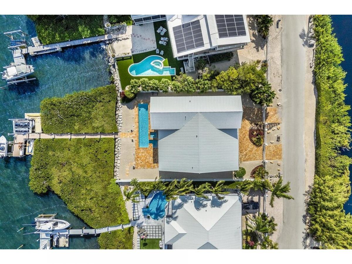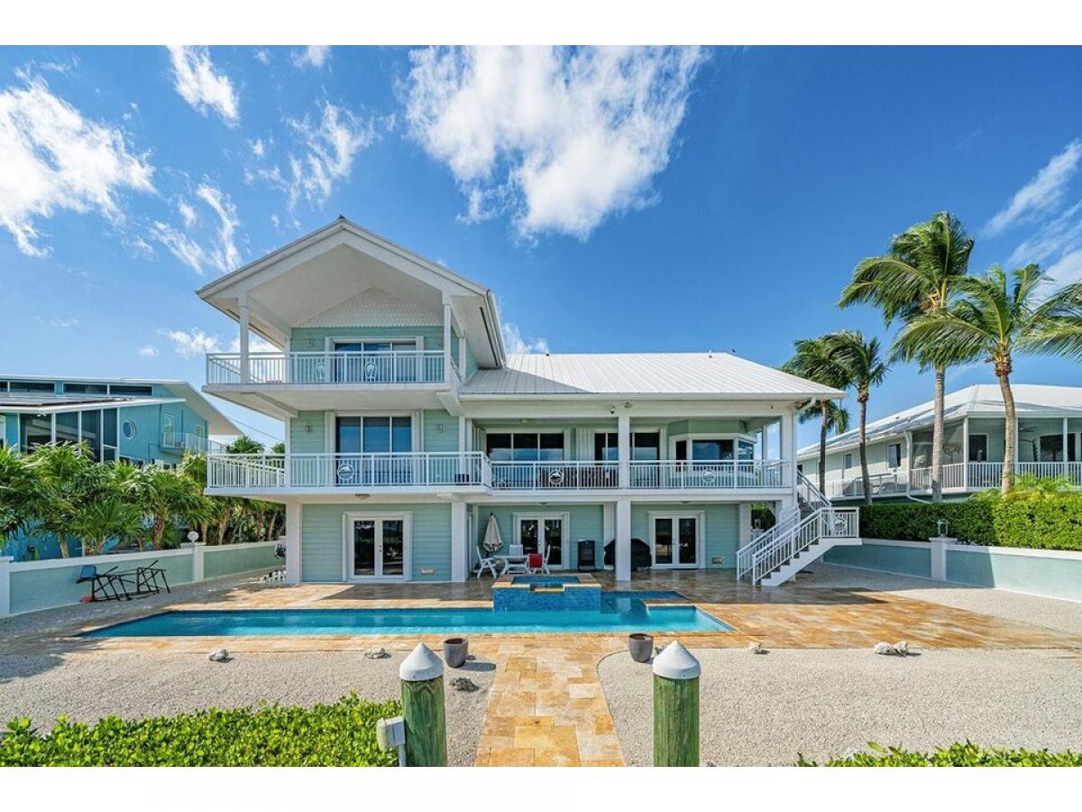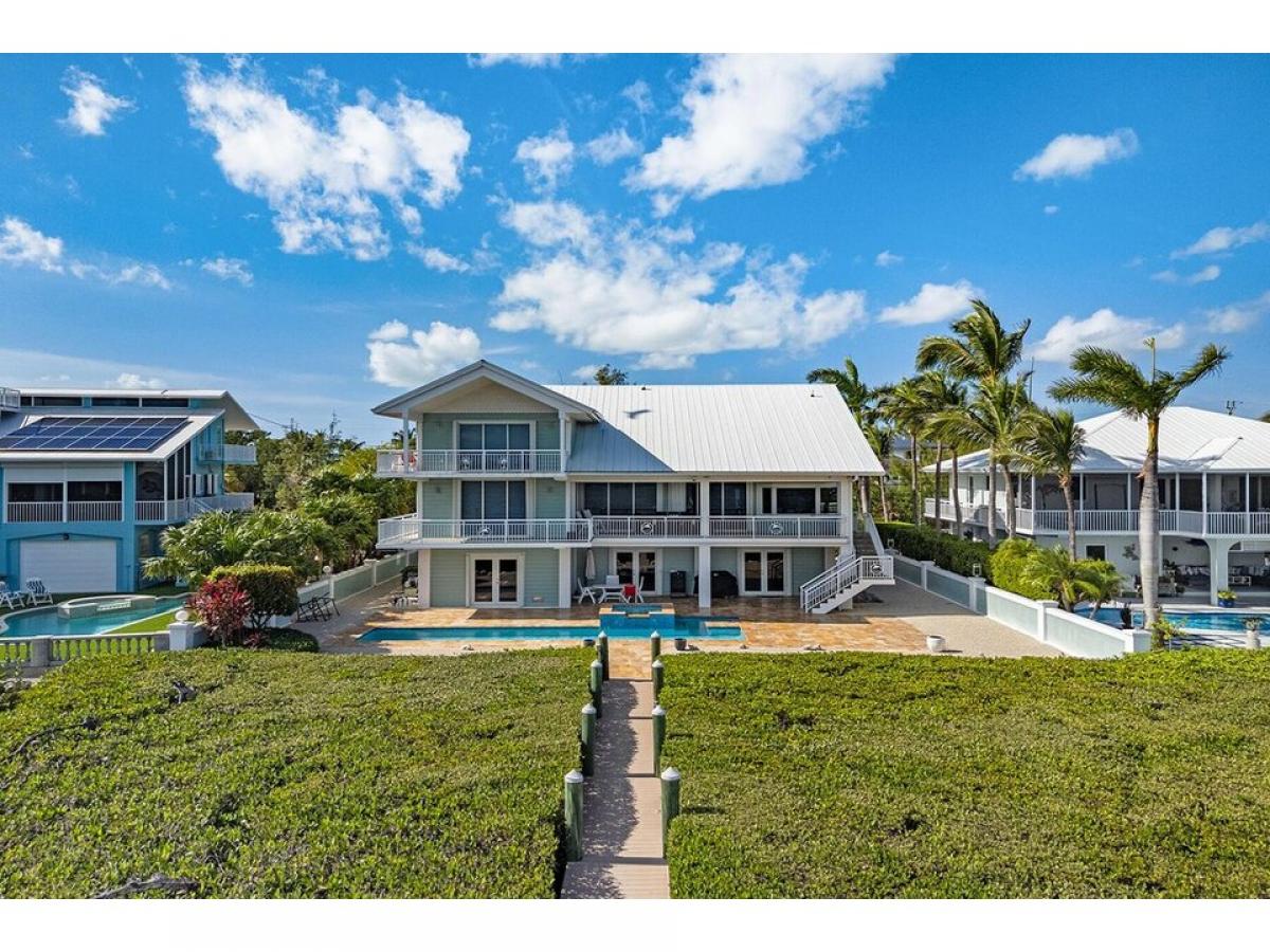 Enjoy this OPEN WATER luxury lifestyle in the coveted area of Buccaneer Point Estates in south Key Largo. Prepare to be captivated by this 5 bedroom, 4 bath extraordinary waterfront masterpiece that combines modern elegance and over 3,900 sq. ft of living space with a tropical paradise ambiance. Nestled on the shores of the bay, this custom-designed home has been thoughtfully crafted with discerning clients in mind. This rare offering promises a lifestyle beyond compare, where every moment is infused with the allure of the Florida Keys. As you step inside, ascend the interior stairs from the grand foyer to the main living level, where cathedral ceilings and an abundance of natural light create an inviting atmosphere. Revel in the breathtaking water views framed by expansive windows and doors, seamlessly blending the beauty of the outdoors with the comfort of your luxurious sanctuary. The heart of this residence lies within the great room, where a well-appointed double island creates the perfect setting for entertaining while the expansive porch areas beckon you to soak in the tranquil vistas. Designed to accommodate a large family or gathering of friends, this home boasts two master ensuites on each level, ensuring privacy and comfort for all. In addition, three guest bedrooms with adjoining bathrooms provide ample space for everyone to unwind and recharge. For water enthusiasts, this home is a dream come true with an inviting in-ground heated pool, surrounded by a custom paved deck area and lush privacy landscaping. The deep water pier dock features a boat lift and jet ski lift. The spacious four-car garage with dual doors, a second refrigerator, an ice maker, and the potential for a bar or summer kitchen makes it a versatile space for hosting unforgettable backyard gatherings.