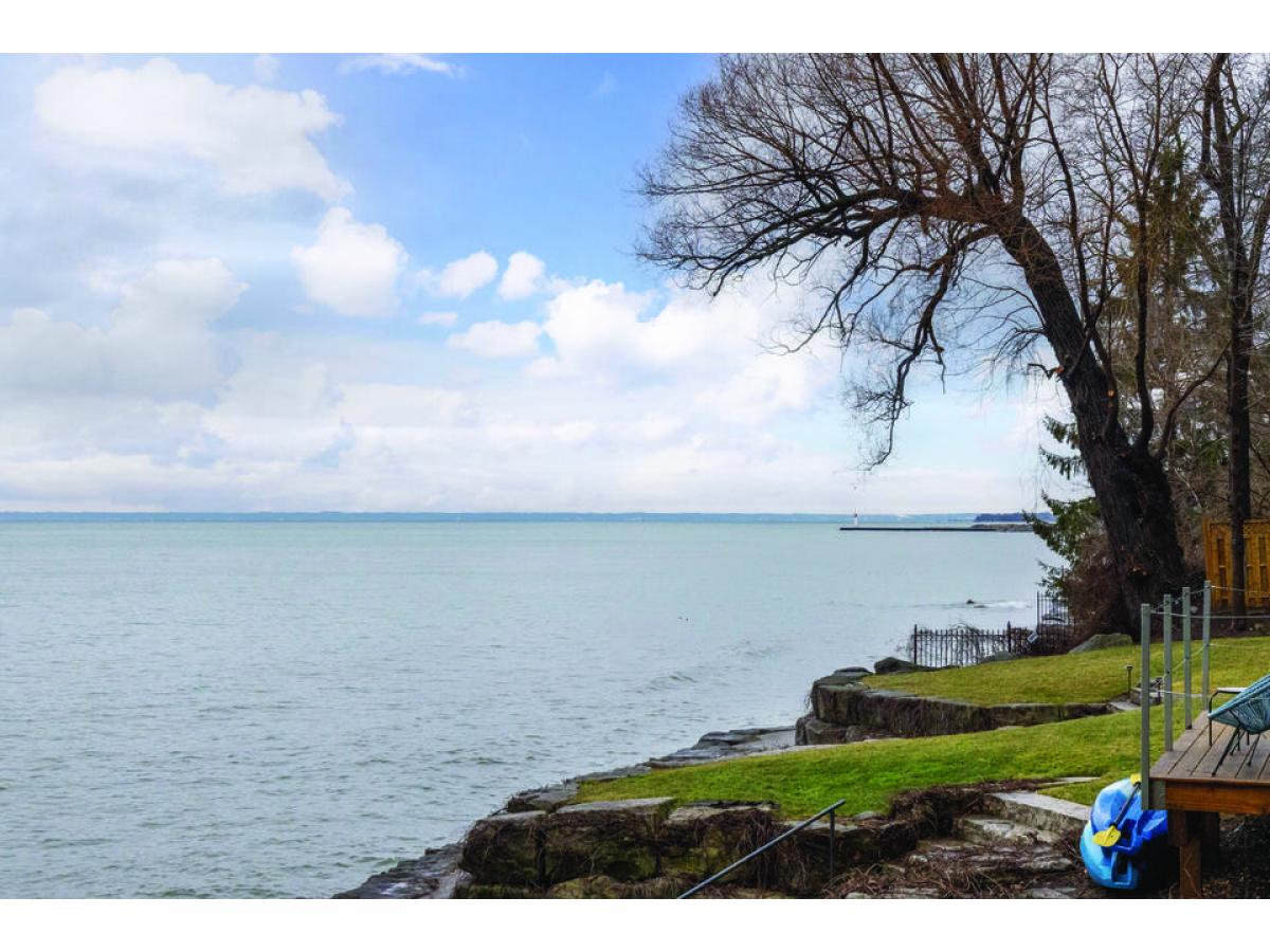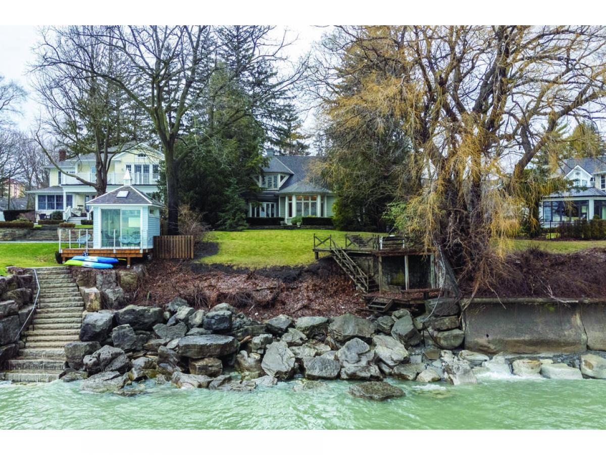 RIPARIAN LAKEFRONT IN DOWNTOWN OAKVILLE. The possibilities are endless in this secluded waterfront residence where location and privacy are second to none. Potential abounds - live in the existing house, renovate, or build a new custom home. Charming main floor offers a functional layout with an open concept living and dining room as well as a separate family room with views to the water! There are 2 main floor bedrooms, a 3-pc bathroom and a conveniently located main floor laundry room. Upstairs, the principal retreat provides a walk-in closet, 4-piece bathroom, 3 skylights, and a den with walkout to the upper flat roof where you can watch sailboats gliding across the Lake. Rare, detached double car garage. Located on an approximately 67ft x 170ft riparian lot, graced by mature trees and magnificent lake views off the 2-tiered deck to the water. Just a short stroll to the shops and restaurants of historic downtown Oakville. House and Chattels/Fixtures being sold in "as is