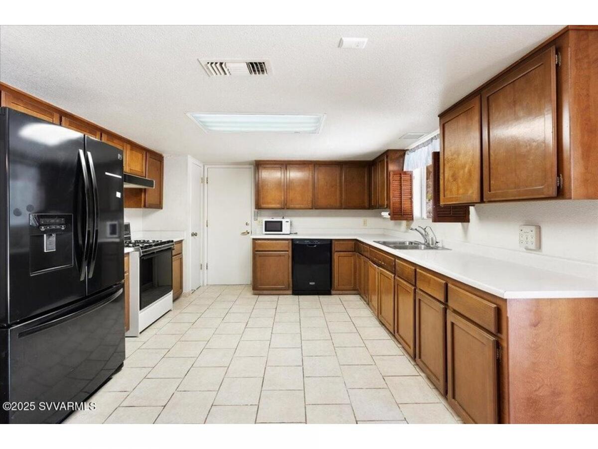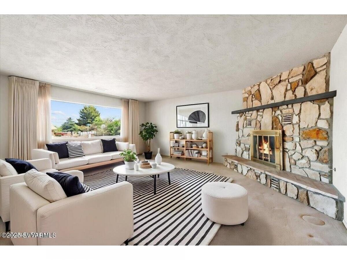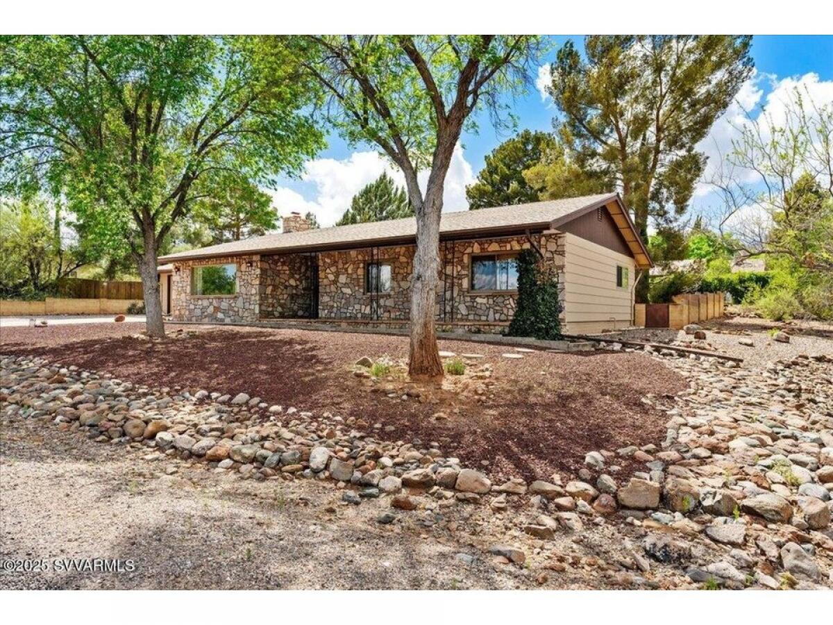 Classic Clarkdale rock sided home boasting a beautiful flagstone front patio, cozy rock fireplace and a spacious backyard that feels like a park! The kitchen has a gas stove, plenty of counter space and opens to the dining room. The dining room opens to the living room with a view out the huge picture window looking out to the front yard. The primary bedroom has a private bathroom and sliding glass doors to a backyard patio. Bedroom#039;s 2 and 3 have built-in desks and are located adjacent to the main bathroom. The fenced back yard is like a park with loads of space, great patio, attached shed and small garden area. Mature trees -front and back with space for RV parking. The garage has a workbench, storage and laundry area. This home is ready for a new owner#039;s personal touch.