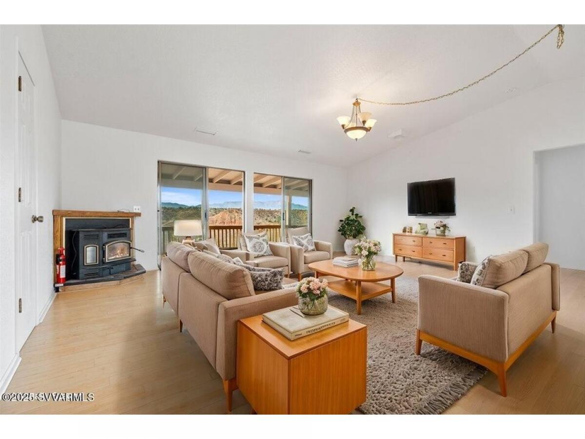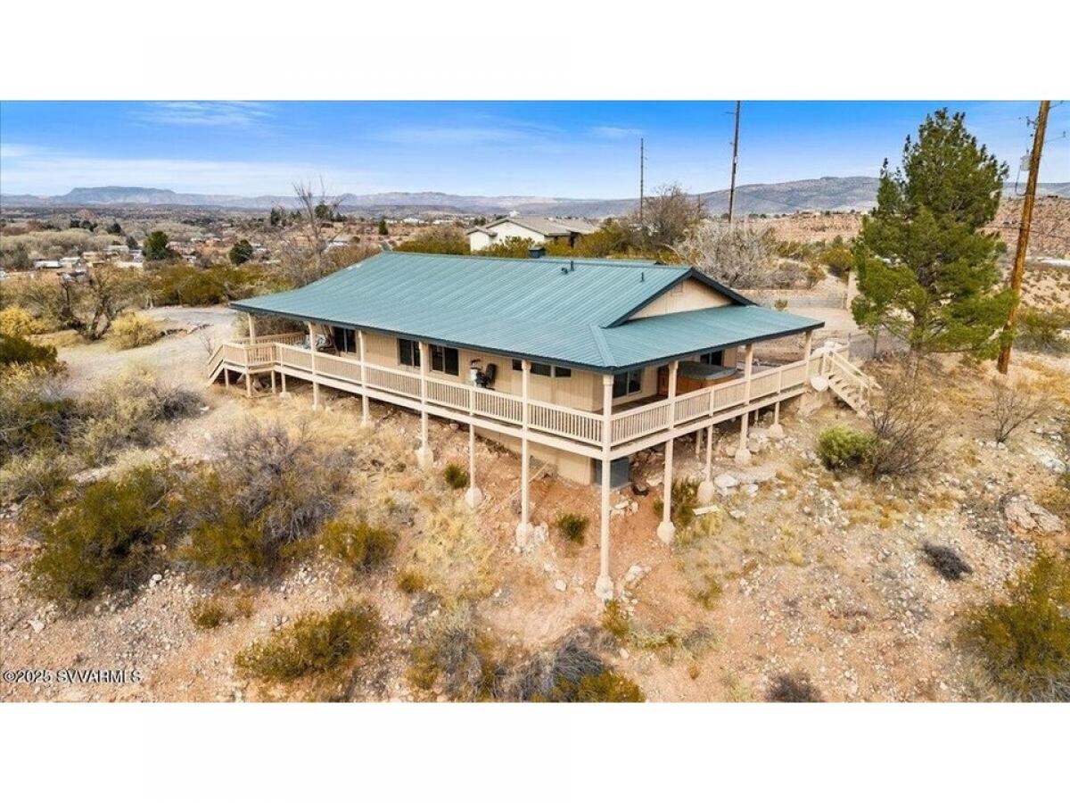 Opportunity of a lifetime! Cornville homes like this rarely become available: a panorama of every iconic view in Northern Arizona: Oak Creek, Sugarloaf Ruin site, Mingus Mountain, Jerome and Sedona#039;s red rocks all from this one home! This country home has vaulted ceilings, split floor plan and amazing views from both interior and exterior. Features: bamboo wood flooring, newly carpeted bedrooms, newly painted interior/exterior, cozy pellet stove, and a spa on the wrap around deck overlooking absolute beauty!In addition, the 2 car garage has AC and the property has 3 sheds: workshop with bench, artists studio with sink amp; AC and a shed for storage. Room for your garden or swimming pool, surrounded by meandering trails all just 20 minutes from Sedona amp; Cottonwood,