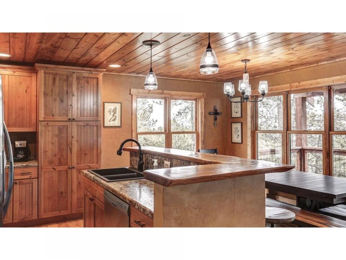 Contact listing agents Scot Munro 605-641-6482 or Heath Gran 605-209-2052 with Great Peaks Realty. Situated to overlook Gilded Mountain, and showcasing great views above the towering pines, this 5 bedroom, 3.5 bath cabin has it all. Gather with family and friends in the living room with huge vaulted ceiling, gas fireplace, and access to the expansive deck. The kitchen is well appointed with everything you will need for entertainment, plus the bar with metal accents and the adjoining dining area provides plenty of seating. Hardwood and tile flooring add a nice touch throughout. 5 Bedrooms are found in the cabin, including a true primary suite on the main floor. Downstairs, the family room includes a tiled wet bar area with mini-fridge amp; micro, plus sliding patio doors to the covered patio amp; hot tub area. 2 of the bedrooms are downstairs, one stacked with bunks. The upper loft also has 2 bedrooms, plus a landing space for you to add some personal touches.