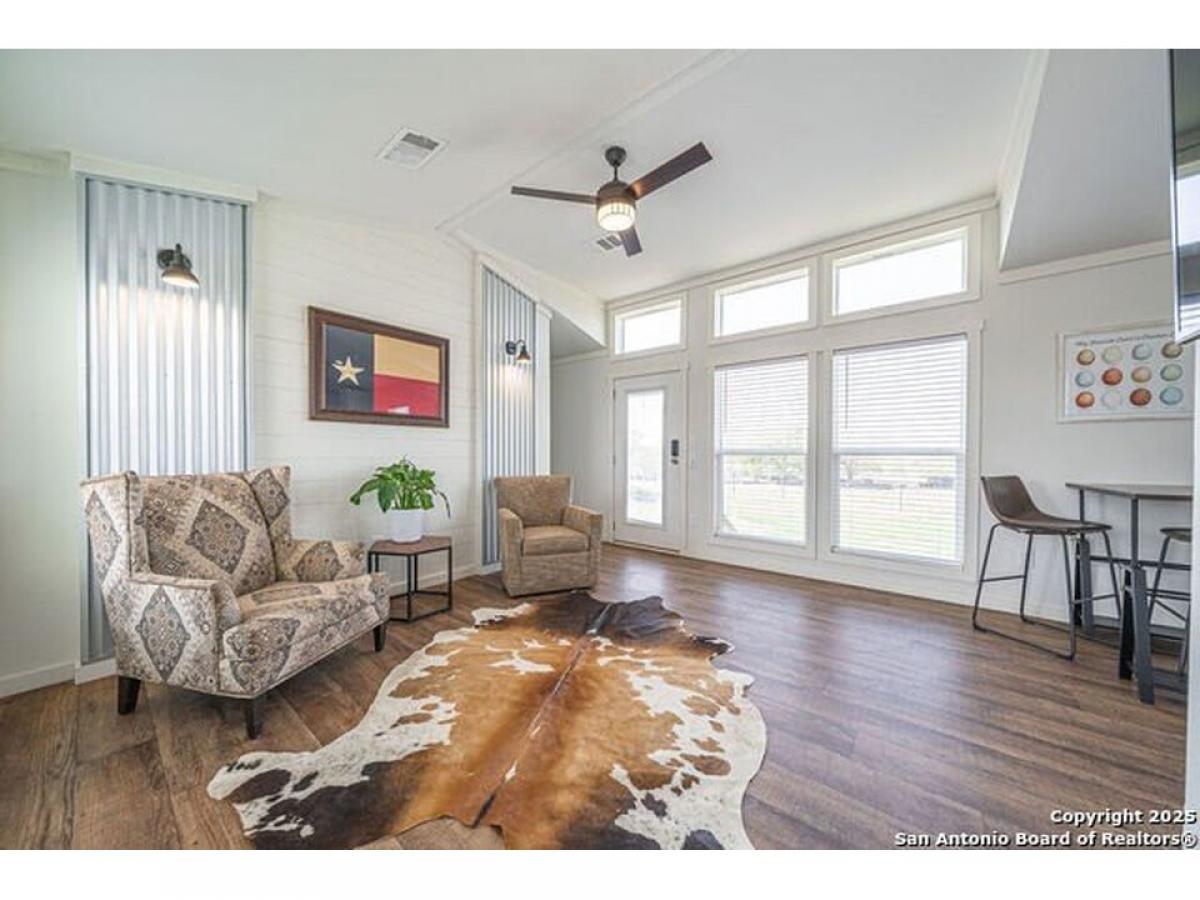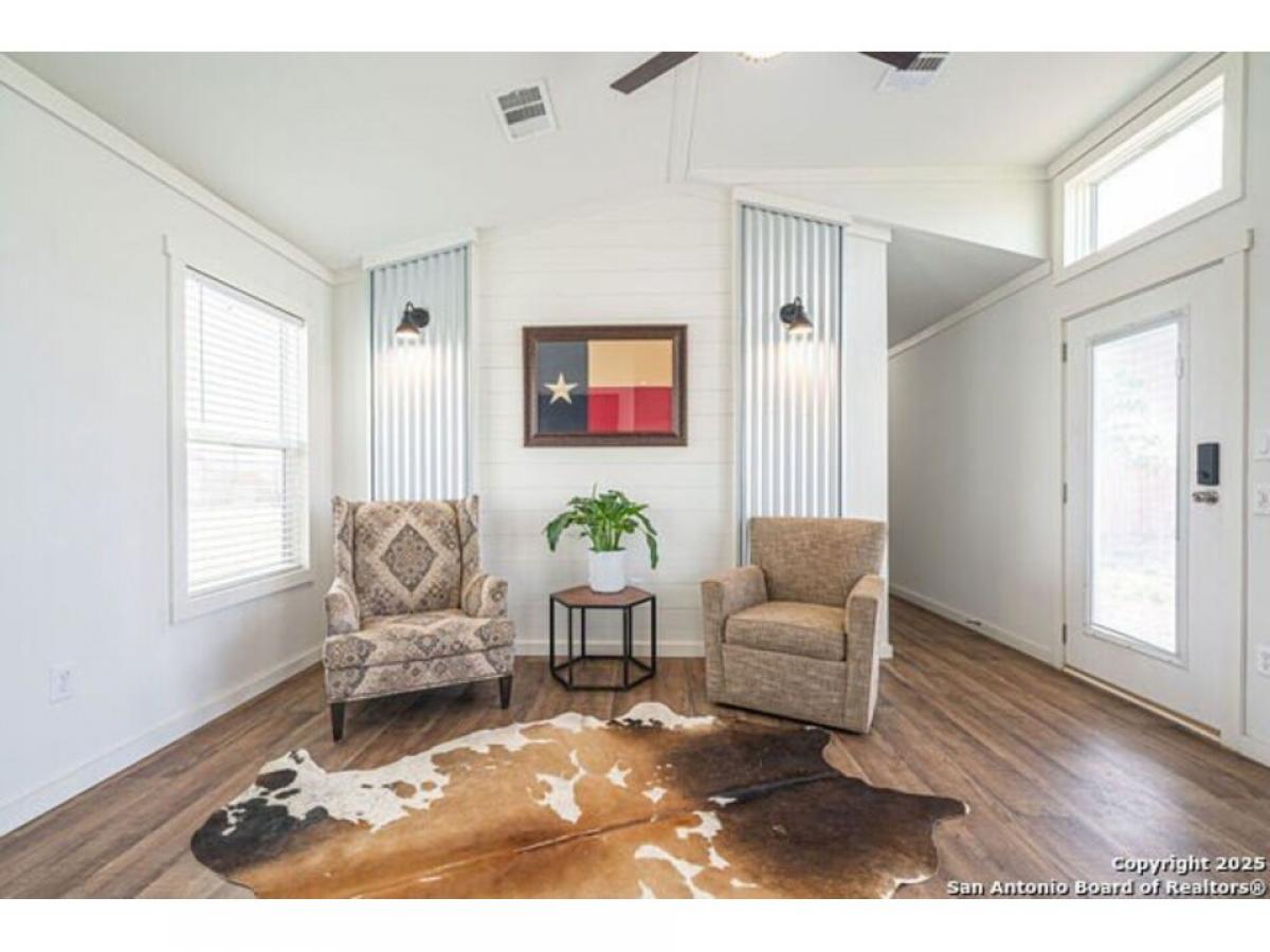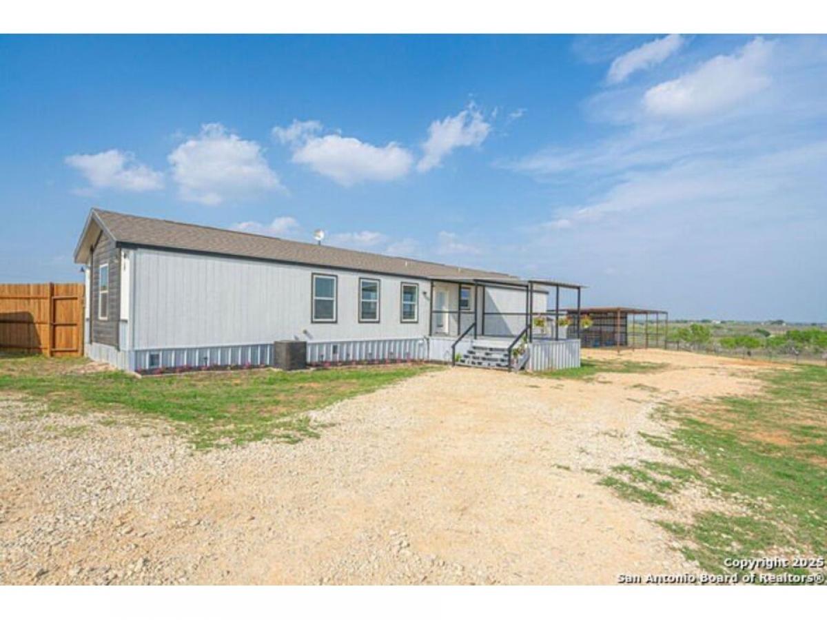 Breathtaking view from all areas of this property located in Sutherland Springs Texas. The 11.85 acres is already in the process of meeting the criteria to qualify for agricultural exemption (lower property tax) as the land is currently devoted to agricultural use and has been for 3 of the 5 years that are required. Some sheep are available for negotiation should you want to carry on the ag process as is. The laying hens and quail that reside in 3 separate quot;Aquot; frame coops, are also available. The drinking water well is 285 feet deep with a jet pump, distribution pump, 2 pressure tanks and a 1550-gallon storage tank all sitting inside an 12#039; x 20#039; insulated building, with electricity, on a slab. The entire perimeter of this property has upgraded fencing and all corners are marked. Strategically designed cross fencing allows for cows, horses and small animals. A 12#039; x 24#039; animal shelter is constructed in the field for protection from the elements. A wet weather pond is also positioned near the foot of the property. There is a newly constructed 25#039; x 50#039; pole barn that is currently housing sheep but could be used as a 4-car carport. Additionally, there is a 26#039; x 60#039; combination 2 car garage and 2 car carport with electricity. Here is where the 50-amp RV plug and the 220 volt/60-amp welding plug is housed. Now let us talk about the 2021 built mobile home. Voted Best Bathroom by customers! The Opal from Oak Creek Homes offers 3 bedroom 2 bath with beautiful clear dormers and tall ceilings that allow a ton of natural light in the family room and master bedroom. The primary ensuite offers a huge tile shower and separate soaking tub and walk-in closet. Additional benefits...Split Floorplan, Full Tape amp; Texture, Low-E Windows, HVAC Vents in Ceiling. Refrigerator with warranty will convey, washer and dryer are negotiable, window blinds will remain. Warranty on air conditioner, home structure, heating system, electrical and plumbing still in place. Rise internet dish already installed. Front yard is fenced, back porch is 16#039; x 16#039; covered deck with the frame constructed of metal tubing, concreted in the ground. The only thing wood on the deck is the flooring slats that are protected by metal roof. Additionally, a new 8-foot privacy fence secured with a 14-foot gate with lock has been installed. This property is approximately 14 miles to Floresville, 23 miles to Seguin, 37 miles from the San Antonio River walk, but after describing all that 213 Twin Lakes has to offer, why would anyone need to be anywhere but here?