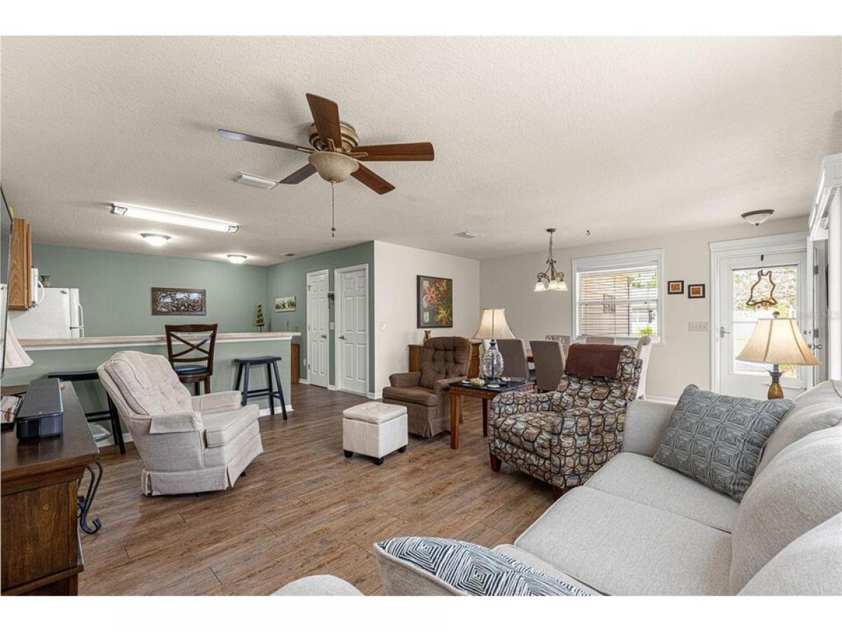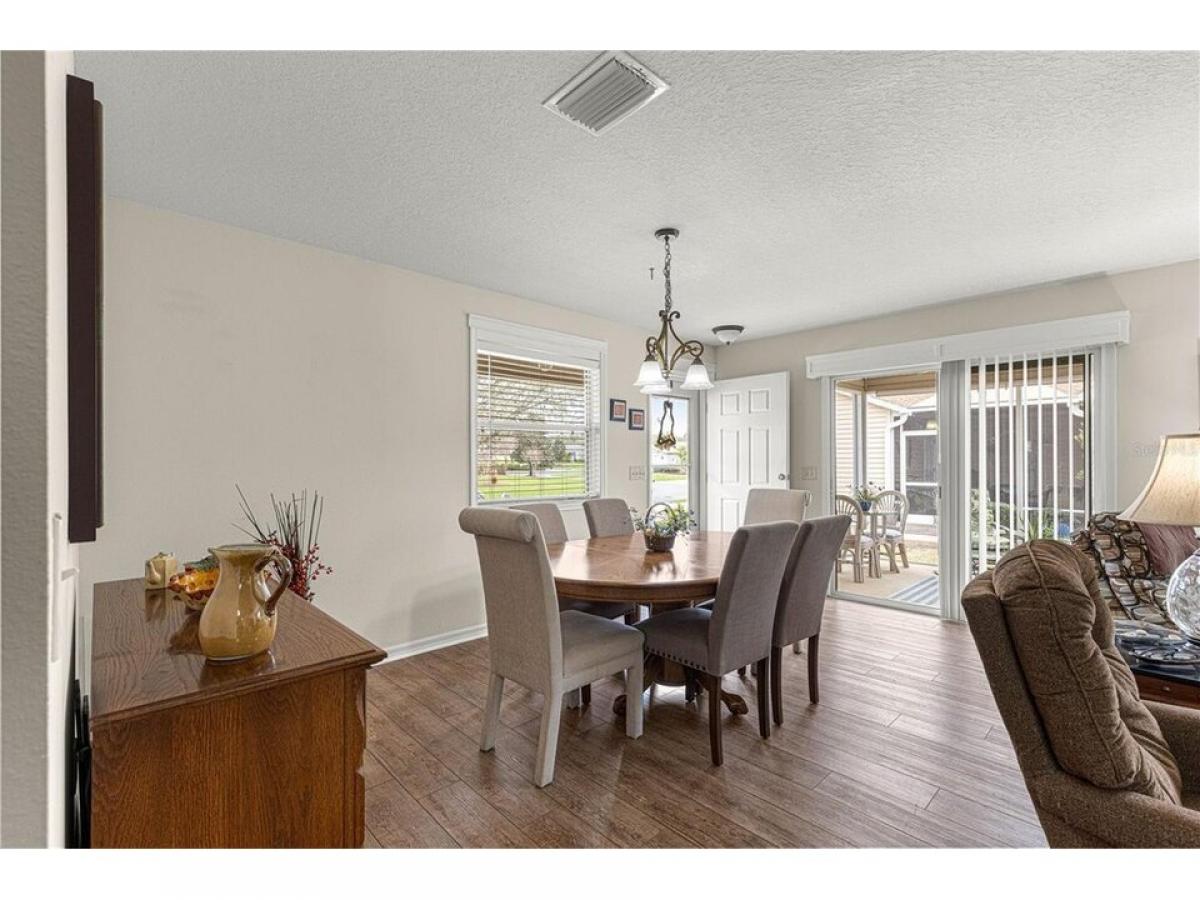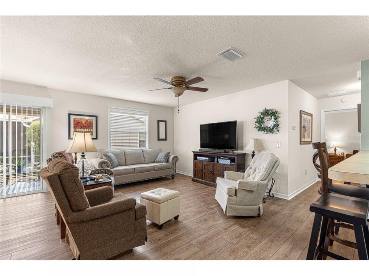 GOLF CART INCLUDED!! BOND PAID!!! This charming 2-bedroom, 2-bathroom COTTAGE HOME in the highly sought-after Village of Amelia is a true gem! As you approach the home, you#039;re welcomed by an extended front lanai with gutters, setting the stage for the beauty inside. Step inside to discover a beautifully appointed open floor plan with brand-new luxury vinyl plank flooring throughoutmdash;no carpet here! The custom window frames and cornices add a unique touch, enhancing the home#039;s appeal. The side patio is a perfect spot for relaxation, featuring a screened-in lanai and a concrete grilling patio, ideal for entertaining or enjoying peaceful outdoor moments. Location-wise, this home couldn#039;t be more perfect. It#039;s just minutes from Lake Sumter Landing and centrally located in the heart of The Villages. Plus, it#039;s conveniently close to Route 466, offering easy access to shopping, dining, entertainment, and much more. This home truly offers the best of both comfort and convenience!