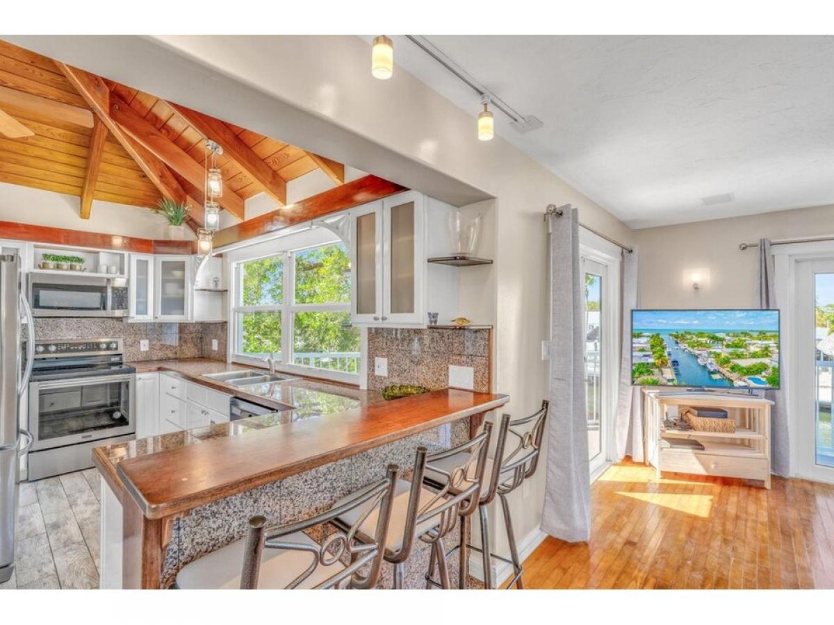Located in the heart of the Florida Keys, this 3-Bedroom, 2-Bathroom, 1,652 sq ft Pool home is perfectly located on a wide boating canal with direct gulf access. Enter into the Foyer where a floating staircase leads you to the bright and airy Great Room enhanced with wood floors and glass impact doors looking out to the water. The charming Kitchen features soaring wood ceilings, glass cabinetry, stainless appliances and breakfast bar that opens to the Living and Dining Areas. The main floor also hosts a full Bath and Bedroom boasting wood-beamed ceilings, wood floors and views of the water. Take the short set of stairs to the next level where you will find a 2nd Bedroom with cathedral wood ceilings and ensuite Bath. Another short set of stairs leads you to the 3rd Story which hosts a cozy loft-style Bedroom also with wood floors and soaring wood ceilings. Entertaining is a must on your waterfront lanai boasting a large heated and chilled Pool offering lots of decking and adjacent outdoor shower. The full length 60#039; concrete dock is enhanced with a 13,000 lb boat lift and easy Gulf Access. Storm ready with brand new impact doors and windows plus a metal roof. New ac, decking and paint. Offered Turnkey and rental ready! Garage plus lots of downstairs storage completes this tropical home.