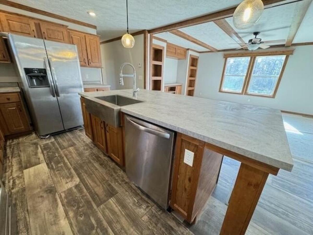 Farmhouse style open floor plan, ranch home with split bedroom design on a private cul-de-sac location. Farmhouse accents throughout home, new carpet, new decks, fresh paint. Entry foyer and large living room with built in entertainment center and accent beams, combo dining and eat in kitchen with large center island, with farmhouse style stainless steel apron sink, stainless steel appliances and European exhaust hood. Large laundry/mud room with laundry sink, walk in pantry and built in cabinets. Oversized master bedroom with en-suite bathroom with double vanities and huge double walk in shower. 2 additional guest bedrooms with guest bathroom. Sheetrock walls and raised roof in this deluxe home with new carpet and new decks. Home is eligible for 100% financing with USDA or VA loan, 96.5% financing with FHA loan also possible seller financing available.