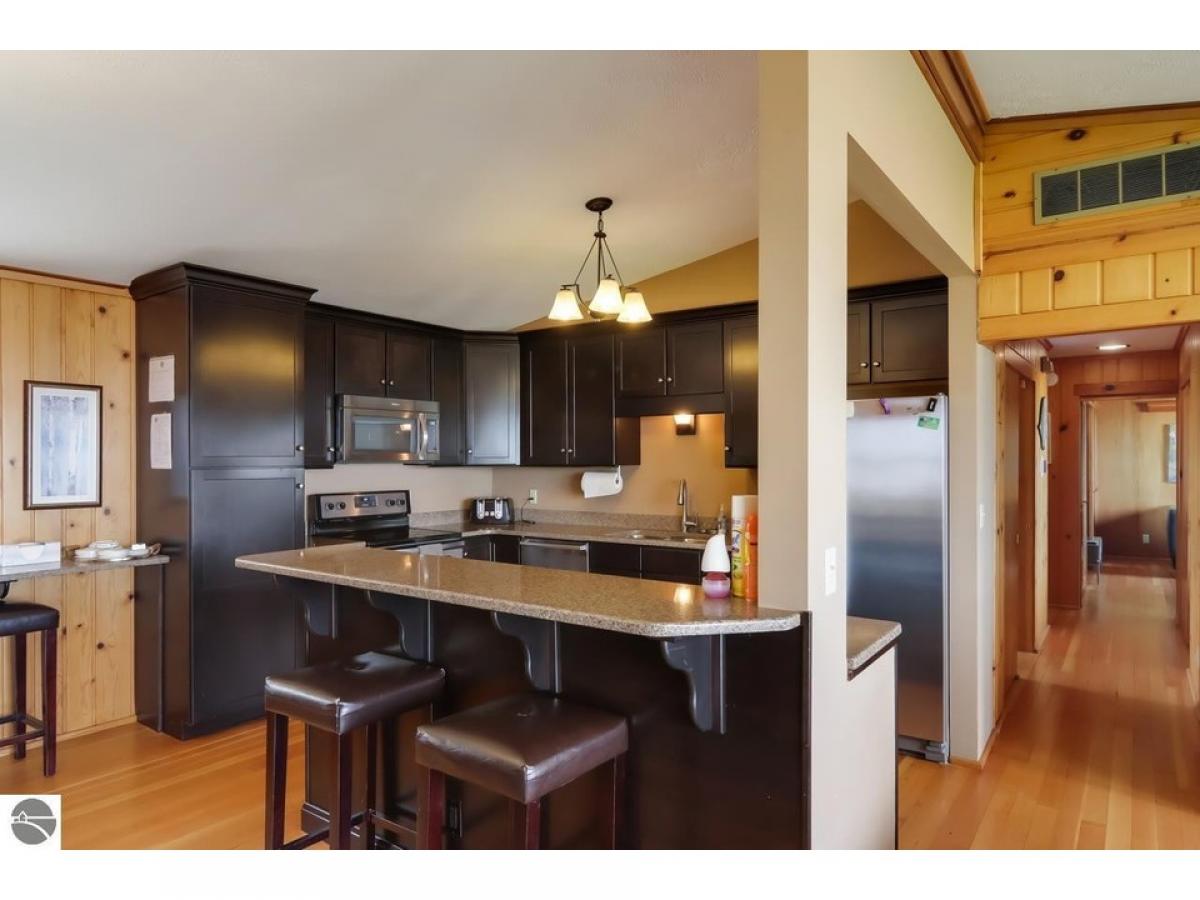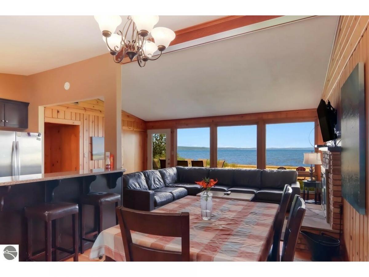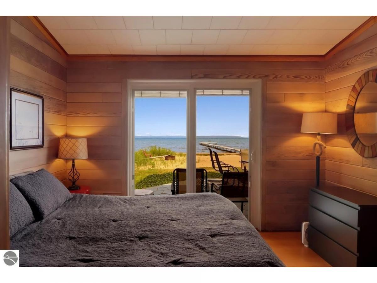 The golden sand beach of this East Bay home will have you feeling like you’re on vacation every day. The 106’ of private shoreline rivals the region’s best resorts. You will love the unobstructed views up the length of East Grand Traverse Bay from this spacious and well maintained home. The main floor features an open floor plan with a fireplace, beamed ceiling, updated kitchen, and direct access to a large deck. Rounding off the main floor is a laundry room, three bedrooms, two baths, and a den. Entertaining and hosting guests will be easy – upstairs you will find an additional kitchen, living area with fireplace, laundry room, two beds, and two baths. Large windows and glass doors on the water side of the home take full advantage of the views. This home is ideally situated on the east side of Traverse City and just a short drive to downtown, horse shows, Cherry Capital Airport, Old Mission Peninsula, and all that the region has to offer.