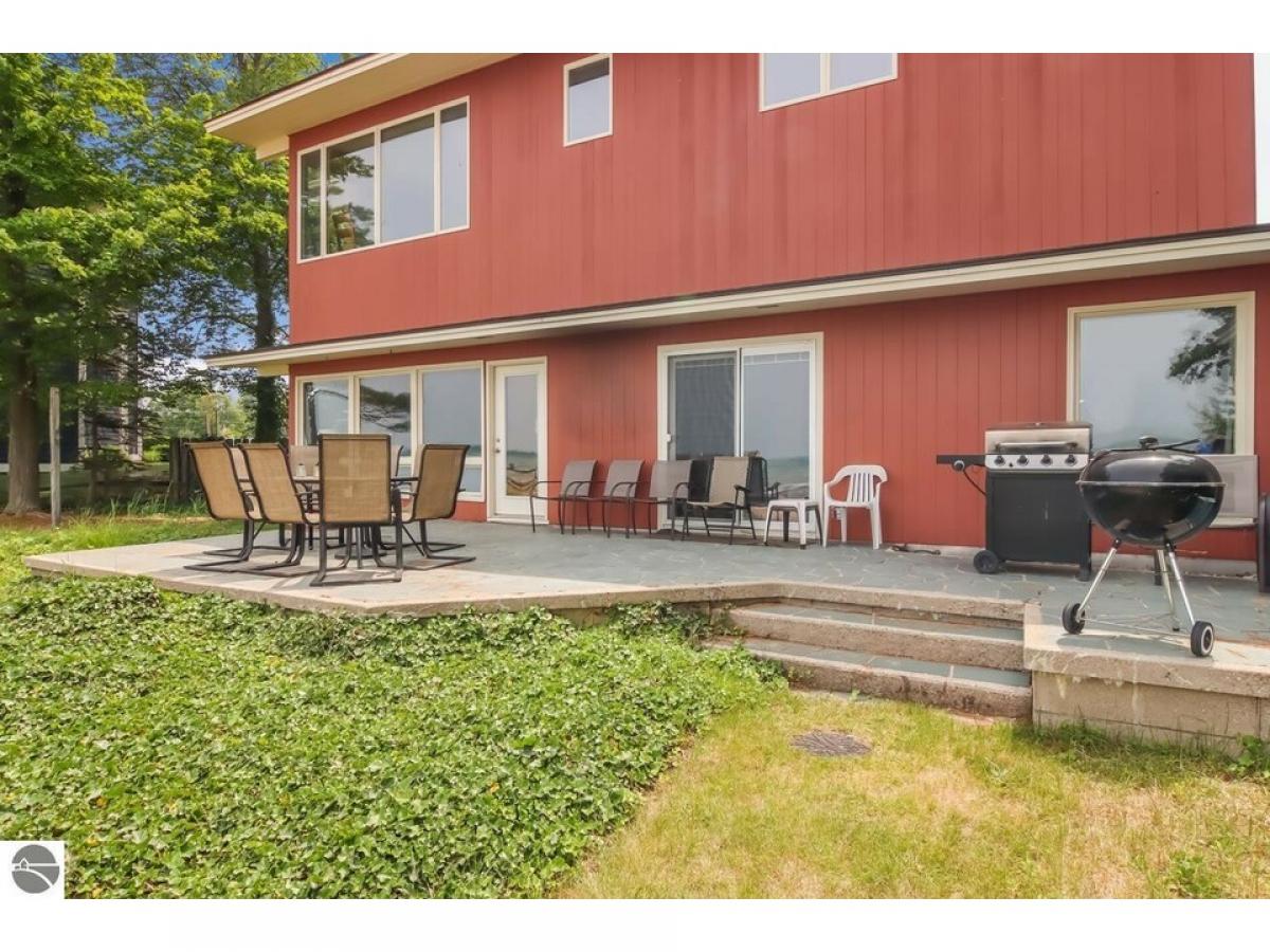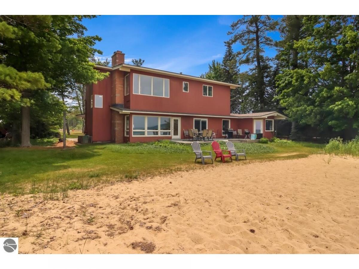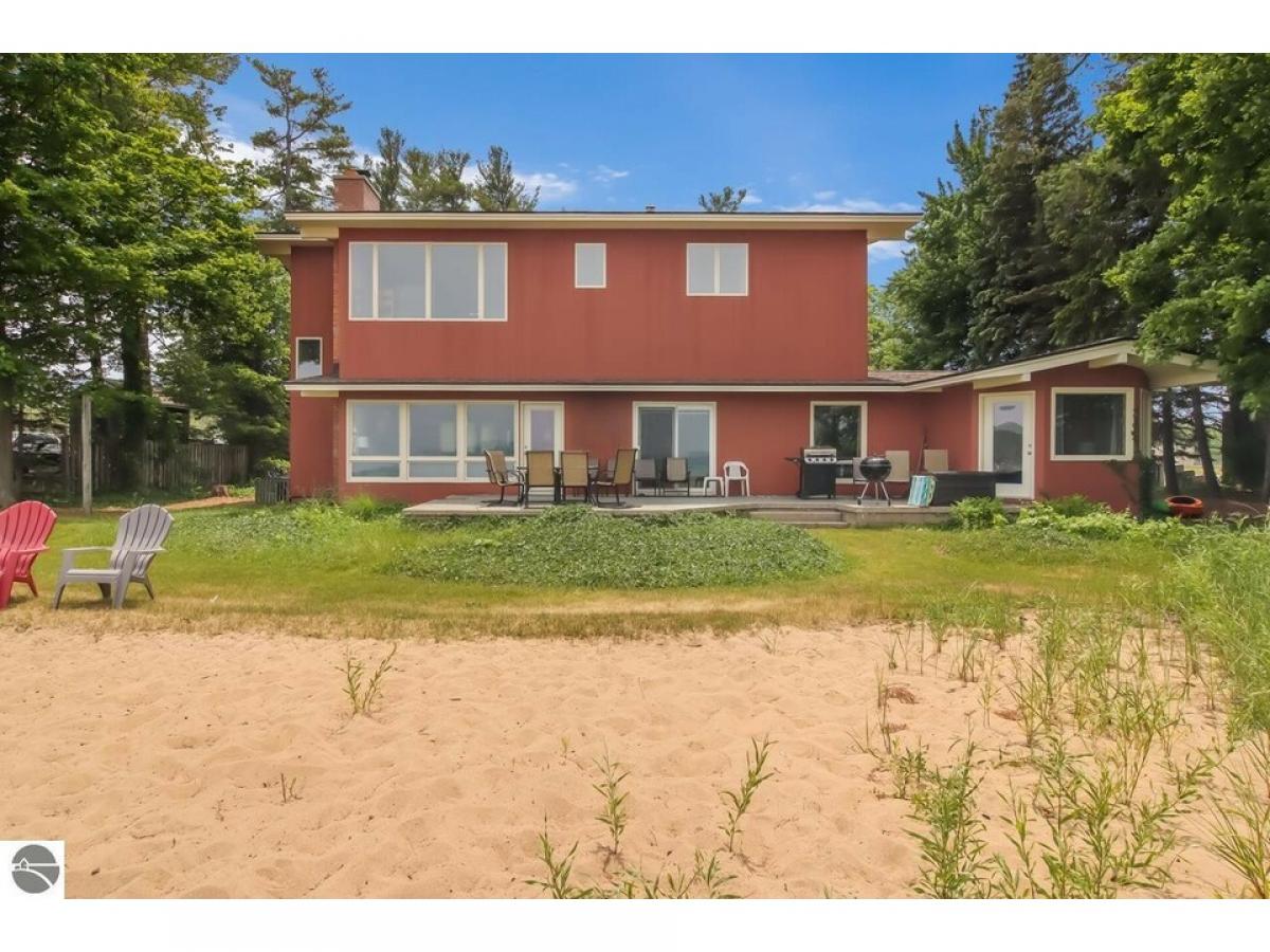 The golden sand beach of this East Bay home will have you feeling like you’re on vacation every day. The 106’ of private shoreline rivals the region’s best resorts. You will love the unobstructed views up the length of East Grand Traverse Bay from this spacious and well maintained home. The main floor features an open floor plan with a fireplace, beamed ceiling, updated kitchen, and direct access to a large deck. Rounding off the main floor is a laundry room, three bedrooms, two baths, and a den. Entertaining and hosting guests will be easy – upstairs you will find an additional kitchen, living area with fireplace, laundry room, two beds, and two baths. Large windows and glass doors on the water side of the home take full advantage of the views. This home is ideally situated on the east side of Traverse City and just a short drive to downtown, horse shows, Cherry Capital Airport, Old Mission Peninsula, and all that the region has to offer.