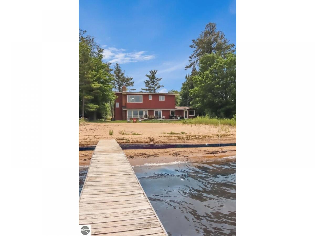 The golden sand beach of this East Bay home will have you feeling like you’re on vacation every day. The 106’ of private shoreline rivals the region’s best resorts. You will love the unobstructed views up the length of East Grand Traverse Bay from this spacious and well maintained home. The main floor features an open floor plan with a fireplace, beamed ceiling, updated kitchen, and direct access to a large deck. Rounding off the main floor is a laundry room, three bedrooms, two baths, and a den. Entertaining and hosting guests will be easy – upstairs you will find an additional kitchen, living area with fireplace, laundry room, two beds, and two baths. Large windows and glass doors on the water side of the home take full advantage of the views. This home is ideally situated on the east side of Traverse City and just a short drive to downtown, horse shows, Cherry Capital Airport, Old Mission Peninsula, and all that the region has to offer.
