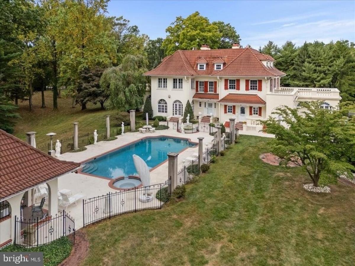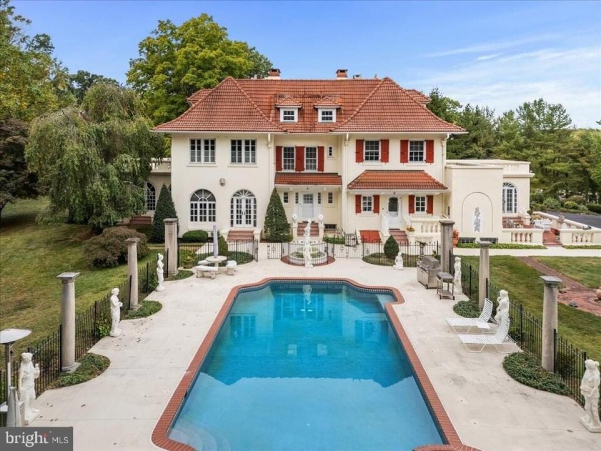 The Barrens in Doylestown, Bucks County is an impressive approx. 8,700-square-foot prominent mansion built over a three years span between 1912 and 1915, featuring reinforced concrete construction and situated on an unspoiled 3.4 acres. The property includes an in-ground pool, tennis court, detached three-car garage and beautifully manicured grounds. The home combines classic architectural details with modern amenities, creating a timeless and elegant living space. This extraordinary home presents a gated entrance with a circular driveway. Starting at the impressive front porch you then enter the grand foyer with a turned staircase. The stately living room features a gas fireplace with Mercer tiles and leads to a sunroom with a bar and French doors opening to the backyard. There is a 2nd sunroom with French doors to the pool area. There is a formal dining room and a spacious private office. The kitchen features custom cabinetry and a large butler#039;s pantry all adjacent to an expansive breakfast room/dining area. The second floor consists of 4 bedrooms and 2.5 bathrooms, including a luxurious primary suite with a fireplace, private balcony, and ensuite bath.The third floor offers 4 additional bedrooms, full bath and a sitting room, while the lower level includes 2,000+/- square feet of space with a wine cellar. A detached 3-car garage features a 500-square-foot finished 2nd floor (unheated). The grounds consist of a brick patio, private tennis court, pool with cabana, fountains and a pergola and Mercer#039;s tile accents. This extraordinary home and remarkable property must be seen to truly be appreciated. With countless features and unique details, it#039;s impossible to capture them all in a description.