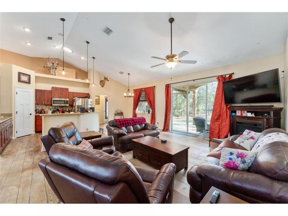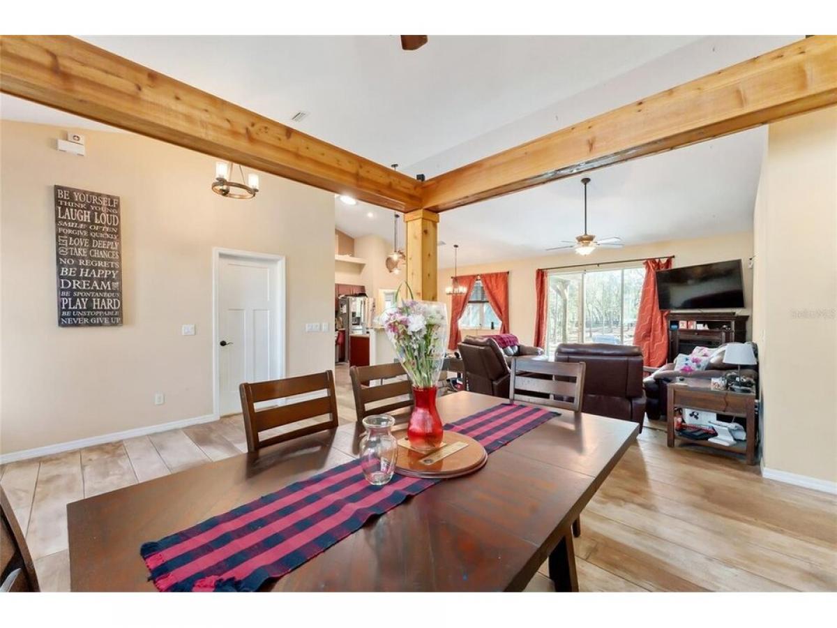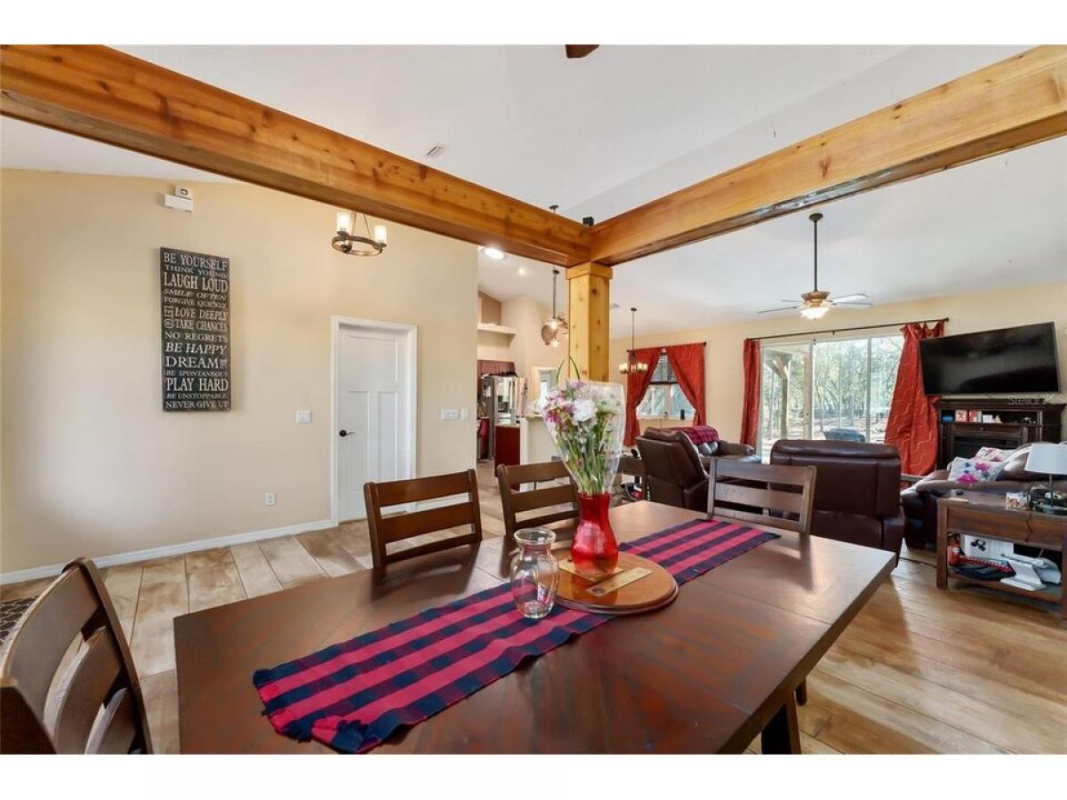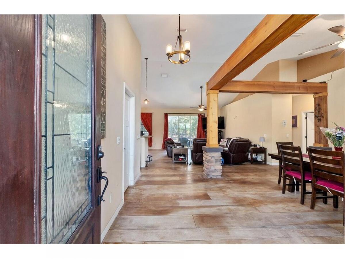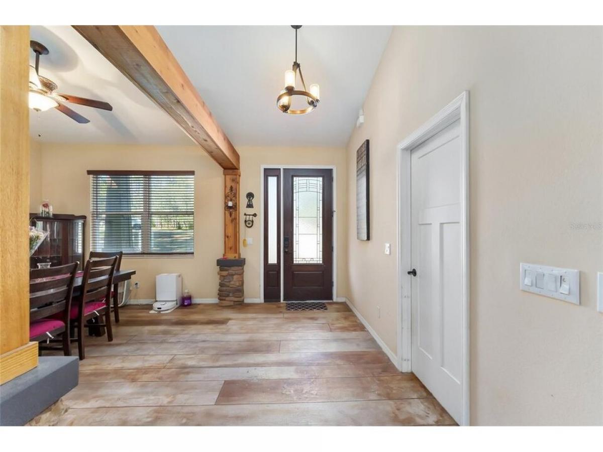 Great Location!! Must see!! Charming 3/2.5 Custom Craftsman Style home on 1.07 Beautiful amp; Serene Acres in Oak Hill, one of Sumter county#039;s Premier neighborhoods!! This Property is on a Corner lot ...a huge bonus adding privacy and peacefulness to it#039;s location. This home features an Open Floor plan as well as split floor plan. This home has lots of upgrades including the Stately Wood Entrance with large Craftsman style Columns with Wood amp; Stone and large wood beams above in the dining room attached to gorgeous wood amp; stone columns giving that area a #039;separate#039; room feel also adding warmth to the entire entrance as you enter the front door. The kitchen has Granite countertops, beautiful Cherry wood, soft-close cabinets in the Kitchen and master bath, Butler pantry, double oven, amp; one of the most unique features of this home are the gorgeous decorative concrete floors throughout that boasts an authentic barnwood look that the owners took time and pride to capture and make it look real! This home is wired for surround sound in the living room and plumbed for a whole house central vac system as well. The Master bath offers a Garden tub jetted amp; heated amp; a wonderful place to unwind and relax at the end of a long day! The garage is super-sized amp; offers plenty or room amp; storage and the attic is built so that you can walk around and use for additional storage. The spare bedrooms add additional storage and some of the furniture pieces in the Craft room will be included in the purchase of the home. There are 12#039; sliders that open to the outdoor patio area with soft seating covered by a Pergola attached also to a covered porch area with a Hot Tub amp; this is a great place for entertaining amp; having bar-b-ques, enjoying family amp; friends gatherings while soaking in the ambiance that this backyard offers! The Hot Tub is just 2 yrs old amp; the Sellers will be including it with the sale of the Home. Oak Hill is conveniently located amp; convenient to I-75, The Fl Turnpike, The Villages, Middleton, Inverness, Homosassa, amp; Crystal River as well as just minutes to the Ocala area. Don#039;t miss out on this beautiful home amp; property!