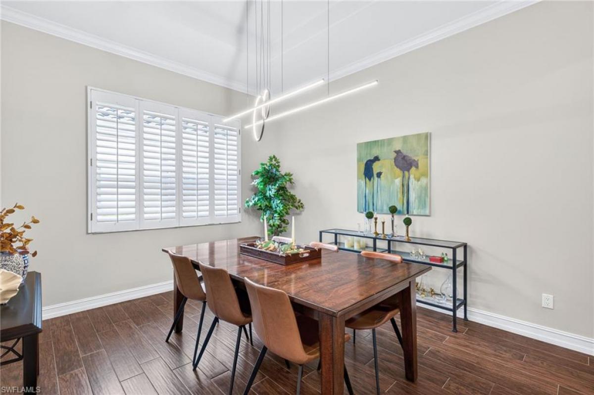 Beautifully renovated home in the prestigious Masters section of Pelican Sound! This desirable Greenbriar floor plan offers elegant upgrades throughout, including crown molding, plantation shutters, and a wide open great room. The gourmet kitchen features granite and quartz countertops, Bosch stainless steel appliances, a glass cooktop, pull-out pantry drawers, and island storage. The living area boasts ceramic tile, while bedrooms and the den showcase wood-look tile for a warm, inviting feel. The primary suite includes lanai access, a tray ceiling, custom walk-in closet, and a stunning en suite bath with dual sinks, walk-in shower, free-standing tub, and pull-out storage. Two guest bedrooms share an updated bath with a frameless shower door and quartz countertop. Step outside to a magnificent lanai with travertine tile, picture-frame screen, and a sparkling pool with solar and electric heating—overlooking the fifth hole of the Lakes course. Hurricane-impact windows and electric storm shades provide peace of mind. Additional features include a two-car garage with epoxy flooring, new pavers on the driveway and a water softening system. If you are looking for an active lifestyle look no further: 27 holes of Championship golf, 14 pickleball, 8 tennis and 6 bocce courts. State of the art fitness center that is professionally staffed. Pelican Sound is nestled up to the Estero River with access to the Gulf. The community offers dry boat storage, kayaks, canoes and paddle boarding, along with a shuttle boat to Lovers Key State Beach Park. Minutes from RSW International airport and surrounded by fabulous shopping and restaurants. Start Living The Dream!