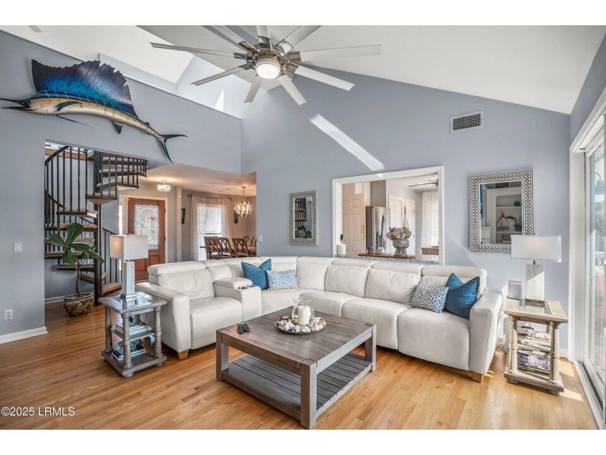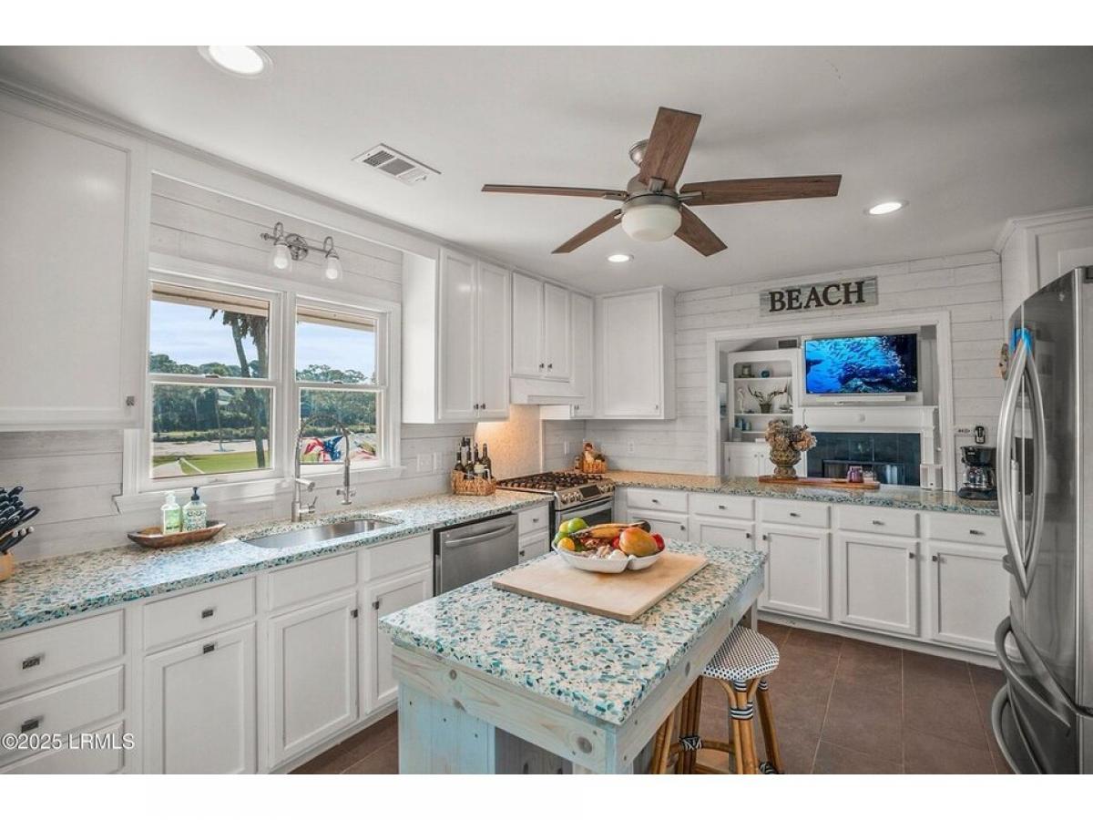 Discover your dream Coastal Retreat with this spectacular spacious 4 bedroom, 2 bath home with breathtaking views of the 15th and 16th holes of Ocean Point Golf Course which is perfect for full time occupancy, family vacation home or rental investment. This generous 2207 square feet of living space with owners suite located on the main living floor is perfect for anyone who loves to entertain! The home#039;s open and bright layout allows for natural light to flood the space, creating a warm and inviting atmosphere! The spacious kitchen opens up to the great room and adjacent to the dining room. The kitchen has stainless steel appliances, beautiful Terrazzo counter tops and a dumbwaiter to move groceries or freight from the 2 bay garage below. Discover your dream Coastal Retreat with this spectacular spacious 4 bedroom, 2 bath home with breathtaking views of the 15th and 16th holes of Ocean Point Golf Course which is perfect for full time occupancy, family vacation home or rental investment. This generous 2,474 square feet of living space with owners suite located on the main living floor is perfect for anyone who loves to entertain! The home#039;s open and bright layout allows for natural light to flood the space, creating a warm and inviting atmosphere! The spacious kitchen opens up to the great room and adjacent to the dining room. The kitchen has stainless steel appliances, beautiful Terrazzo counter tops and a dumbwaiter to move groceries or freight from the 2 bay garage below. From the moment you enter this Lowcountry beach style home you are met with lovely hardwood floors and a beautiful staircase to the loft bedroom and exercise zone, dining area and great room with fire place. The outdoor living space is so serene with breathtaking views for enjoying morning coffees or hosting evening dinners and cookouts. The expansive underneath covered space is perfect for another entertainment area and has plenty of storage for bikes, beach toys and parking for cars and golf carts. This home sits far back on a cul-de-sac allowing for peace and tranquility, but still a short walk or golf cart drive to all of the fabulous Fripp Island amenities: Beach Club, Restaurant(s), Tennis and Pickle ball Courts, Pool(s), two Golf Courses, Marina... This 3+ miles of tranquil and unadulterated beach community is perfect for orning and sunset walks, family gatherings and beach activities. Contently located Historic Downtown Beaufort, Savannah and Charleston this Fripp Island home is just for you. This home is offered as furnished (high end furnishings) minus the exclusion list, making it a true gem and priced for immediate turn-key occupancy.
