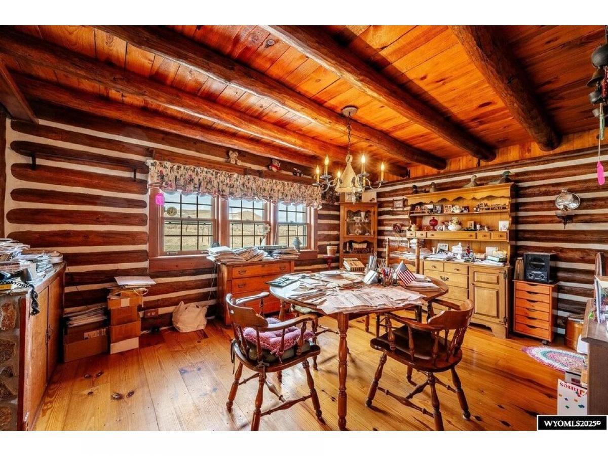 Discover this charming 2BD/2BA log home nestled in the serene Wagon Wheel Subdivision on a 5 acres lot surrounded by trees. The home features a spacious loft, perfect for a home office or additional living space. The property includes a two car detached garage and separate shed with ample storage and workspace. Call Dolly Belus today to view this property at 307-751-8261.