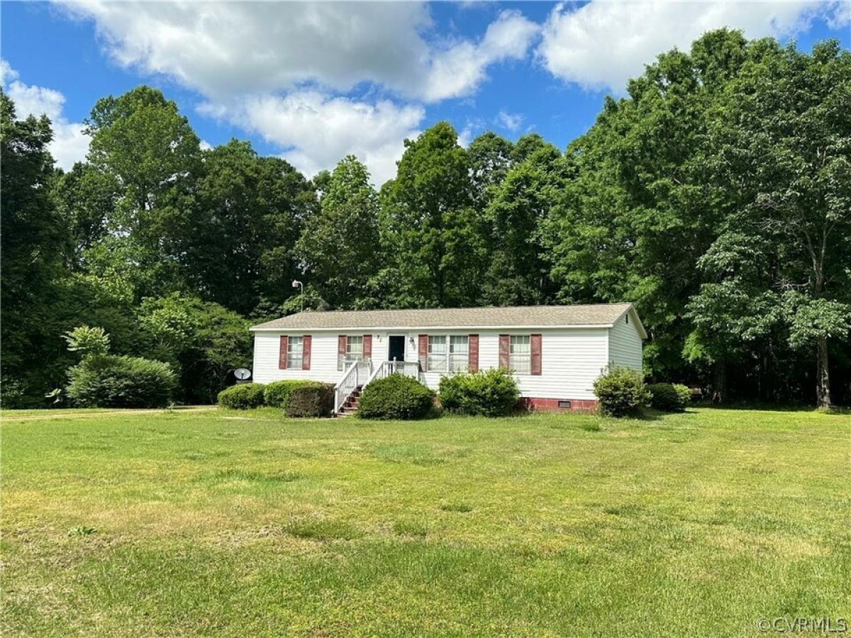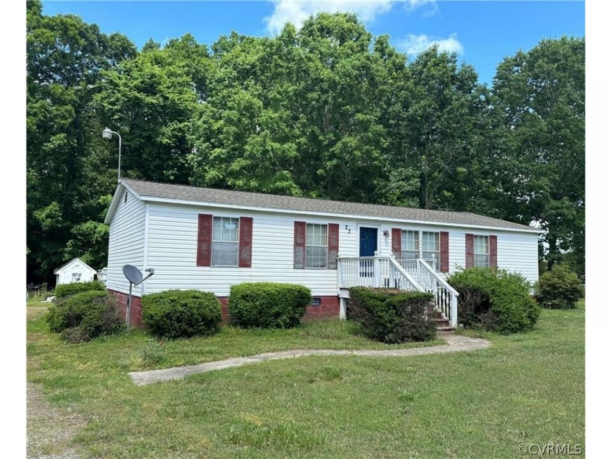 Welcome to 22 Sweet Air Lane in rural King William County. This manufactured home is on a permanent block foundation and offers the next owner the possibility of easy sweat equity or to remove the home and build their dream home on the beautiful 5-acre lot with an open & level home site. The 2001 ranch-style home consists of 3 bedrooms & 2 bathrooms over 1,150 sqft of living space. Located on a quiet cul-de-sac rural neighborhood street and situated amongst farms & densely wooded land. Located just 14 minutes to Central Garage for shopping and restaurants, while being only 35 minutes to Mechanicsville & 50 minutes to Downtown Richmond. The property is sold AS IS. Great for an investor or first-time buyer.