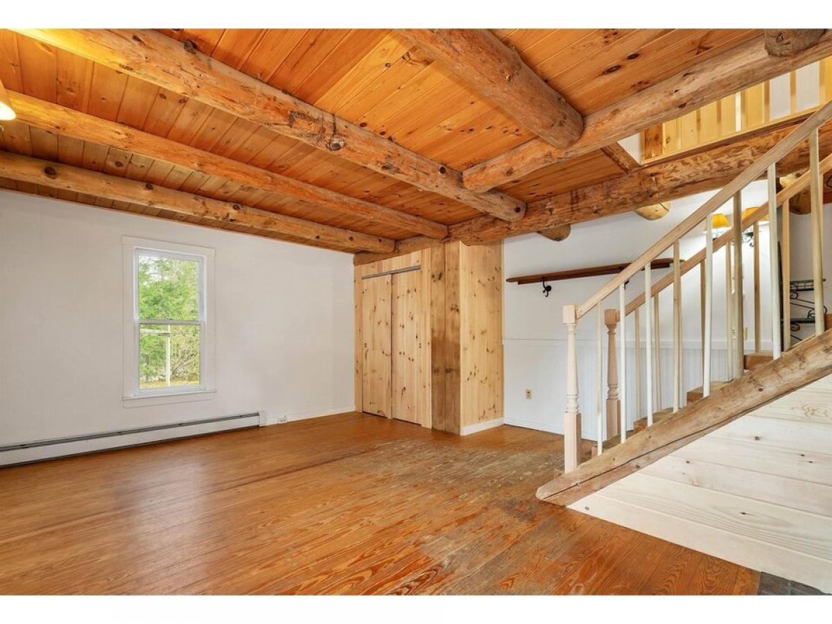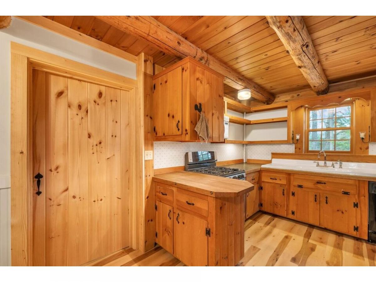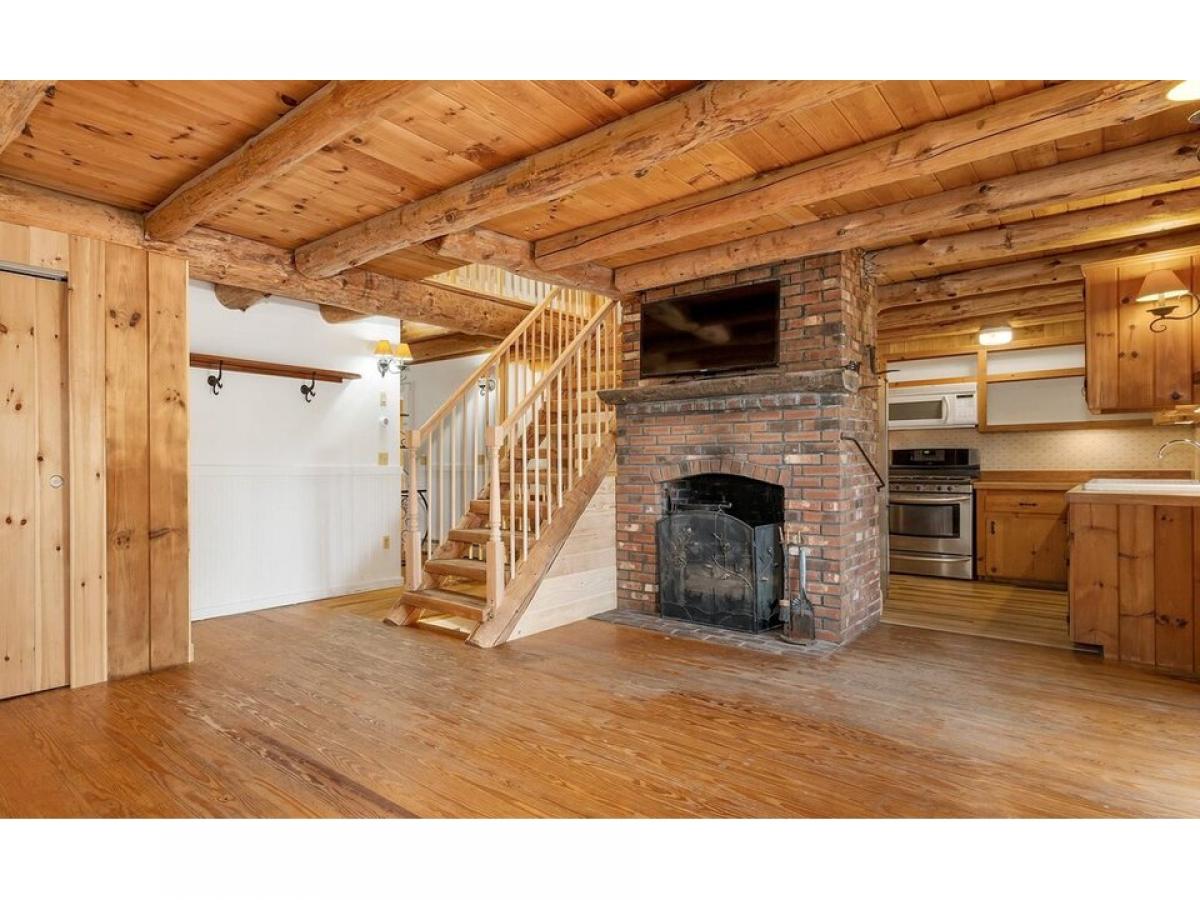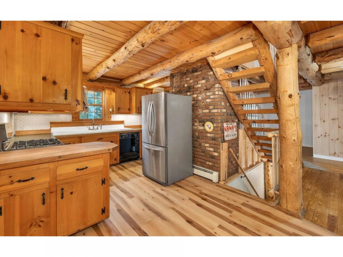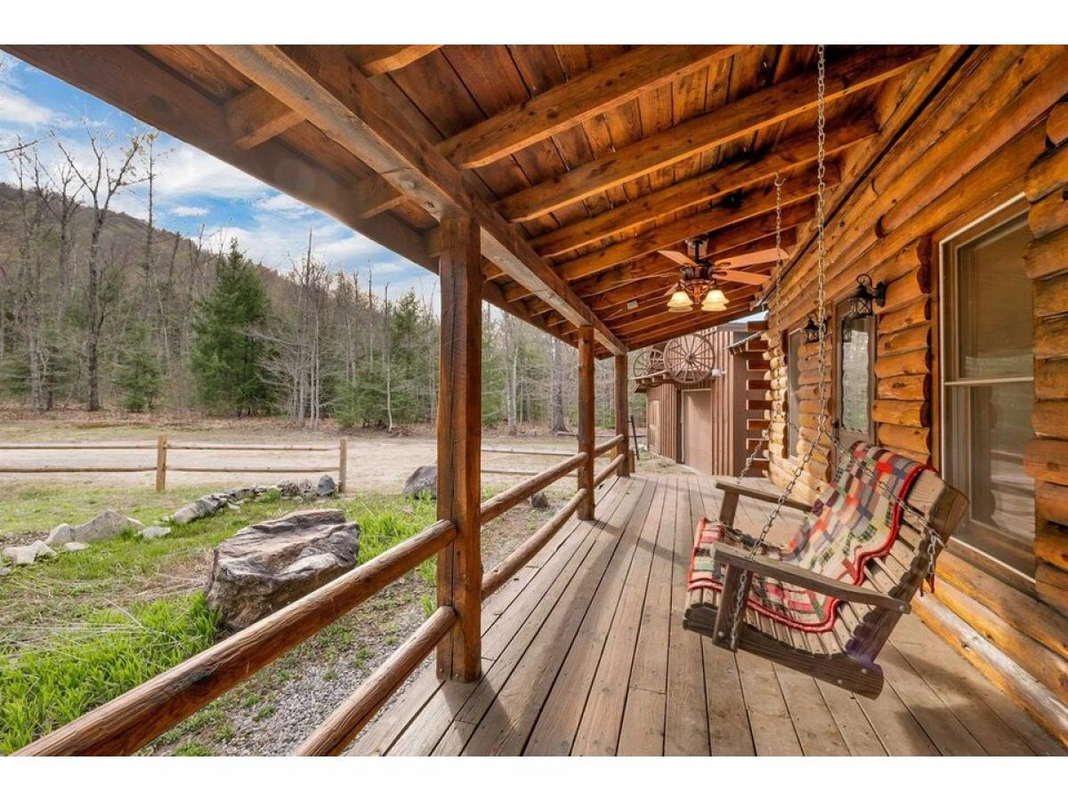 Log cabin retreat next to snowmobile trail with views of Stinson Mountain. Spacious southerly facing covered front porch with fire pit to enjoy evenings year round. Enjoy the sound of water burbling from a creek nearby across the road. Open floor plan around a central wood burning fireplace opening out on to a spacious deck with filtered views of the mountains. Log cabin interior features a bedroom and 5 piece bath on the first floor, along with a rustic kitchen with farmerrsquo;s sink, and living room with fireplace. 1st floor bonus room and oversized garage with unfinished storage above. 3 recently renovated bedrooms and a full bath on the second floor (3 BR septic). Full basement wired and studded for potential additional living area with a wood stove and walkout bulkhead. Brand new forced hot water heating system. Minutes from Rumney Rocks, Polar Caves, snowmobiling, Ragged Ski Area, and Plymouth.