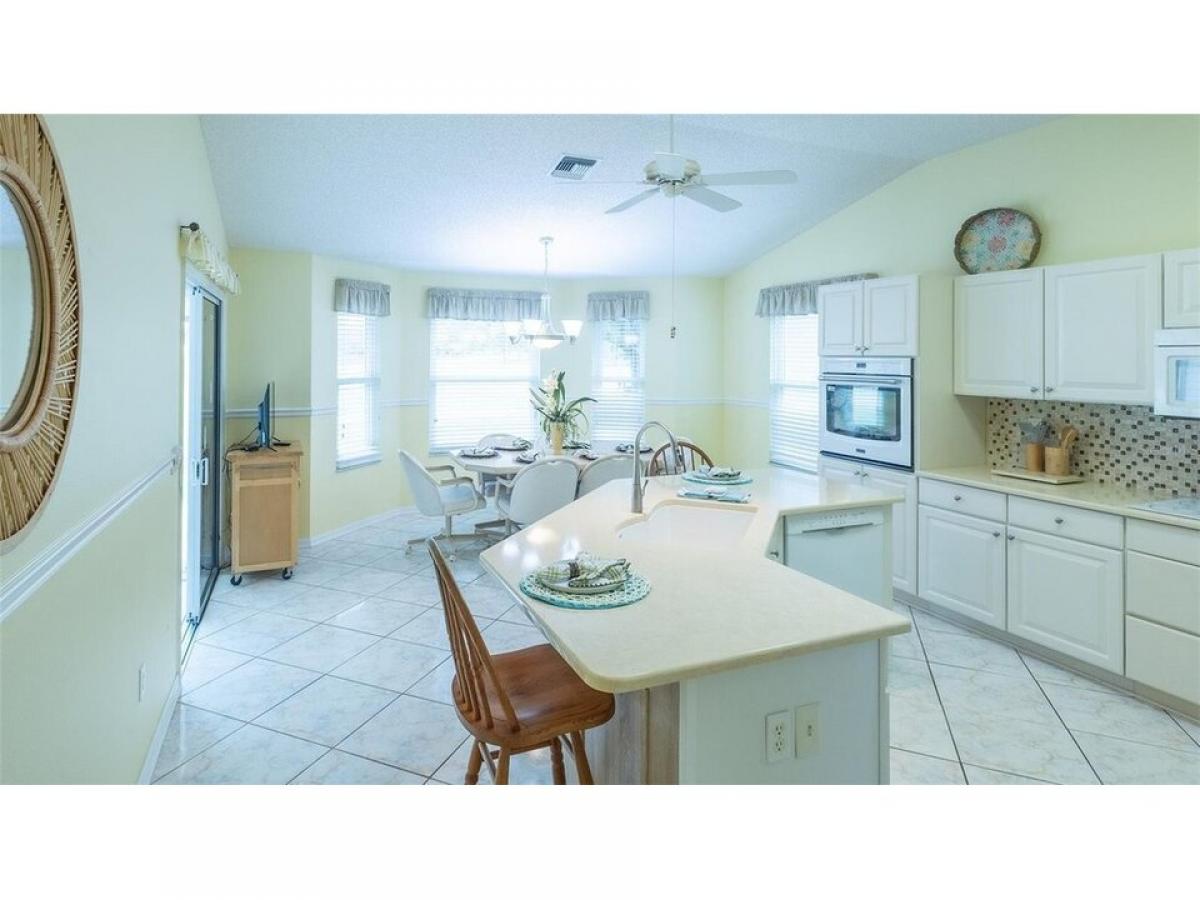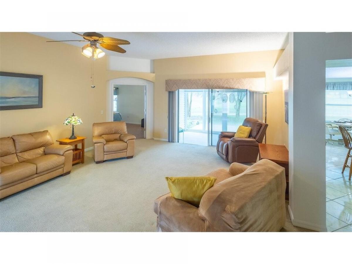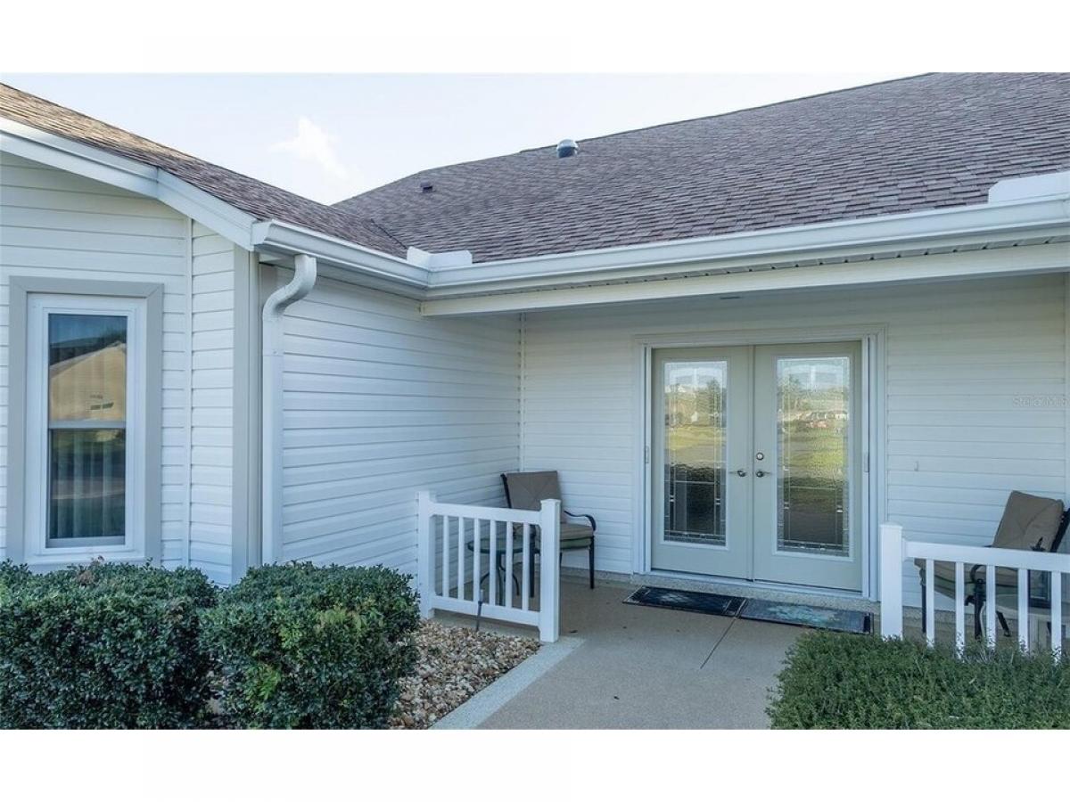 PRICED TO SELL !! Welcome home to your spacious retreat in the heart of The Villages! Nestled in the sought-after Village of Santo Domingo, this charming 3 bed, 2 bath (3rd bed - no closet) home offers over 1800 square feet of comfortable living space. Enjoy the convenience of being just minutes away from both Spanish Springs and Lake-Sumter Landing Town Centers and all the recreation, dining, and shopping nearby. As you approach, you#039;ll be greeted by the inviting curb appeal featuring stacked stone beds and low-maintenance landscaping. Step inside through the double door, leaded glass front entry and admire the open front porch, perfect for relaxing evenings. This home boasts a prime location overlooking the 5th tee box of the El Diablo golf course, offering serene views including a peek at the tranquil pond from the rear lanai. The enclosed rear lanai provides a peaceful retreat year-round. The spacious kitchen is a chef#039;s delight with plenty of white cabinets, pantry storage, Quartz countertops, and newer appliances. Updates include new insulated windows (2014) and a ROOF replacement in 2019, ensuring both comfort and efficiency. Additional features include a driveway with an epoxy painted finish, newer HVAC and HWH systems, and a 2-space garage with a screened front for enjoying fresh air. For added convenience and leisure, this home INCLUDES a 2011 Yamaha GAS GOLF CART and comes partially furnished, making it move-in ready. Don#039;t miss out on this exceptional opportunity to own a meticulously maintained home with NO BOND in a prime location within The Villages. Schedule your showing today and envision the lifestyle that awaits you!