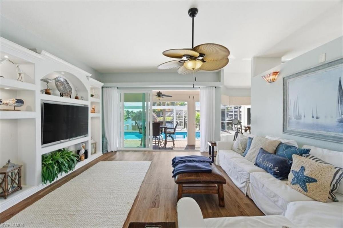 Waterfront with Gulf access! Discover the best of Southwest Florida living in a prime location close to vibrant dining, boutique shopping, and everyday conveniences. This waterfront residence is designed for those who value both relaxation and recreation, offering an inviting blend of indoor comfort and exceptional outdoor amenities. Step outside and experience your own private oasis. Spend sunny afternoons lounging by the beautifully refinished pool, gather with friends beneath the tiki-hut for game day, or enjoy an evening meal on the spacious screened lanai as soft breezes roll in from the canal. With a private dock and boat lift just steps from your door, spontaneous boat rides, fishing excursions, or sunset cruises are always within reach. Inside, the home welcomes you with warm, open living spaces ideal for everyday living and entertaining. The main living room provides a comfortable gathering area, complemented by a dedicated dining room and a bright breakfast nook overlooking the pool. The updated kitchen stands out with premium LG appliances, rich custom cabinetry, and granite countertops, perfect for the home chef who appreciates quality and functionality. The primary suite is a peaceful retreat featuring serene canal views, an updated spa-inspired bathroom, a generous walk-in closet, and access to a private screened sitting area. Guests will enjoy two well-appointed bedrooms, one with sliding doors opening directly to the pool deck, and the other offering the convenience of ajoining bath that doubles as a guest bathroom. The oversized laundry room offers exceptional storage options and can also serve as a pantry or utility space. Recent improvements include plantation shutters, fresh exterior paint, updated fencing, an HVAC system installed in 2022, impact windows in select areas, hurricane shutters, a newer pool heater, and durable luxury vinyl plank flooring. The roof, replaced in 2016, adds additional peace of mind. Move-in ready and thoughtfully maintained, this home invites you to embrace a true Florida lifestyle—easygoing, vibrant, and full of possibilities.