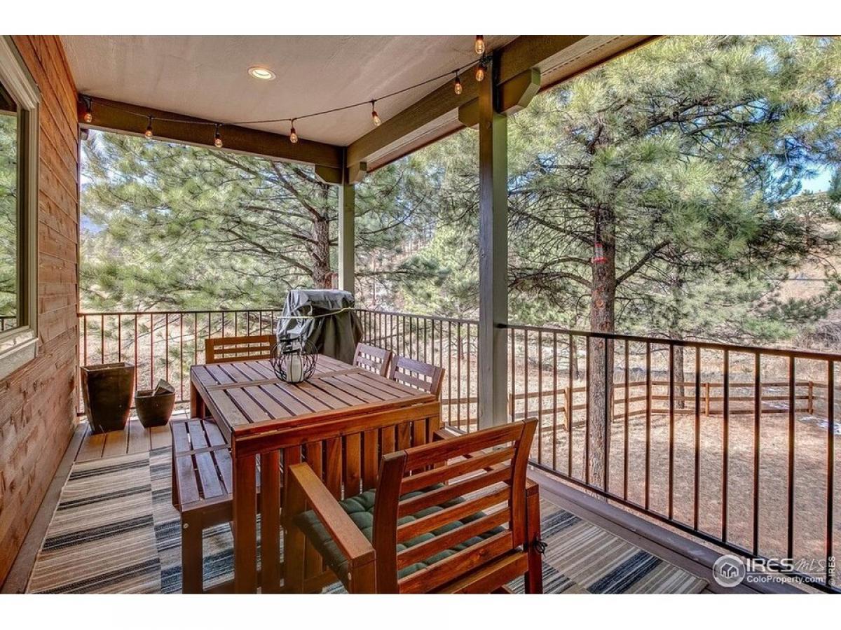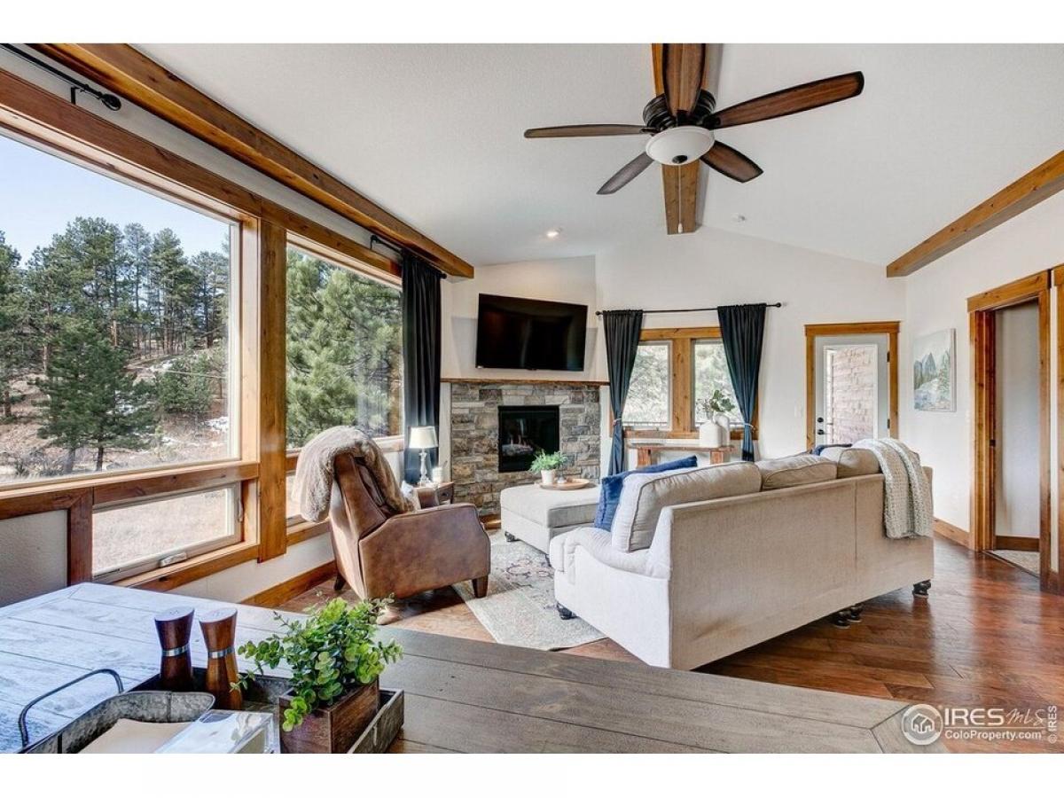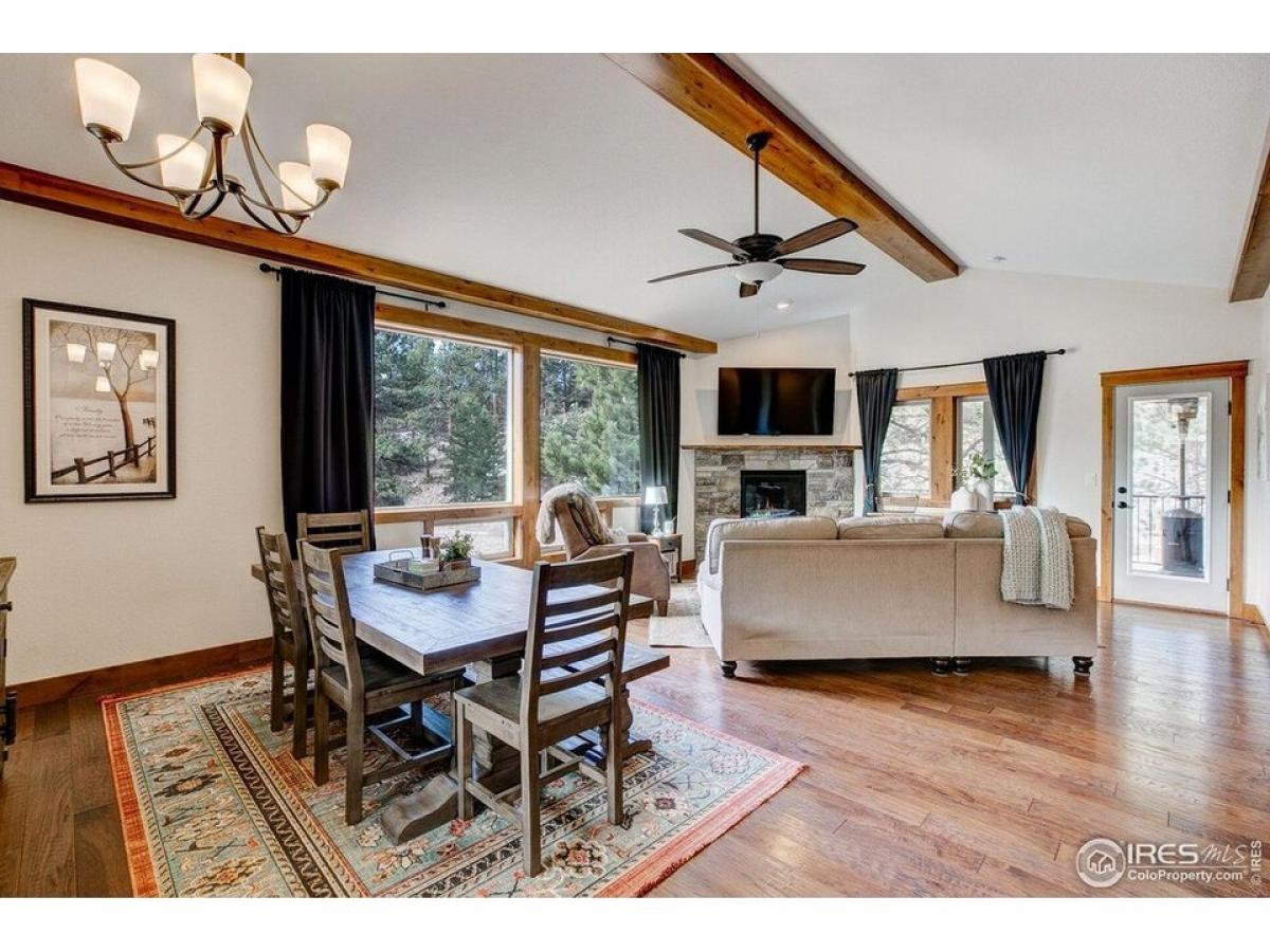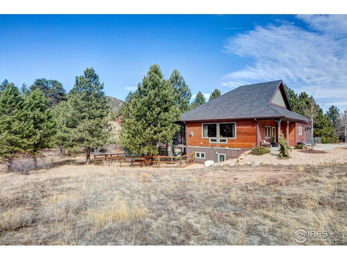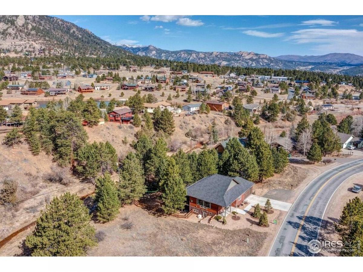 Stunning mountain home custom-built in 2019 offers privacy, breathtaking views, and comfort. Situated on a half-acre bordering a private conservation easement, it showcases panoramic vistas of the surrounding mountains. Designed for easy main-level living, the open floor plan features vaulted ceilings, hardwood floors, and a cozy gas fireplace. The gourmet kitchen includes a spacious center island, granite countertops, custom wood cabinetry, and tile backsplash. The open design connects seamlessly to the dining room, making it an ideal space for entertaining. Enjoy meals while soaking in the stunning views through the expansive windows. Step onto the covered composite deck to enjoy the sounds of Fish Creek below and watch the abundant wildlife pass by. Xeriscaped front and back yard can be enjoyed from the covered front patio with Twin Sisters views, a perfect spot for soaking in the morning sun. Primary suite is a luxurious retreat with three closets, including a walk-in, en-suite bathroom with granite counters, large walk-in shower with glass doors, elegant tile work, and built-in bench seat. A half bath, spacious laundry room, and two-car garage complete the main level.The beautifully finished walk-out lower level features a large family room opening to a private patio, ideal for a hot tub. Four additional bedrooms, versatile spaces for an office, gym, or studio, and two gorgeously designed bathrooms. A fenced yard provides a safe space for play or pets, where you can listen to the peaceful sounds of Fish Creek as it borders the west side of the property. Just minutes from Rocky Mountain National Park and the charming town of Estes, you#039;ll have easy access to hiking, biking, trail-running, wildlife viewing, backcountry skiing, snowshoeing, fly fishing and all the other outdoor adventures you love. Whether you#039;re looking for a full-time residence or a weekend mountain retreat, this home offers the perfect combination of luxury, privacy, and location.