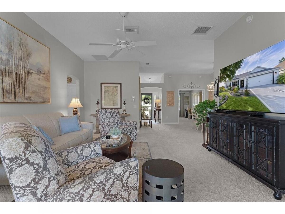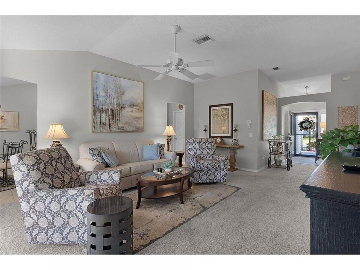 Welcome to this beautiful Whispering Pine Model in The Village of Tall Trees. Nestled in the heart of The Village of Tall Trees, this stunning 3-bedroom, 2-bath home with a 2-car garage has it all! Recent upgrades include a new roof (2023), classic plantation shutters (2023), fresh landscaping with elegant outdoor lighting (2023), and a newly screened lanai (2023). Inside, you#039;ll love the neutral interior paint (2023), black stainless steel appliances (2023), and updated ceiling fans and light fixtures (2023 amp; 2024). The exterior shines with freshly painted shutters and trim (2023), while a charming white pergola over the BBQ area (2024) adds the perfect finishing touch. Essential systems are updated too, with an HVAC (2020) and water heater (2021). Bond balance is $7,587.55. If you are not a carpet fan, you can change it out. $7,000 flooring allowance at closing. Located just off 466 and minutes from 441, this home offers unbeatable convenience. With practically everything new and move-in ready, all thatrsquo;s missing is you!
