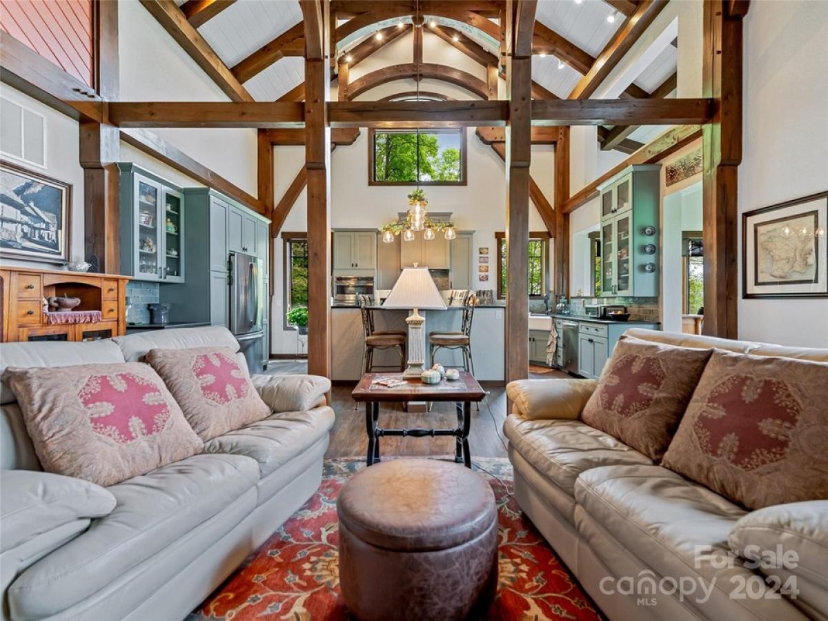 Discover your dream retreat in this breathtaking timber frame home on 19+/- acres of pristine serenity and incredible views. Surrounded on three sides by the majestic Nantahala National Forest, this property offers unrivaled privacy and natural beauty. The open floor plan seamlessly connects the spacious main level to the great outdoors, showcasing panoramic views that captivate you from every room. The exposed beams and high ceilings exude rustic charm. The gourmet kitchen features top-of-the-line appliances and a large island for eating and prep. The primary suite is spacious and offers ample closet space and amazing views. A guest bedroom is also on the main. The upper level boasts a versatile office and a cozy family room, ideal for work and leisure. The lower level features a guest bedroom suite, an exercise room, and abundant storage space. Hike through your wooded acreage, savor morning coffee on the deck, or soak in the tranquility. Potential Development Opportunities.