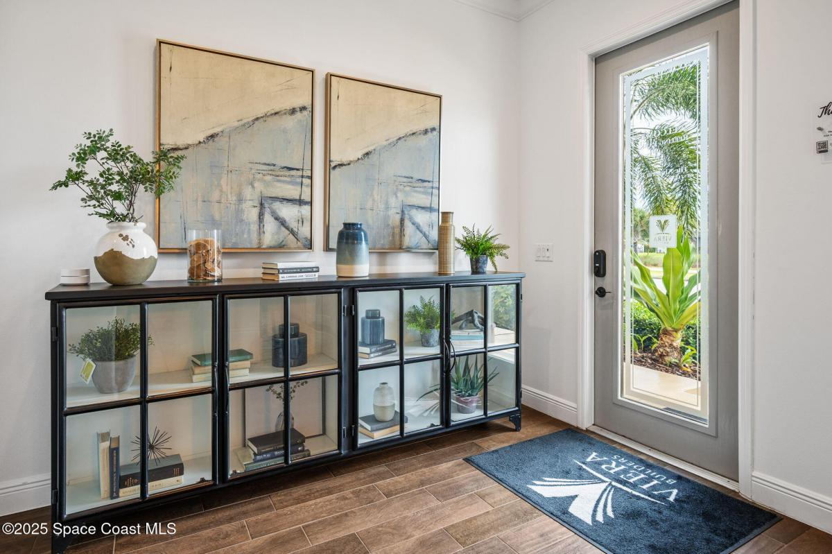ACCEPTING BACKUP OFFERS * FORMER MODEL HOME & HAS NEVER BEEN LIVED IN * LOADED With UPGRADES * This stunning Spanish Colonial-inspired home evokes a sense of timeless romantic charm. The Kitchen is stylishly appointed w/Maple Glazed cabinets, quartz countertops, built in refrigerator, gas range, farmhouse sink, bronze hardware, walk-in pantry with formal dining room adjacent. Down the hall is the wine nook with wine chiller - so chic! The Primary Suite is conveniently located on the first floor, featuring picturesque windows that invite the beauty of the outdoors in. The luxurious ensuite includes double vanities, a soaking tub, a walk-in shower, and a spacious walk-in closet. Beside three other bedrooms, the home features a bonus room w/4th bath, media center, Laundry room with tub, oversized 2 car garage with golf cart option, and a spacious, fenced in paver courtyard with lanai and pergola creating a private tropical oasis. HOA covers lawn care, irrigation and exterior painting!