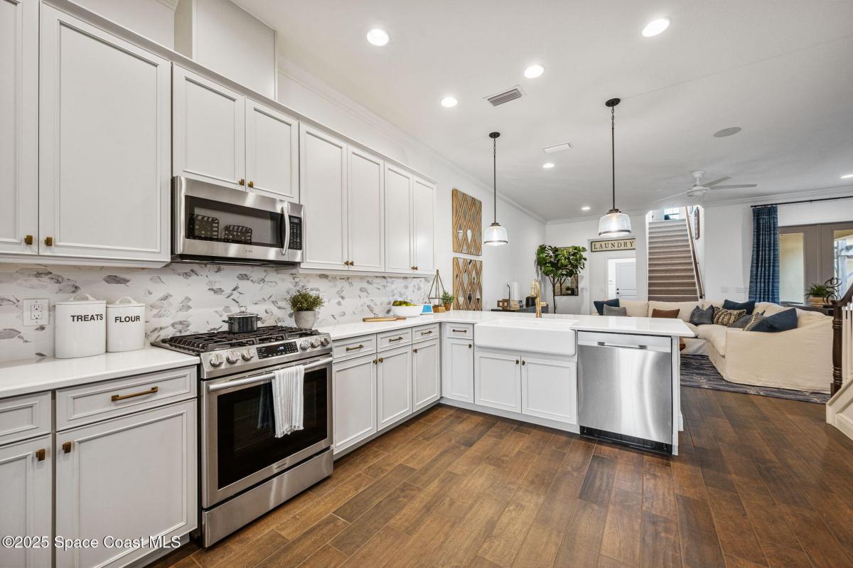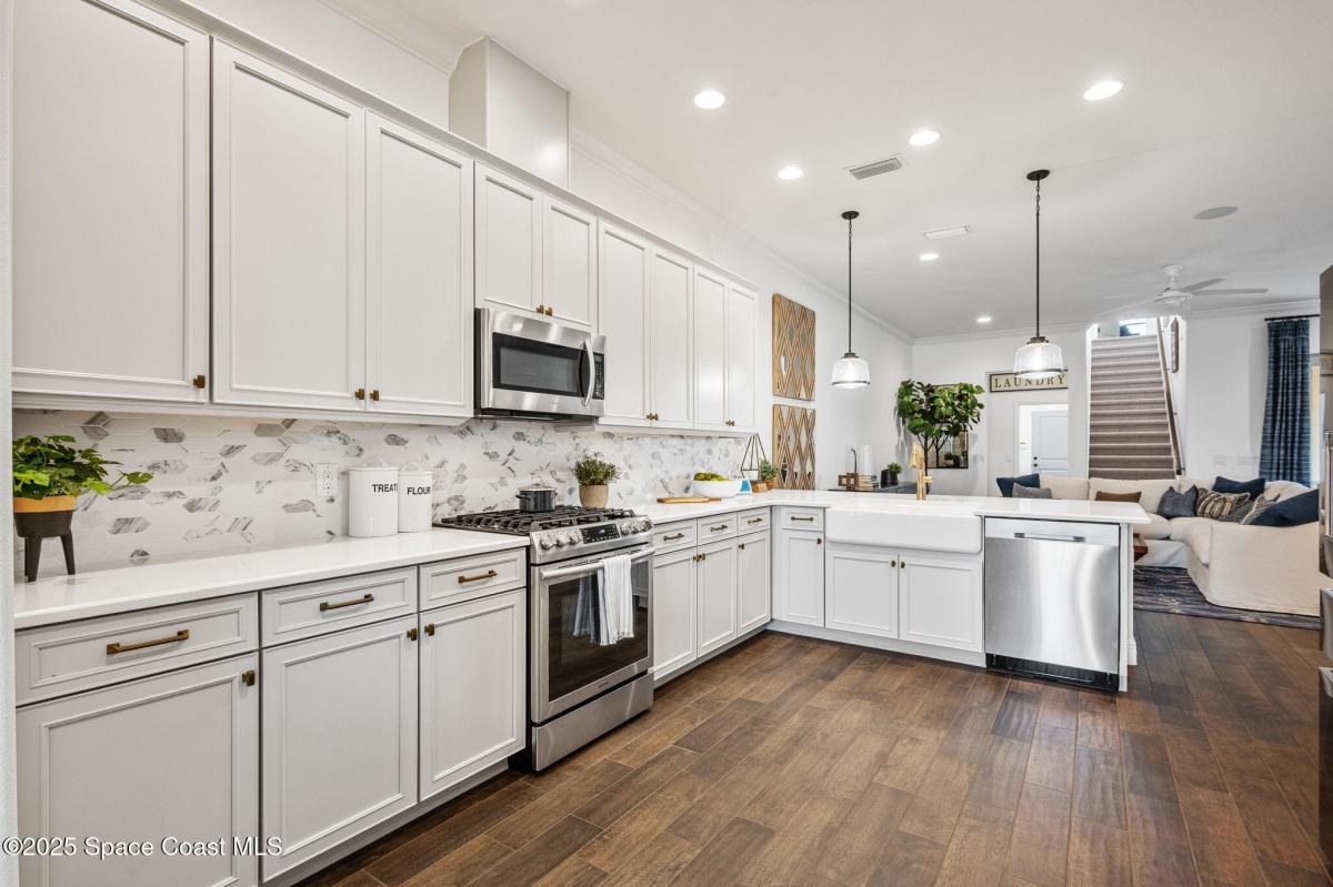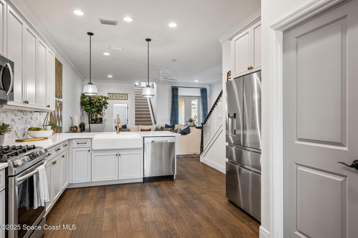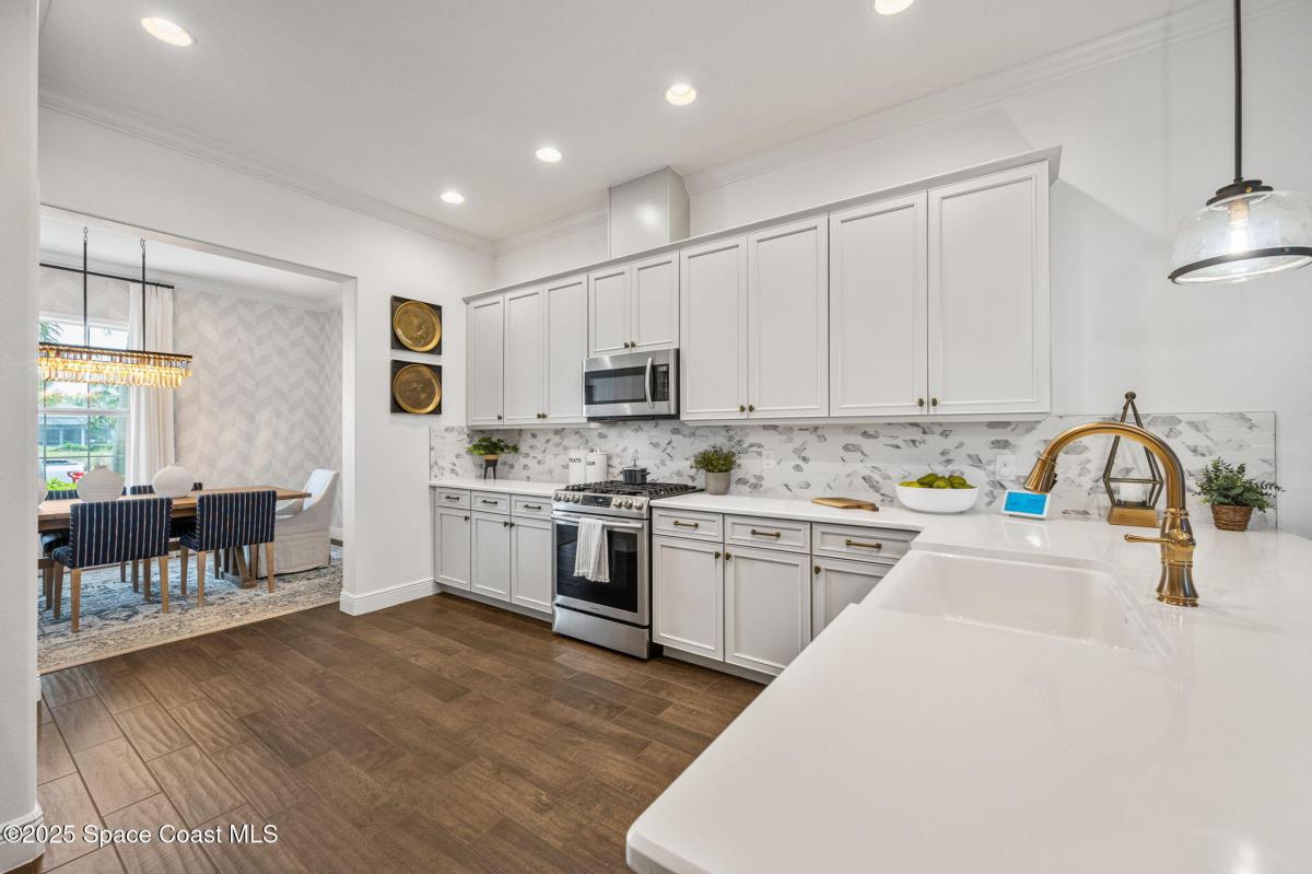 ACCEPTING BACKUP OFFERS * FORMER MODEL HOME & HAS NEVER BEEN LIVED IN * LOADED With UPGRADES * This stunning Spanish Colonial-inspired home evokes a sense of timeless romantic charm. The Kitchen is stylishly appointed w/Maple Glazed cabinets, quartz countertops, built in refrigerator, gas range, farmhouse sink, bronze hardware, walk-in pantry with formal dining room adjacent. Down the hall is the wine nook with wine chiller - so chic! The Primary Suite is conveniently located on the first floor, featuring picturesque windows that invite the beauty of the outdoors in. The luxurious ensuite includes double vanities, a soaking tub, a walk-in shower, and a spacious walk-in closet. Beside three other bedrooms, the home features a bonus room w/4th bath, media center, Laundry room with tub, oversized 2 car garage with golf cart option, and a spacious, fenced in paver courtyard with lanai and pergola creating a private tropical oasis. HOA covers lawn care, irrigation and exterior painting!