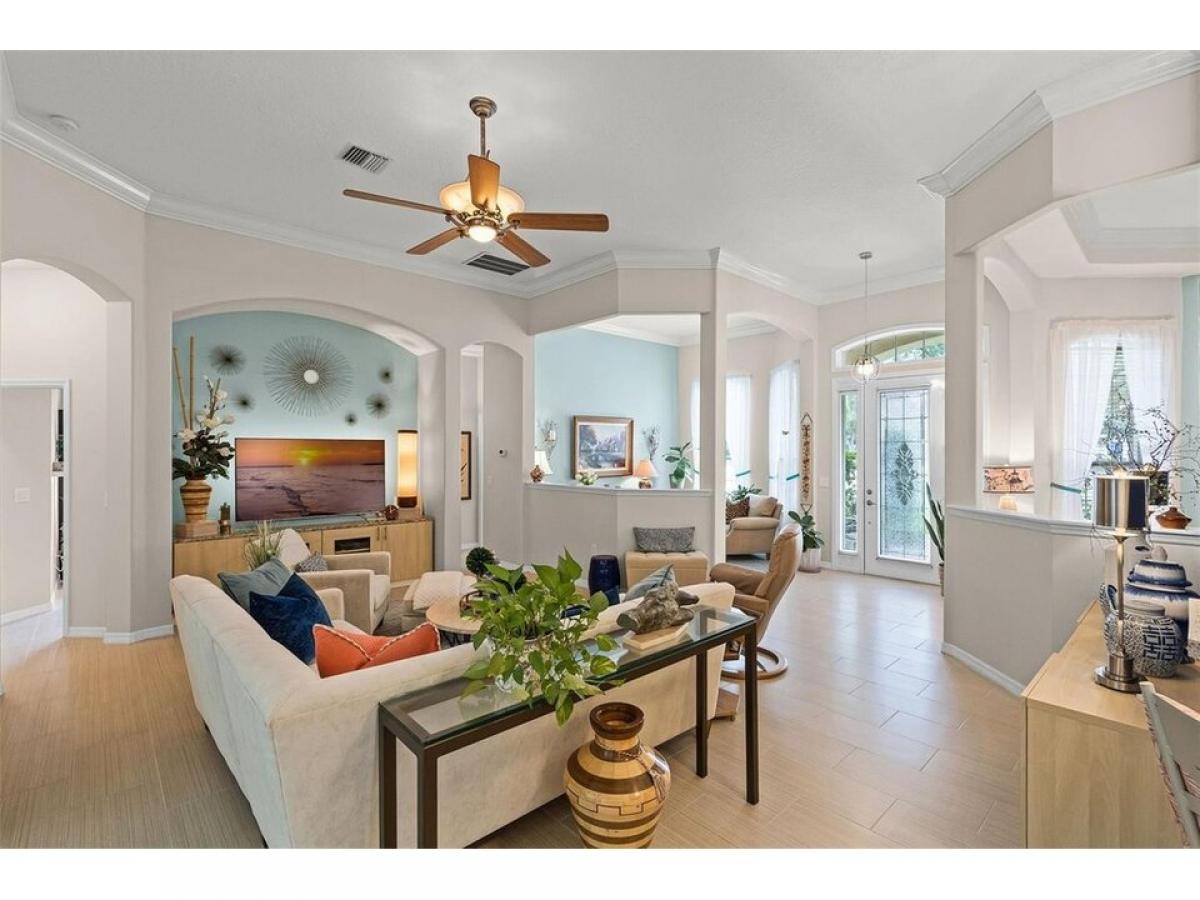 Lovingly maintained by the original owners, this immaculate home is nestled in a private, gated community of just 25 homesites. Offering 4 spacious bedrooms, an open-concept layout, vaulted ceilings, abundant natural light, and an oversized 3-Car Garage... you simply won#039;t find another home like this! From the moment you step inside, you#039;ll be impressed with details such as elegant crown molding, neutral ceramic tile floors, and soaring ceilings. The open and airy layout gives off a warm, welcoming vibe, while major upgrades like energy-efficient double-pane windows, recently replaced roof, AC, and water heater provides peace of mind for years to come! At the heart of it all is the kitchen, made for both busy mornings, crafting delicious meals and weekend hangouts. Equipped with a brand-new stove, top-quality appliances, and a layout thatrsquo;s super functional (but still cozy!), and it flows right into the living and dining areas, so yoursquo;ll always feel connected. The primary suite is the perfect retreat, with a spa-like bathroom and a roomy walk-in closet. The other bedrooms are just as versatile, including one with a custom built-in desk thatrsquo;s great for working from home, crafting, or setting up a quiet study spot. Step out back and yoursquo;ve got your own little slice of paradise on the extended lanai that backs to a private, wooded backyard filled with fragrant jasmine and blooming flowers. Whether itrsquo;s your morning coffee spot or your favorite place to unwind at sunset, yoursquo;ll love it out here. Therersquo;s even a shed for storage, a garden path lined with jasmine, and dusk-to-dawn exterior lights that add a little extra charm (and peace of mind). Key upgrades include: New roof (2017), HVAC system and water heater (2018), Double-pane windows w/upgraded hardware (2017), Stone-pavered drive amp; walkway, Glass front Entry Door, Termite Bond, and Updated Plumbing. Just minutes from parks, shopping, and top-rated schools amp; local amenities - this is a rare opportunity to own a move-in ready home in a secure, gated community.